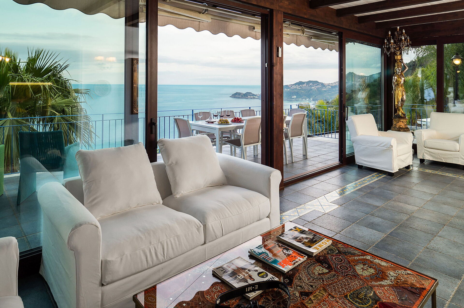 Buena Vista är ett exklusivt 2-våningsboende med 3 dubbelrum och ett annex med 1 dubbelrum. Utsikten över havet och Taorminabukten från poolen, trädgården och de stora terrasserna är fantastisk!
