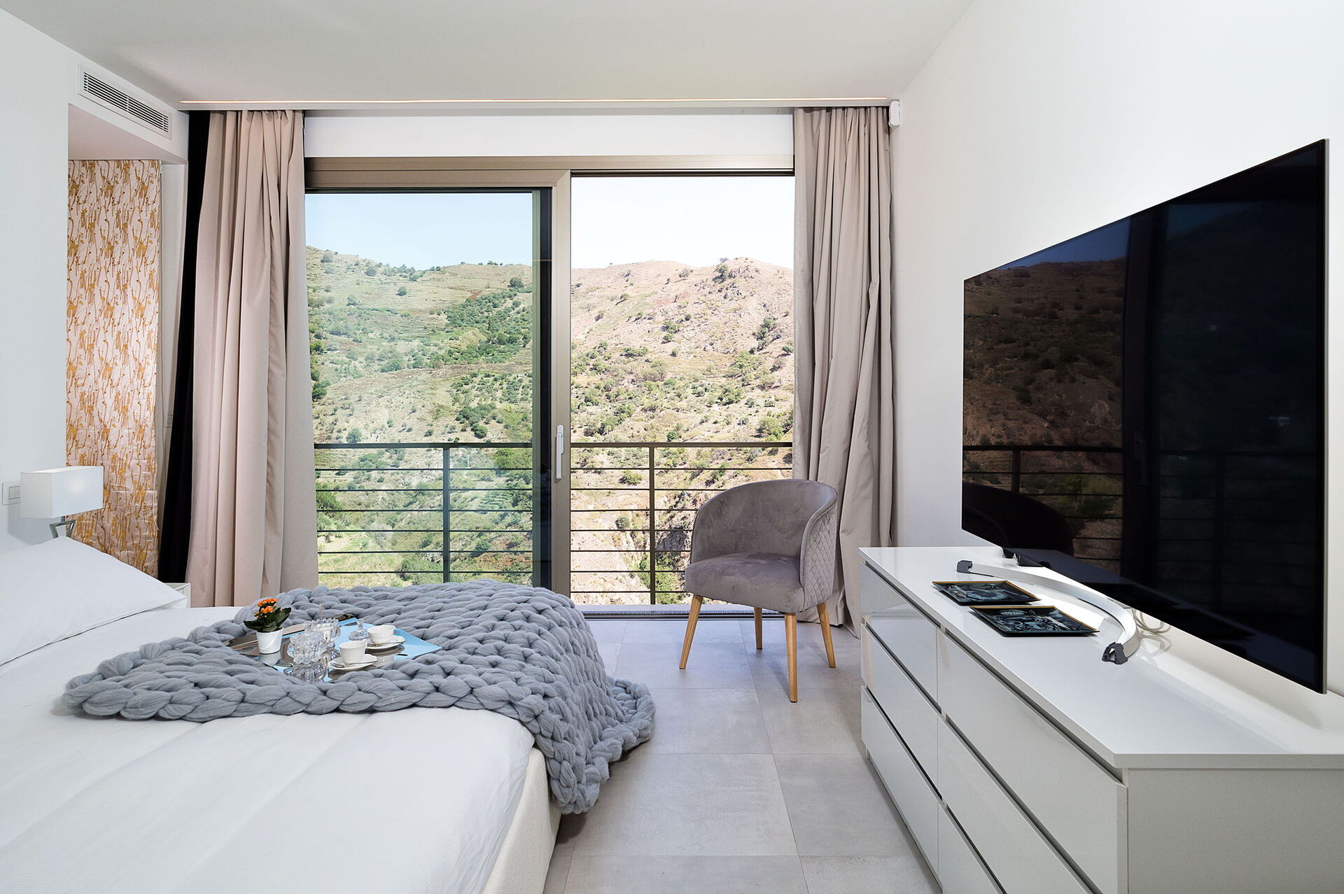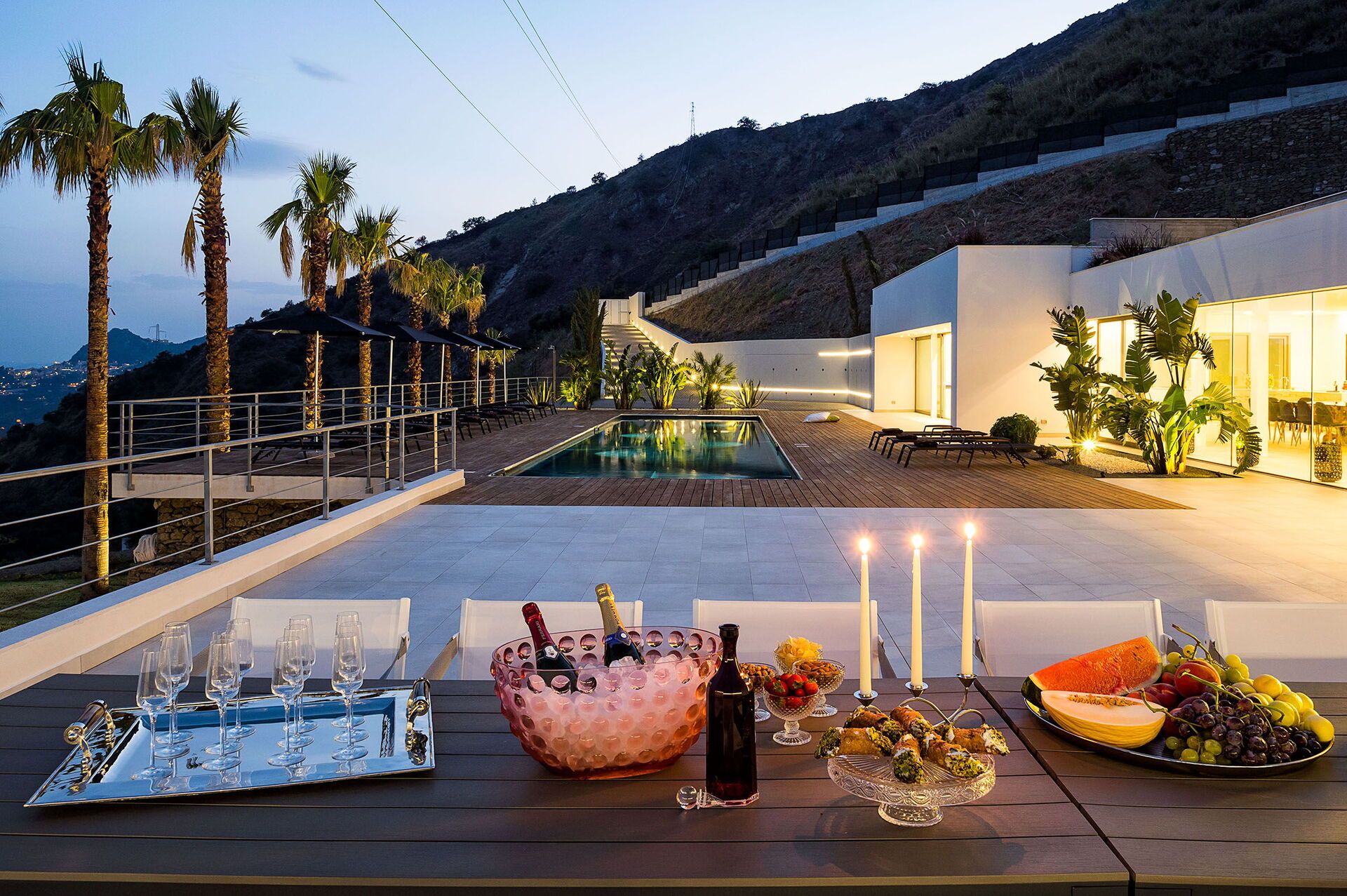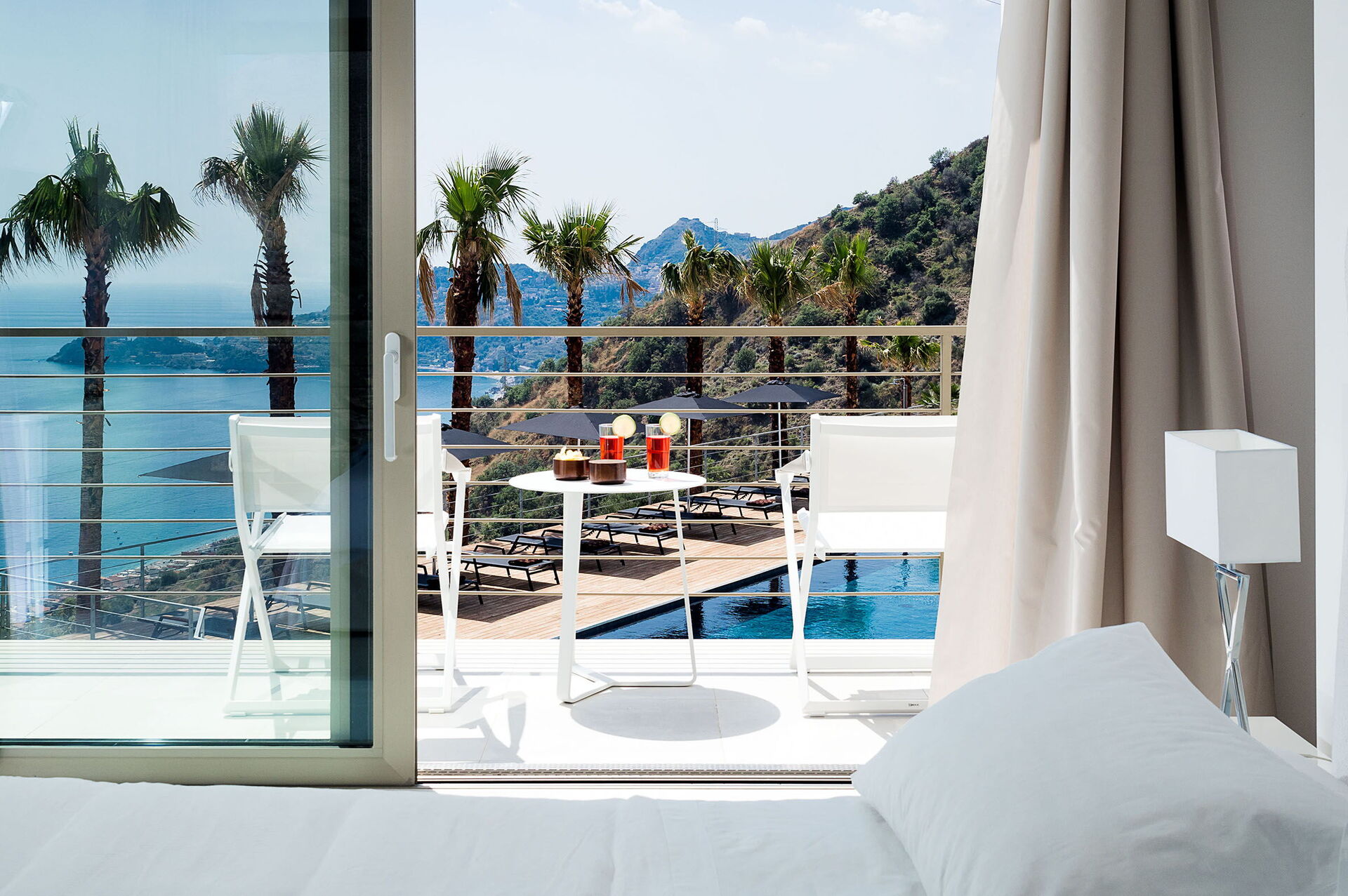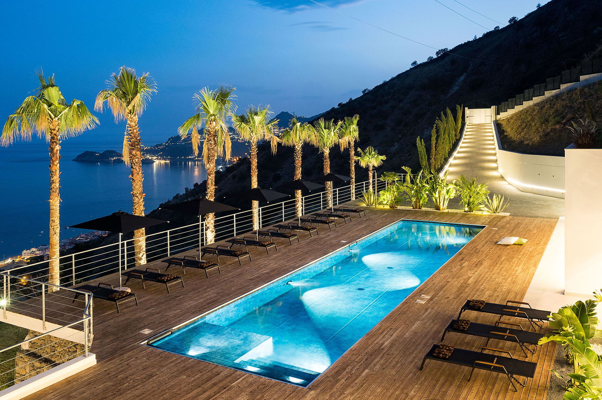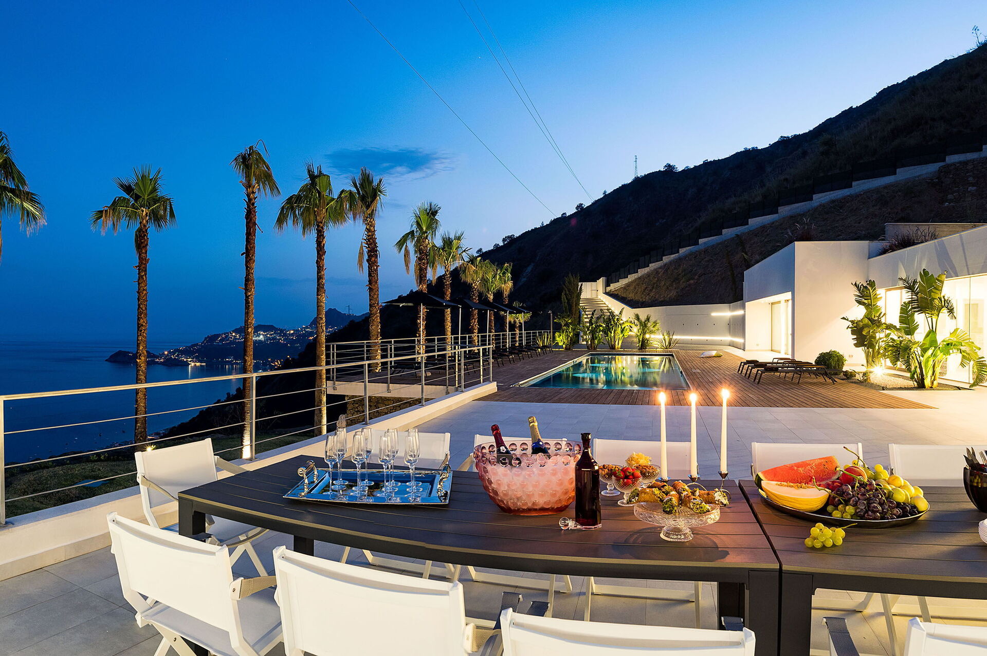 Semesterhuset är lyxigt och modernt med fantastisk utsikt över havet och Taorminabukten, en utsikt som också beundras från poolen med möblerat pooldäck och terrasserna.