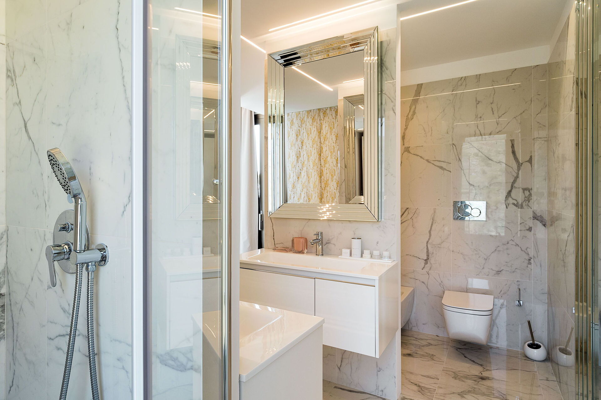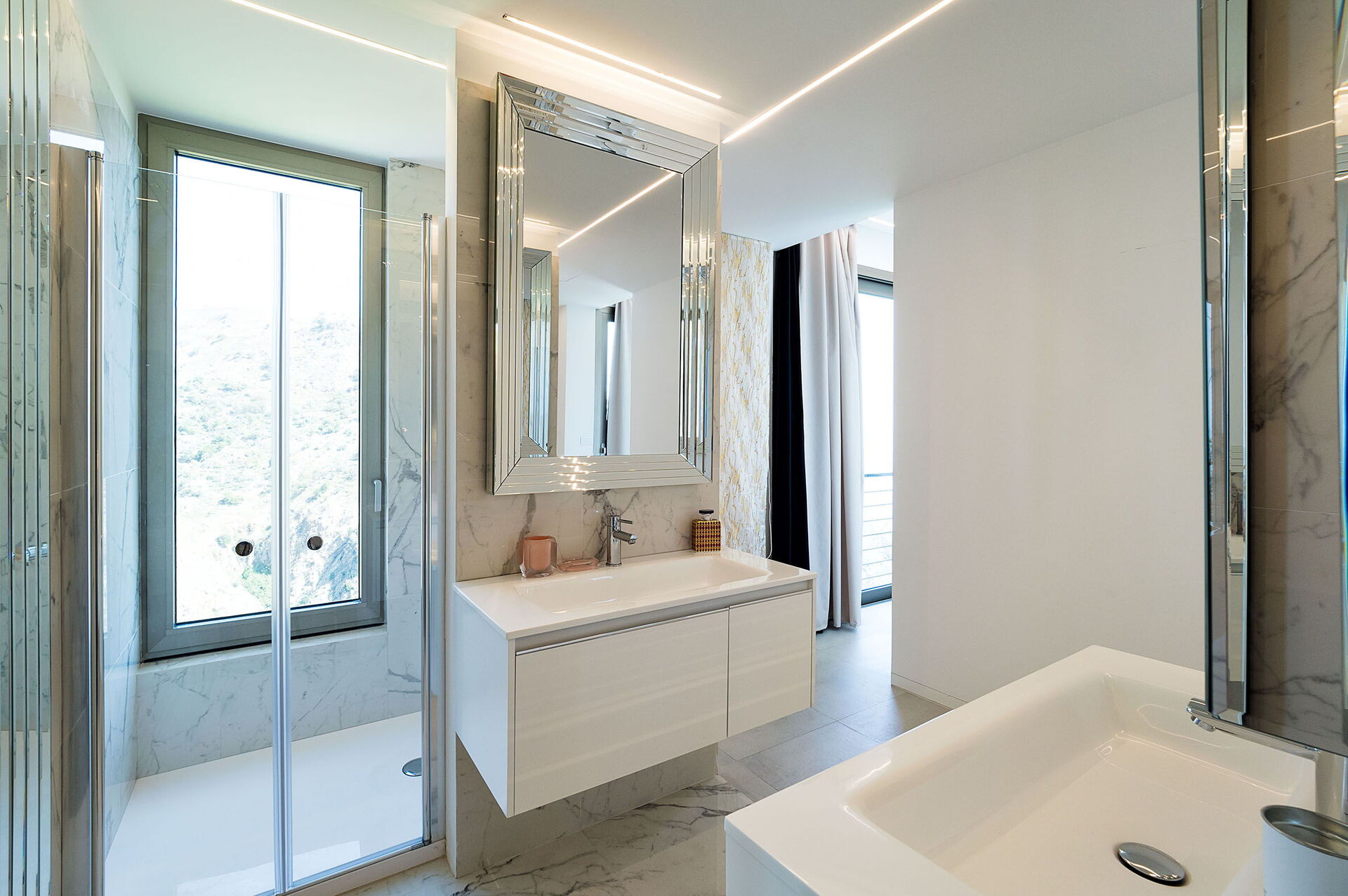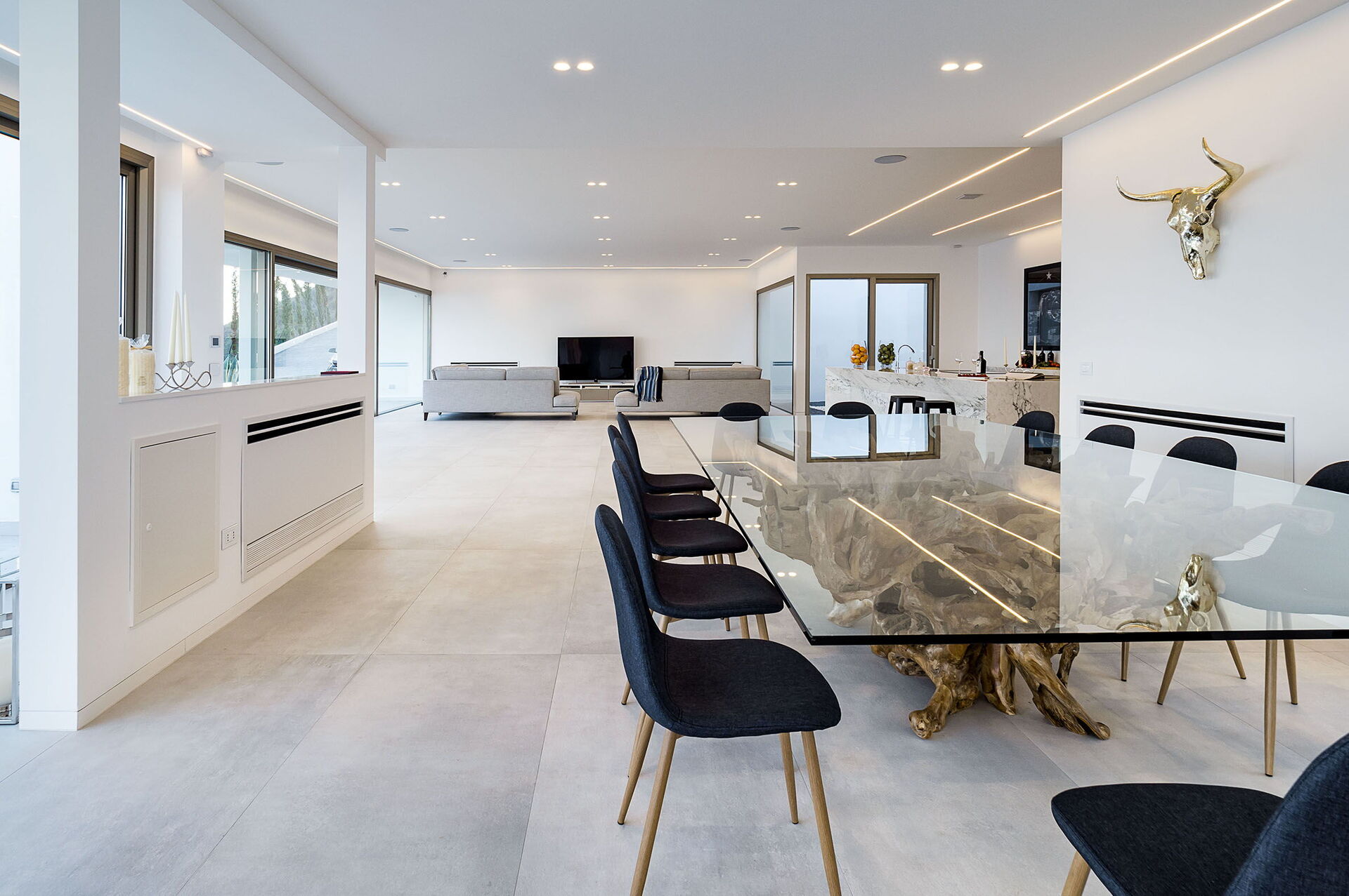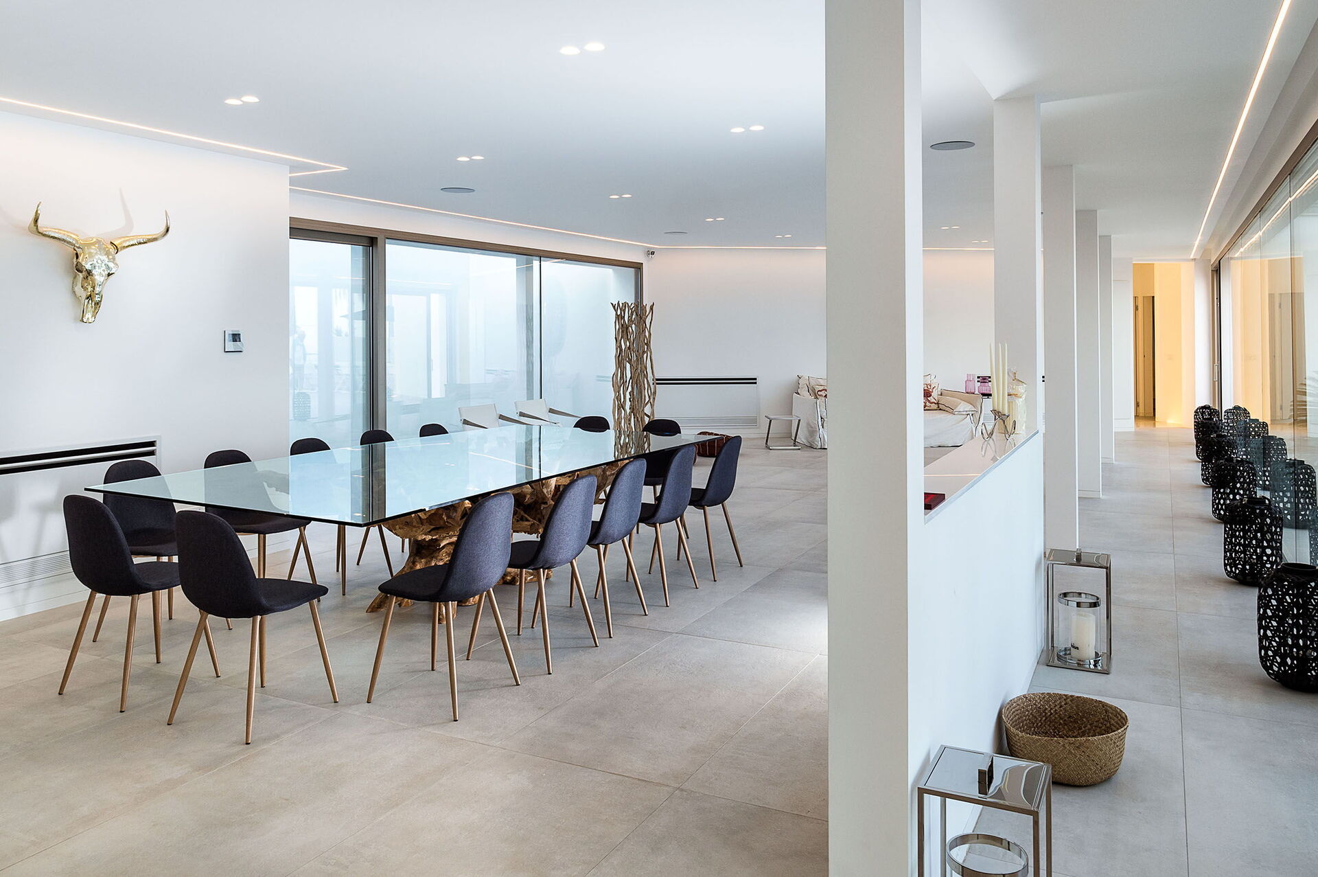 - Privat panoramapool med saltvattenreningssystem (18 x 4,5 m; djup: 1,40 m)