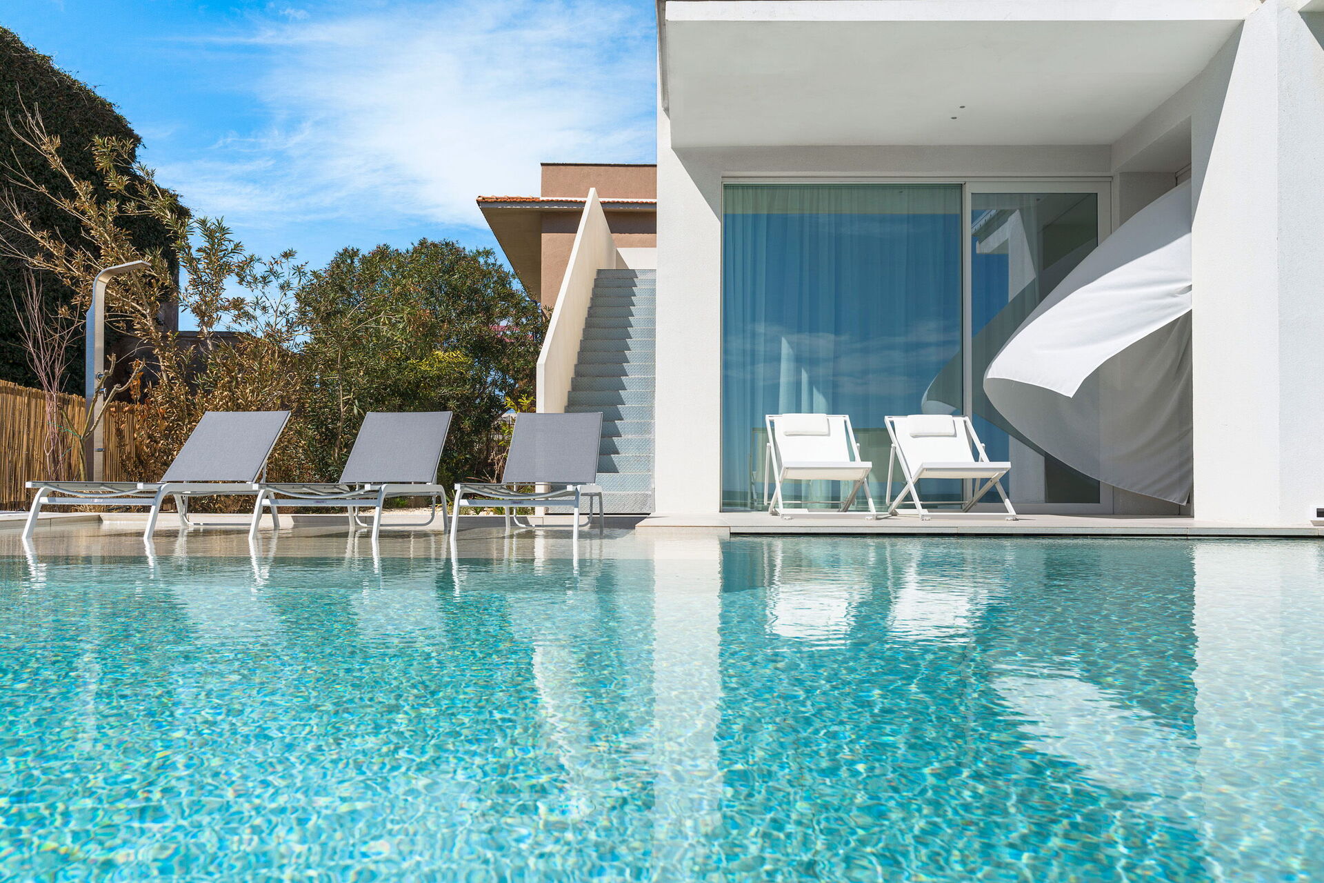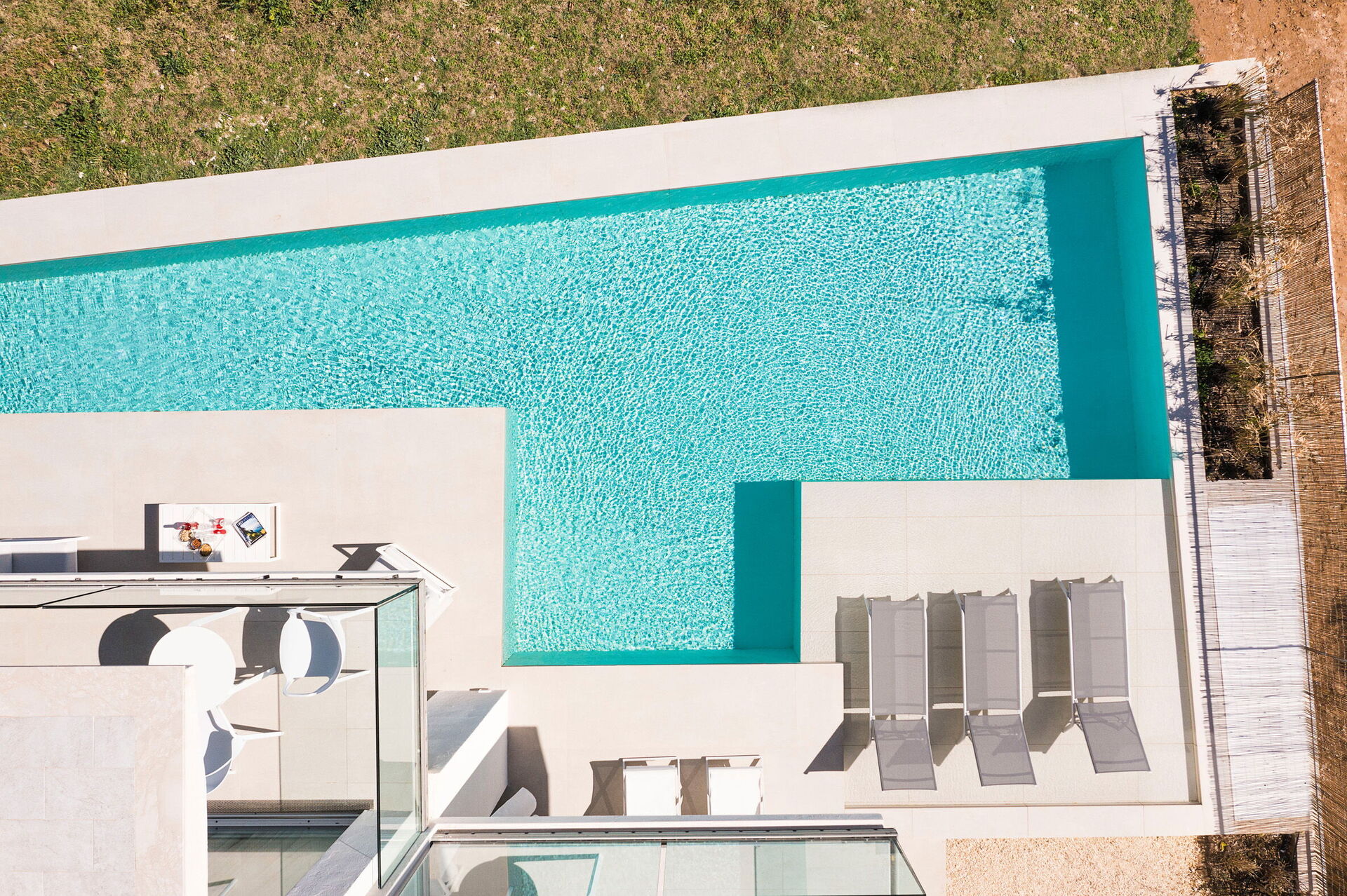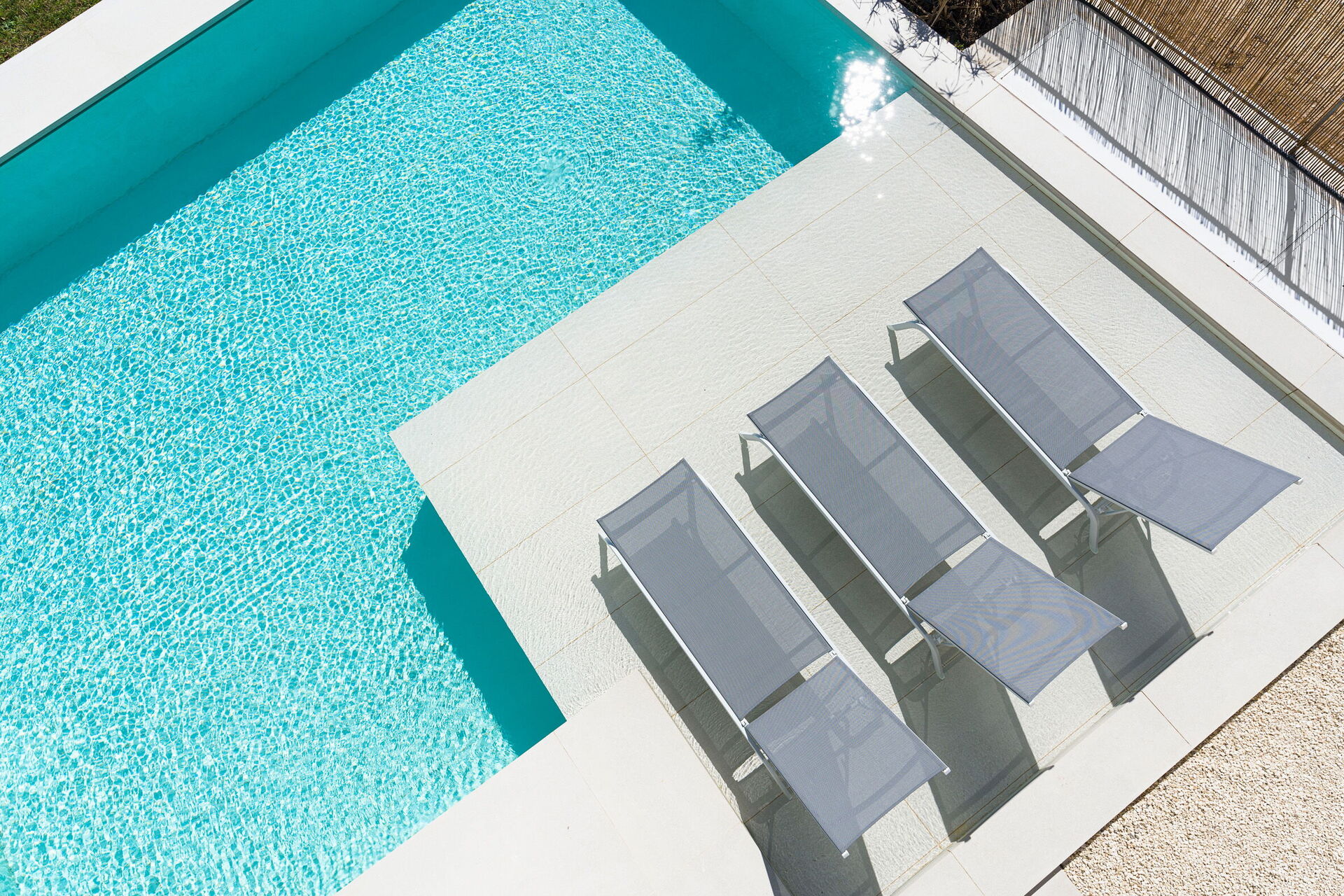 - Privat pool med hydromassageområde (17 x 3,5 m; djup: 1,20 m; uppvärmd 24-26°C; saltvattenreningssystem)