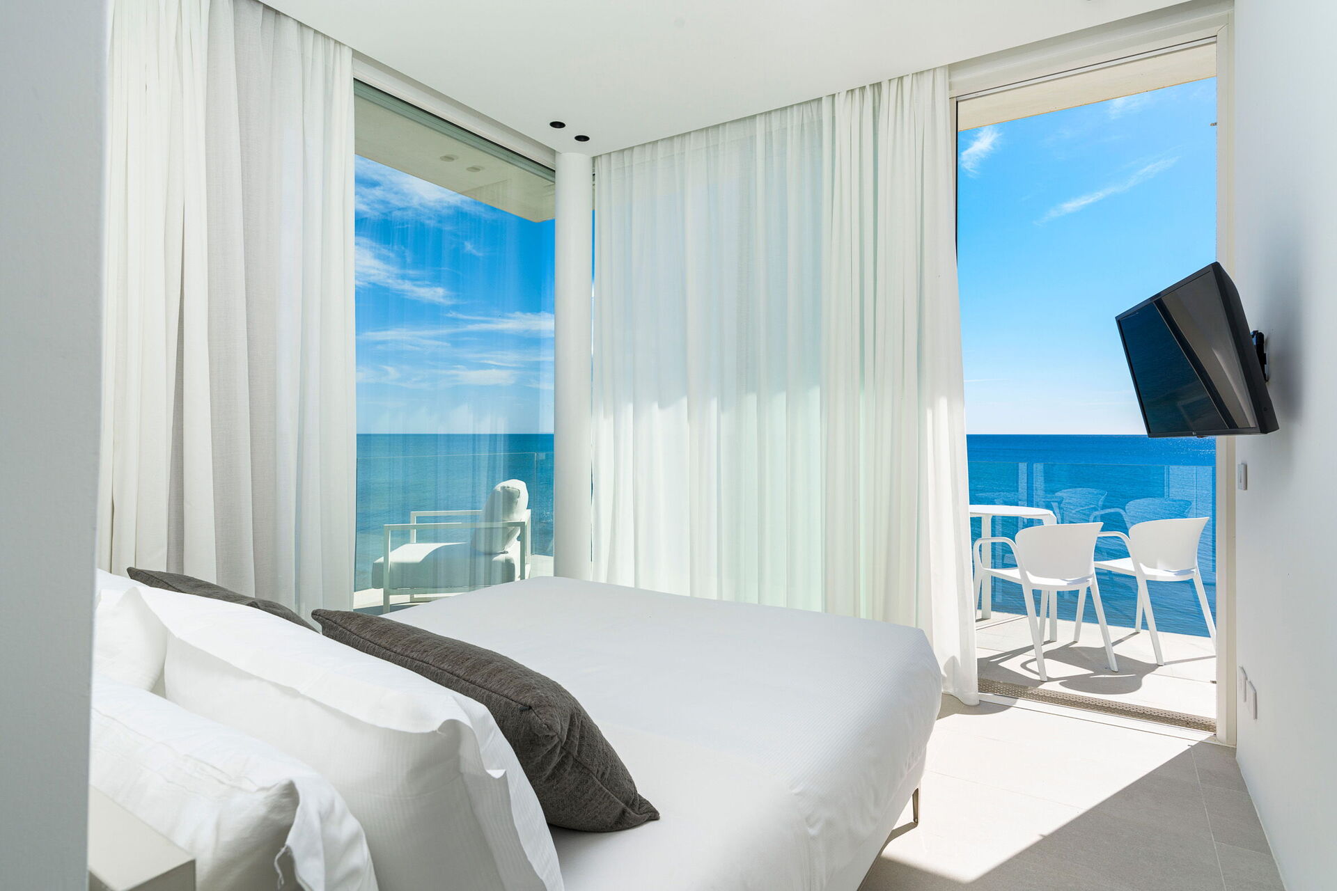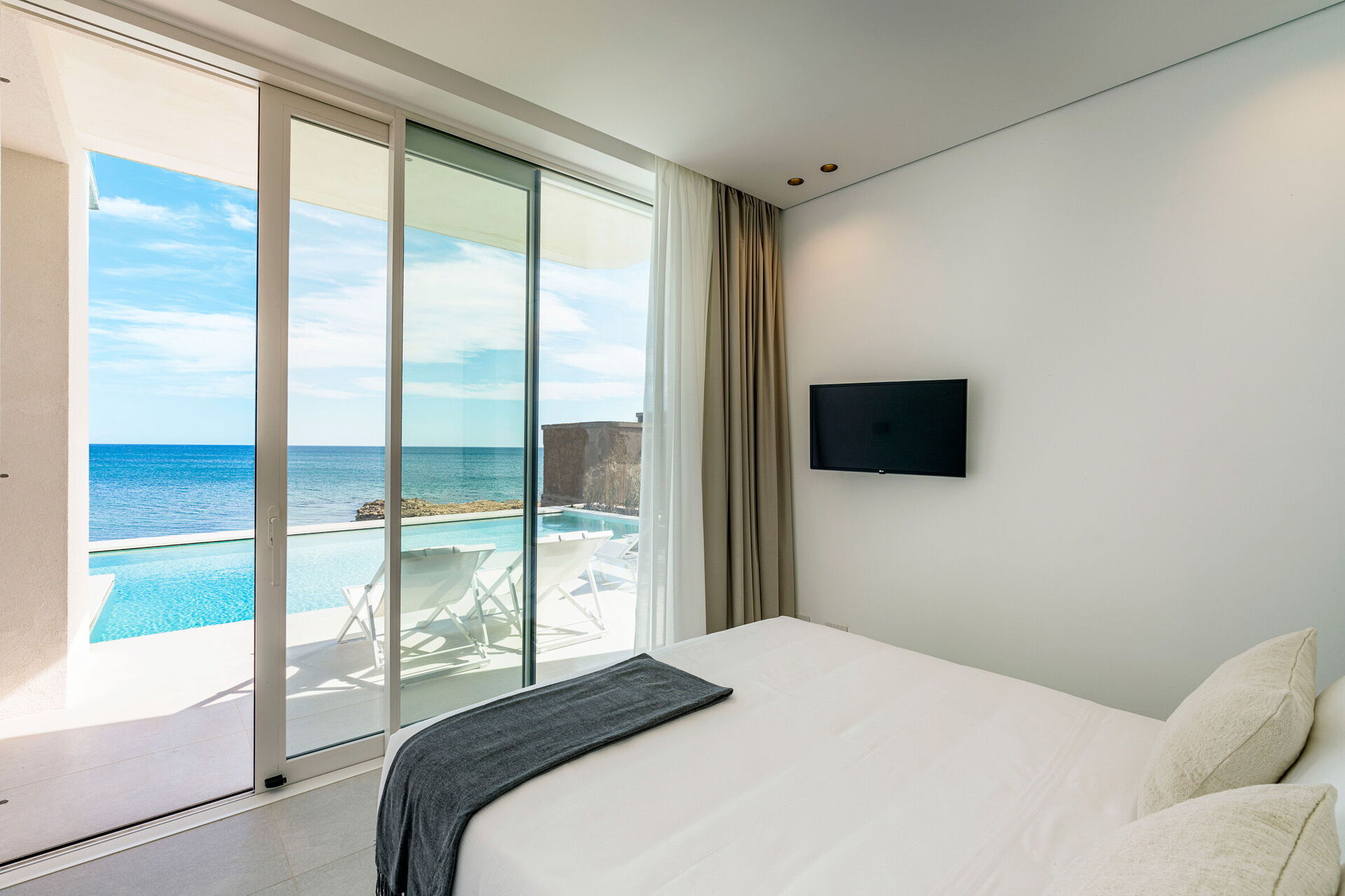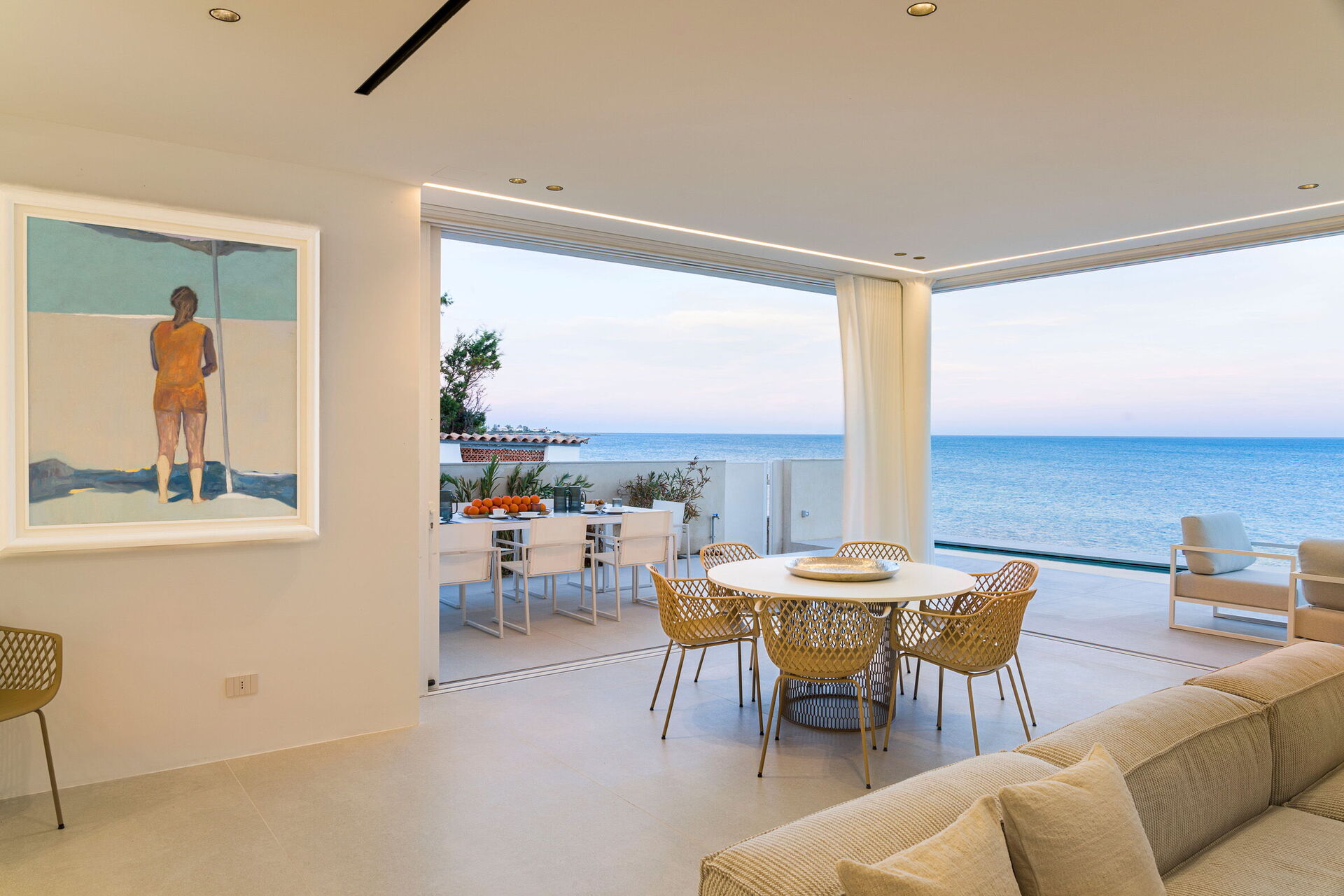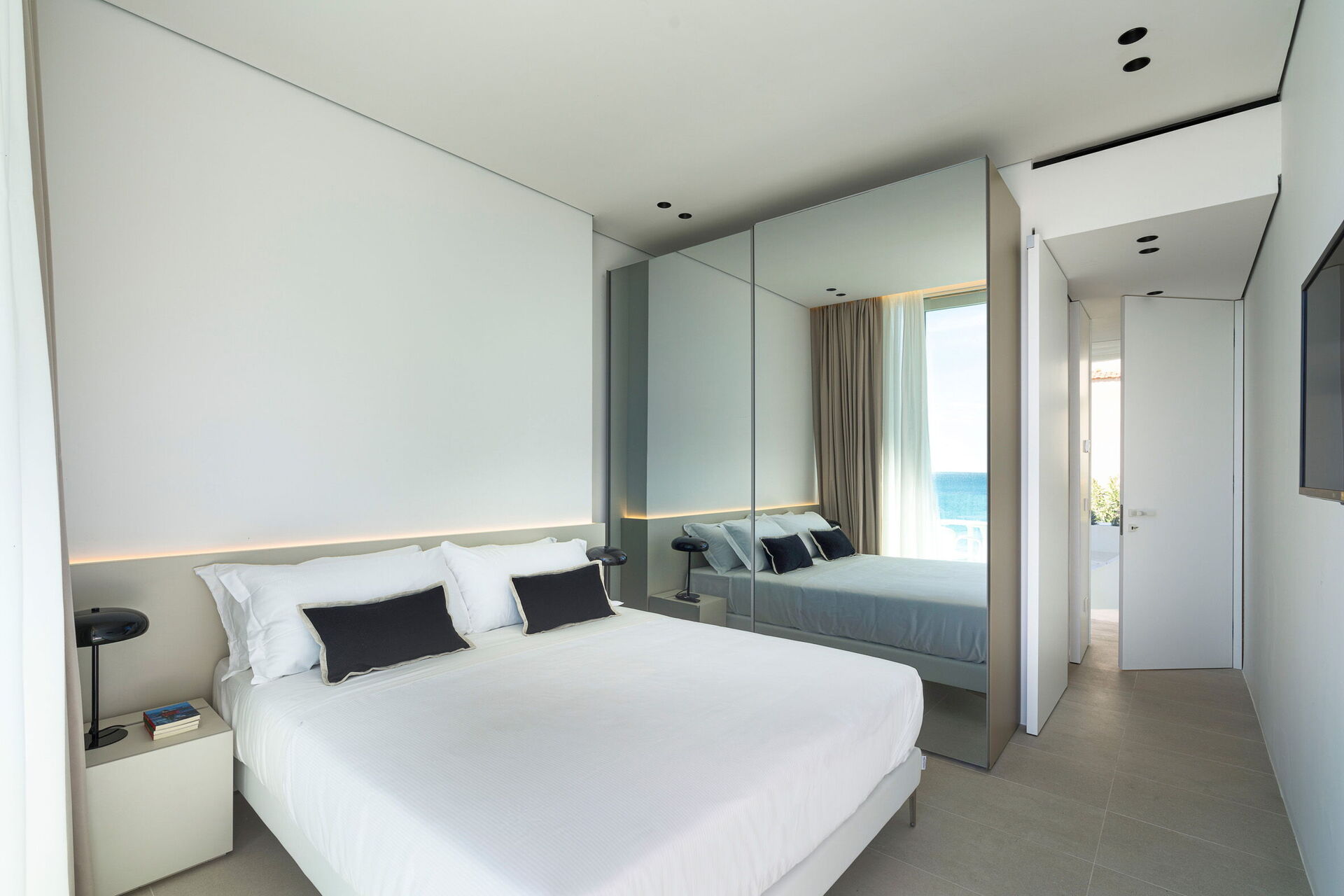 Huset har två våningar, 4 sovrum (alla fyra med eget badrum och en terrass mot havet), och kan bekvämt rymma upp till 8 personer. Interiören är välkomnande och ljus med bekväma moderna möbler och stora panoramafönster med utsikt över havet.