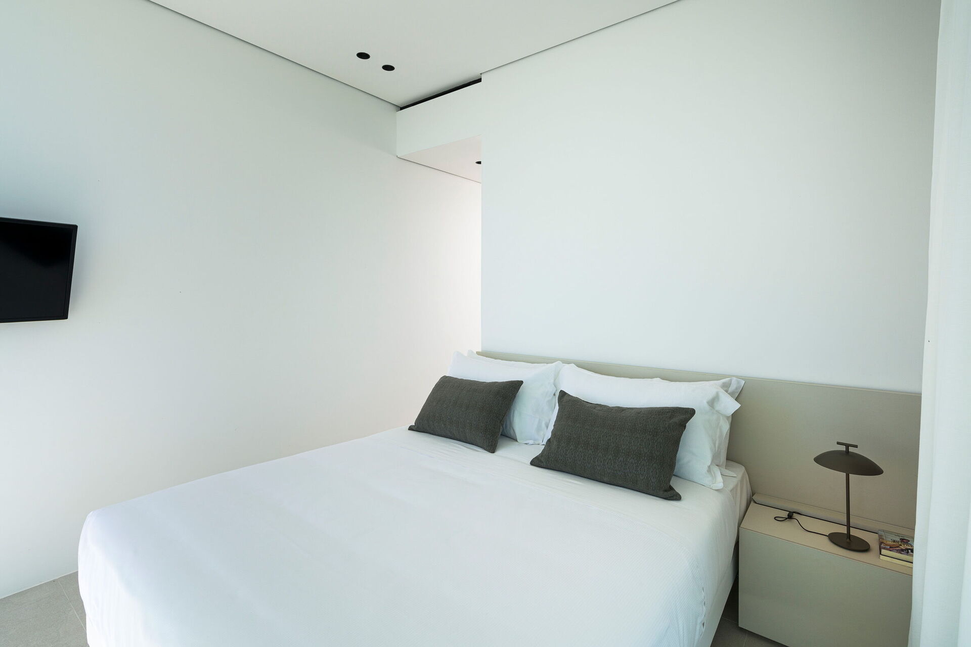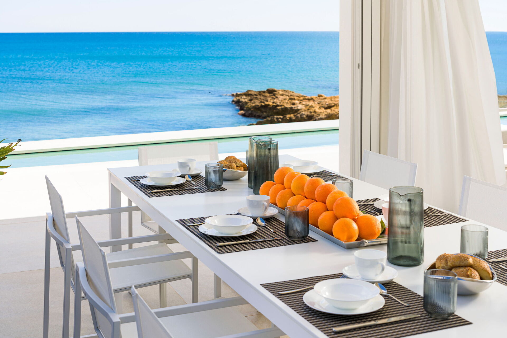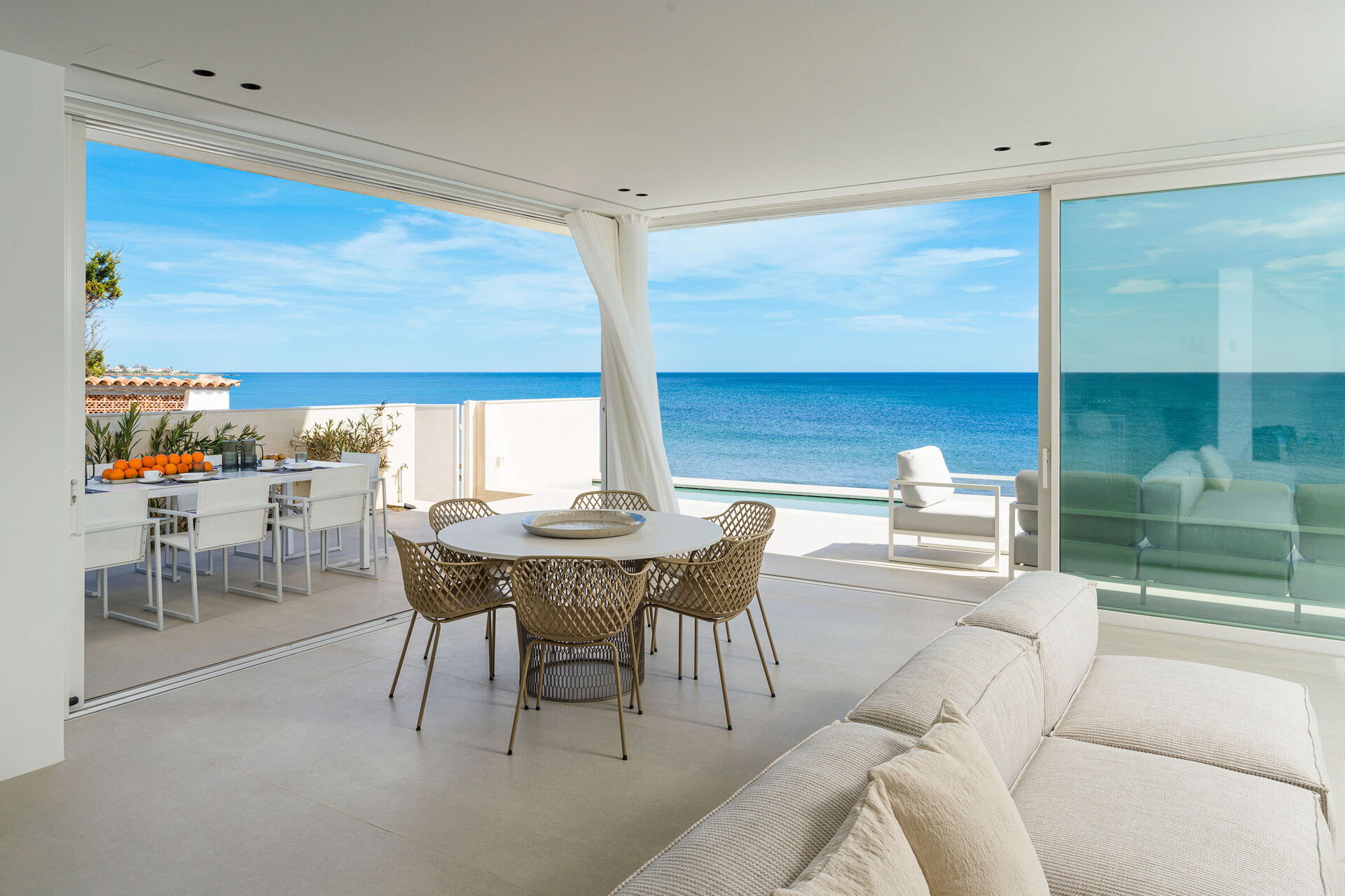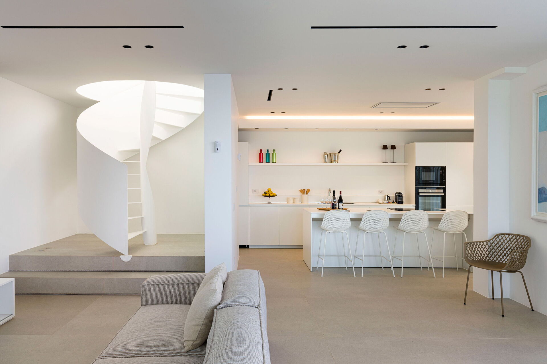Huset har två våningar, 4 sovrum (alla fyra med eget badrum och en terrass mot havet), och kan bekvämt rymma upp till 8 personer. Interiören är välkomnande och ljus med bekväma moderna möbler och stora panoramafönster med utsikt över havet.