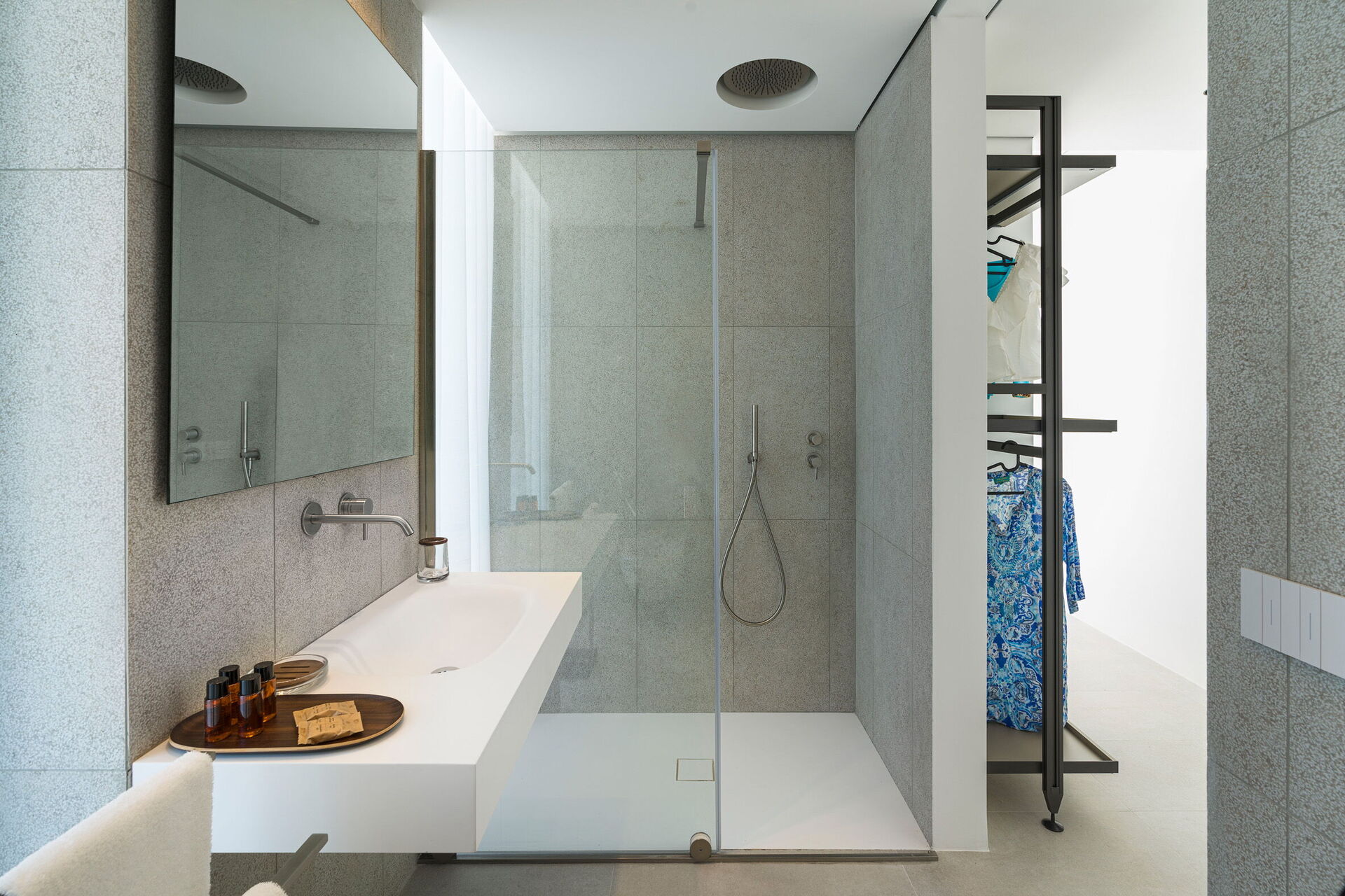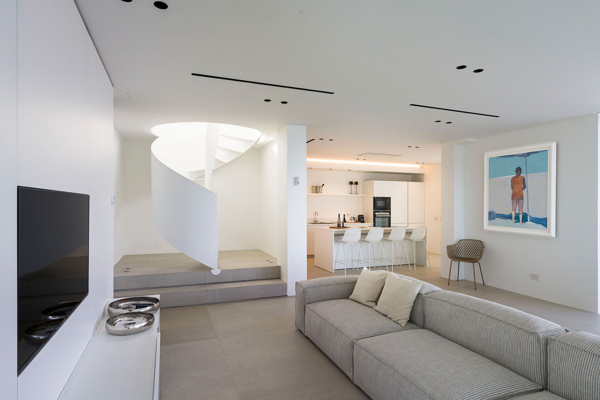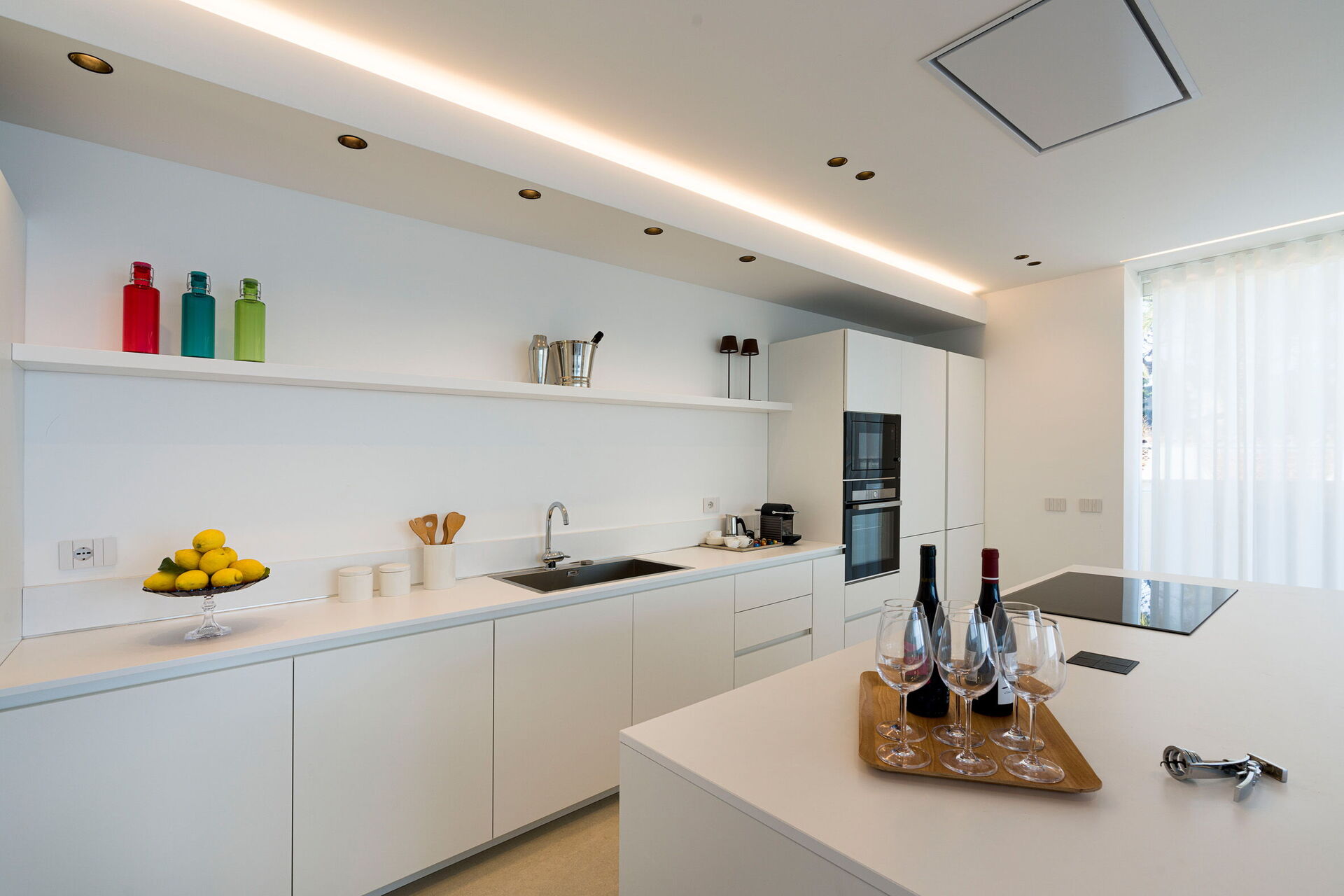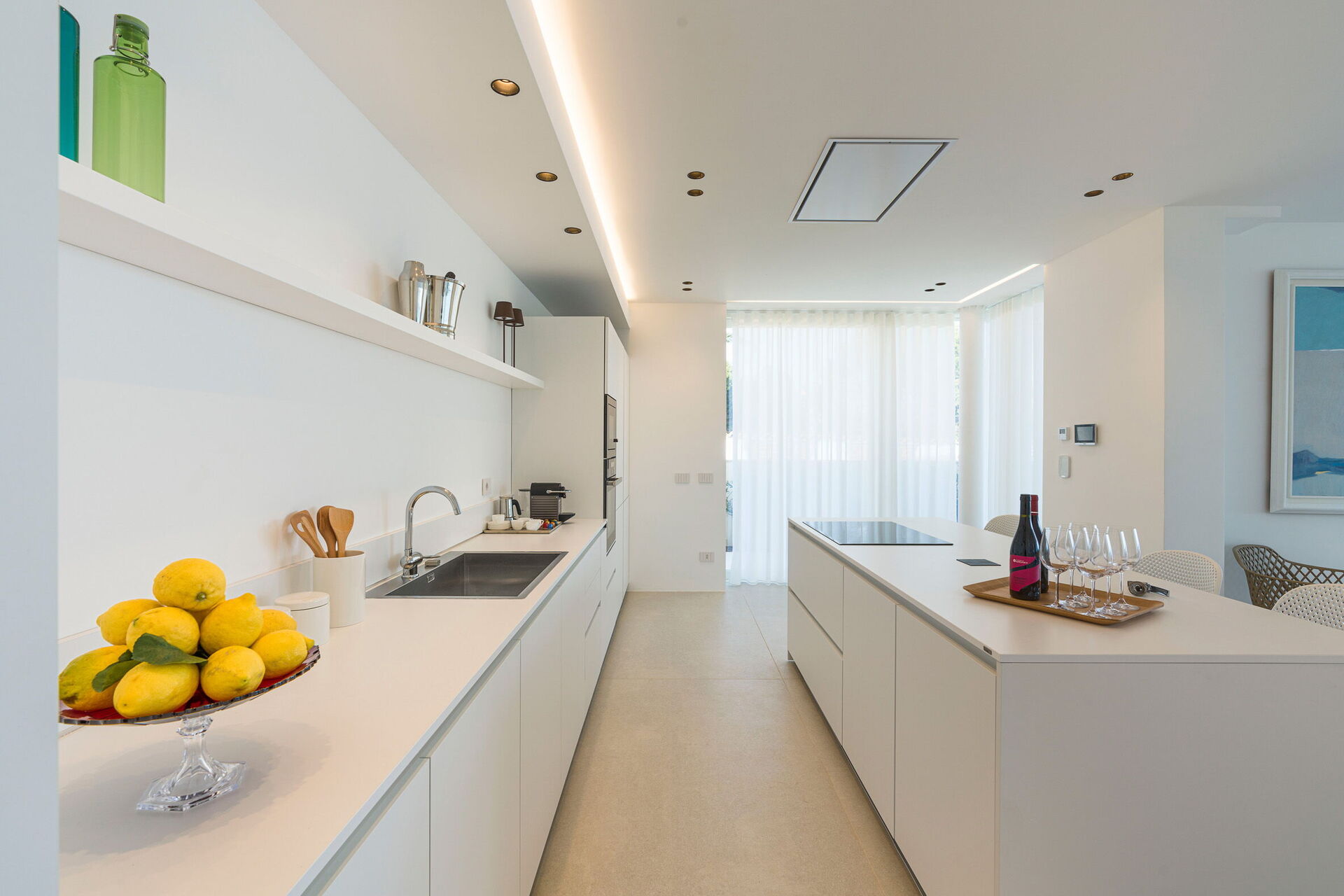 Huset har två våningar, 4 sovrum (alla fyra med eget badrum och en terrass mot havet), och kan bekvämt rymma upp till 8 personer. Interiören är välkomnande och ljus med bekväma moderna möbler och stora panoramafönster med utsikt över havet.