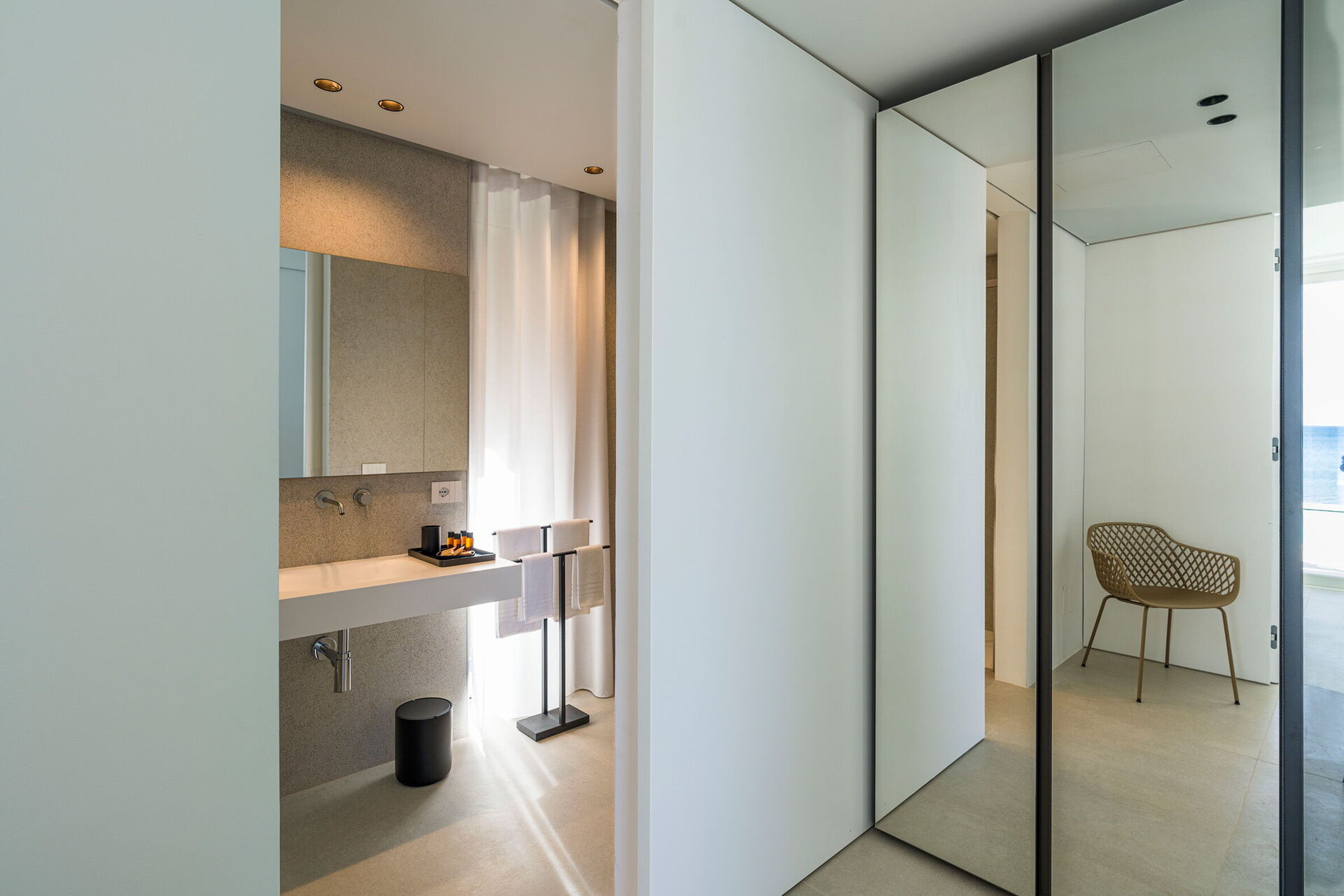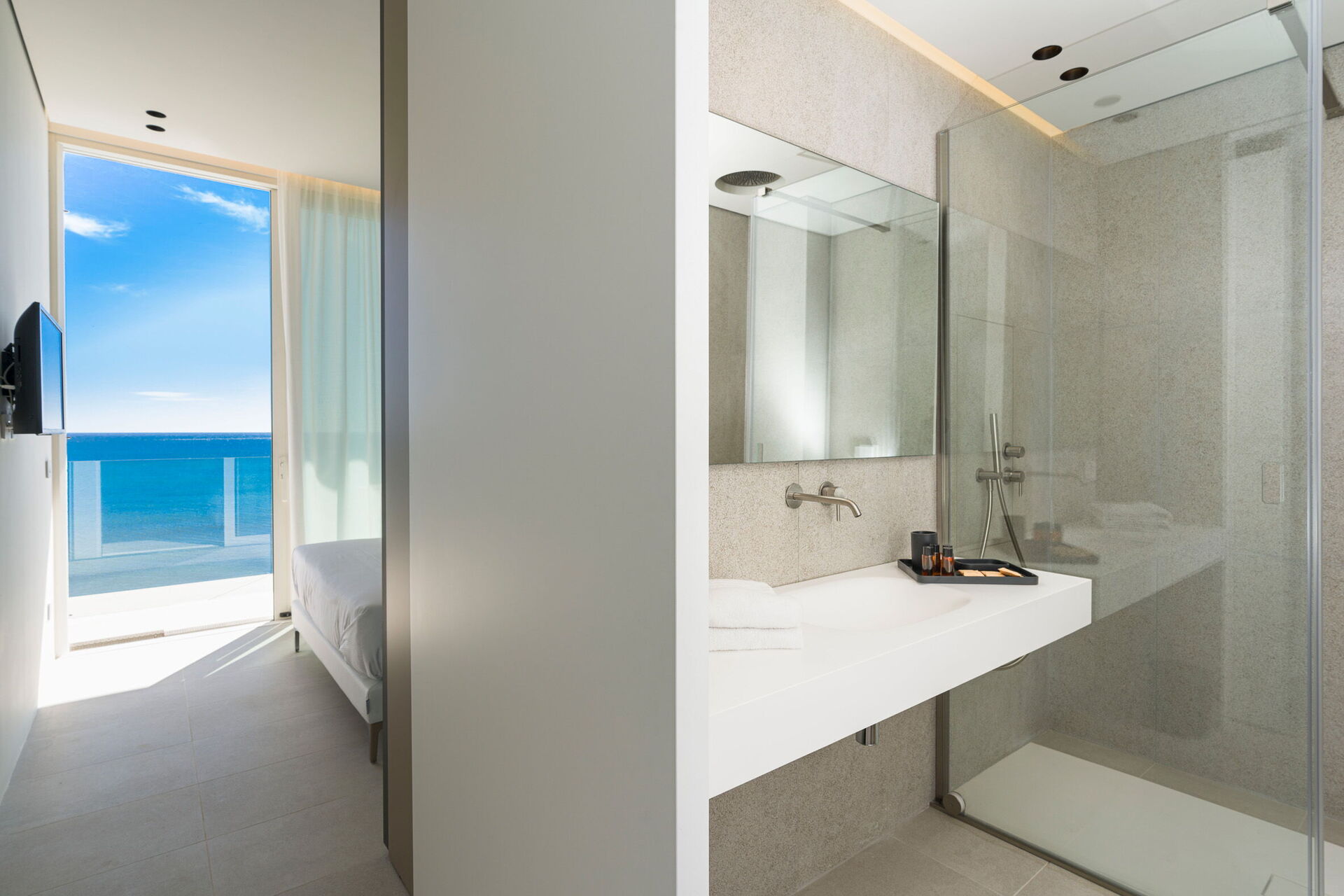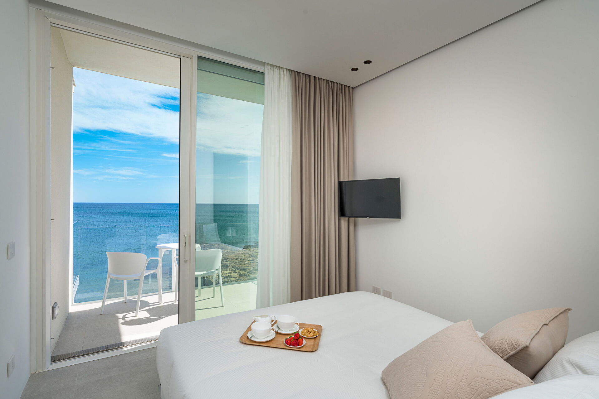 Utomhusområdena med panoramautsikt är fantastiska, koppla av i den uppvärmda utomhuspoolen med hydromassage eller på den stora terrassen som vetter mot havet!