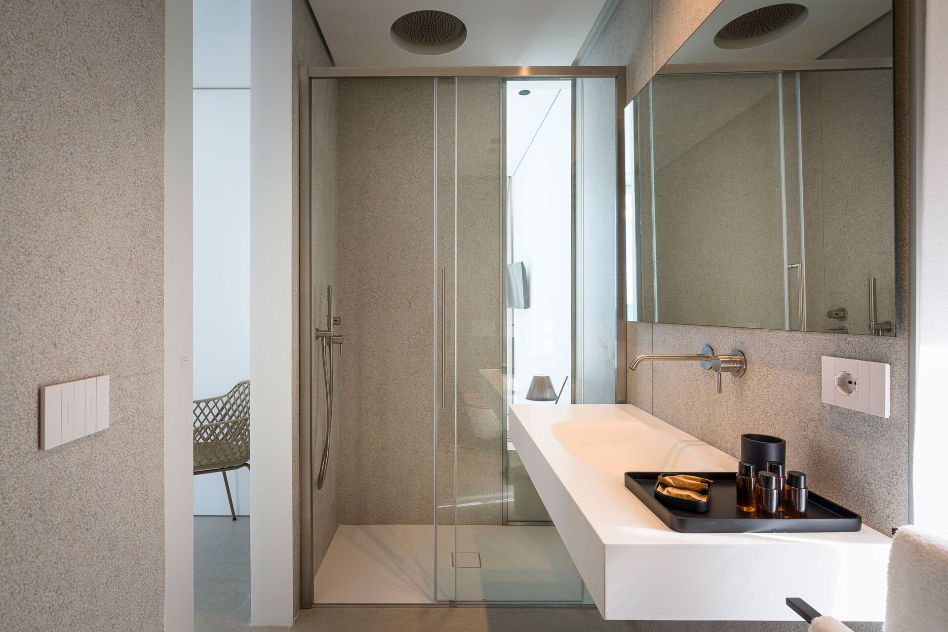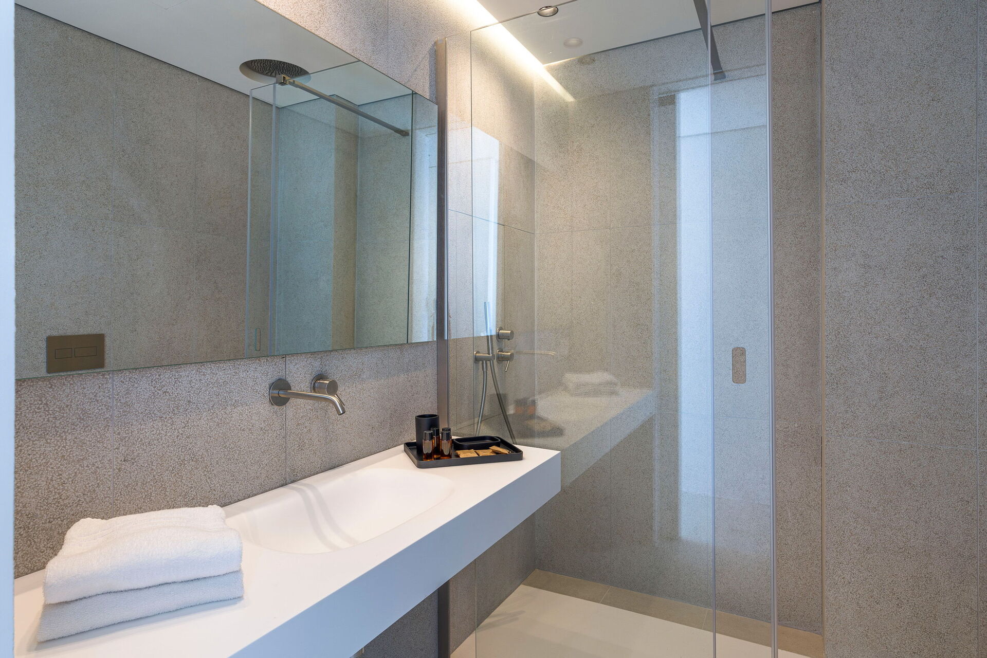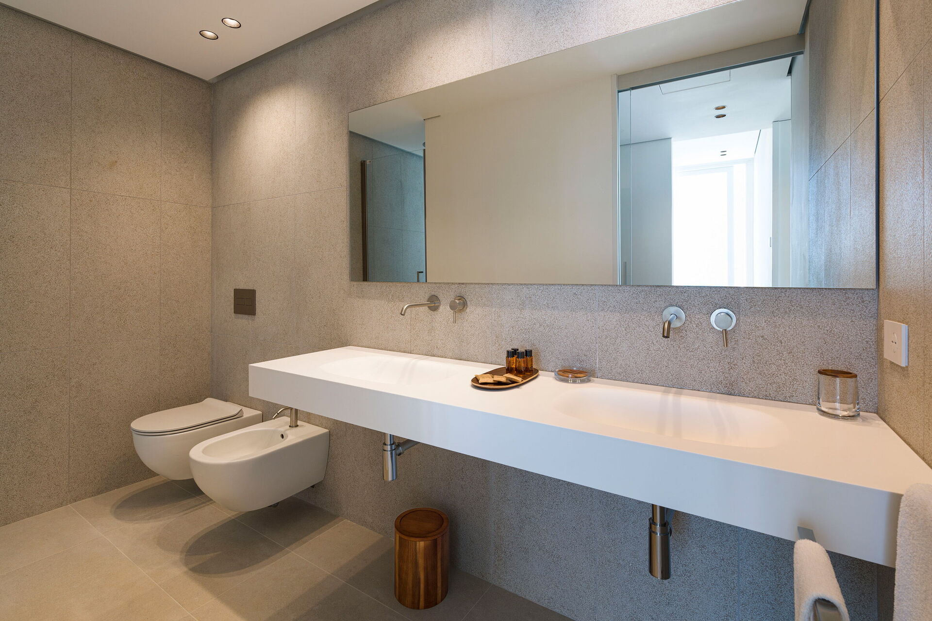 Utomhusområdena med panoramautsikt är fantastiska, koppla av i den uppvärmda utomhuspoolen med hydromassage eller på den stora terrassen som vetter mot havet!