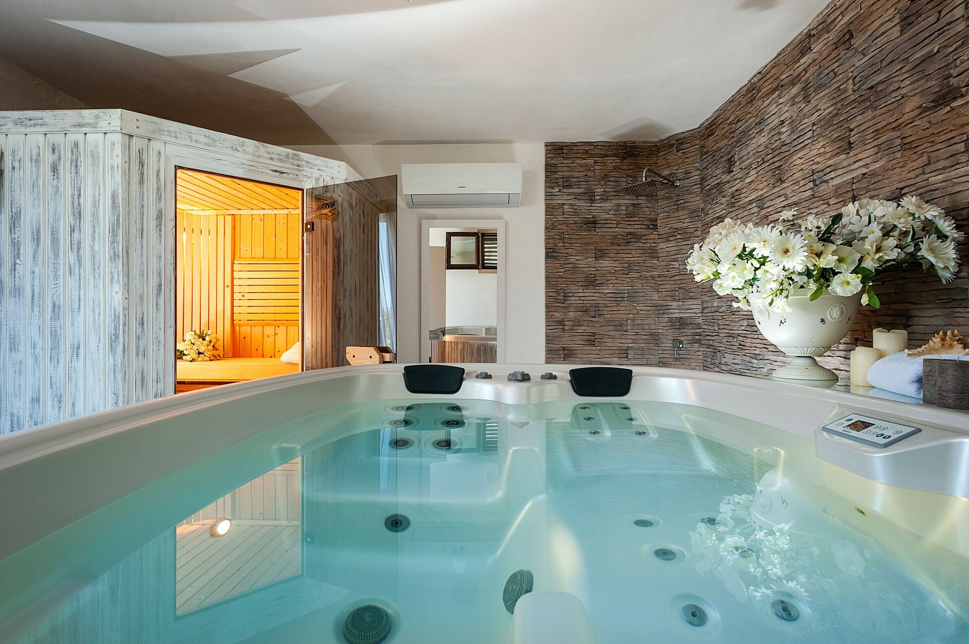 - Vardagsrum med bastu, bubbelpool, multi-sensorisk dusch