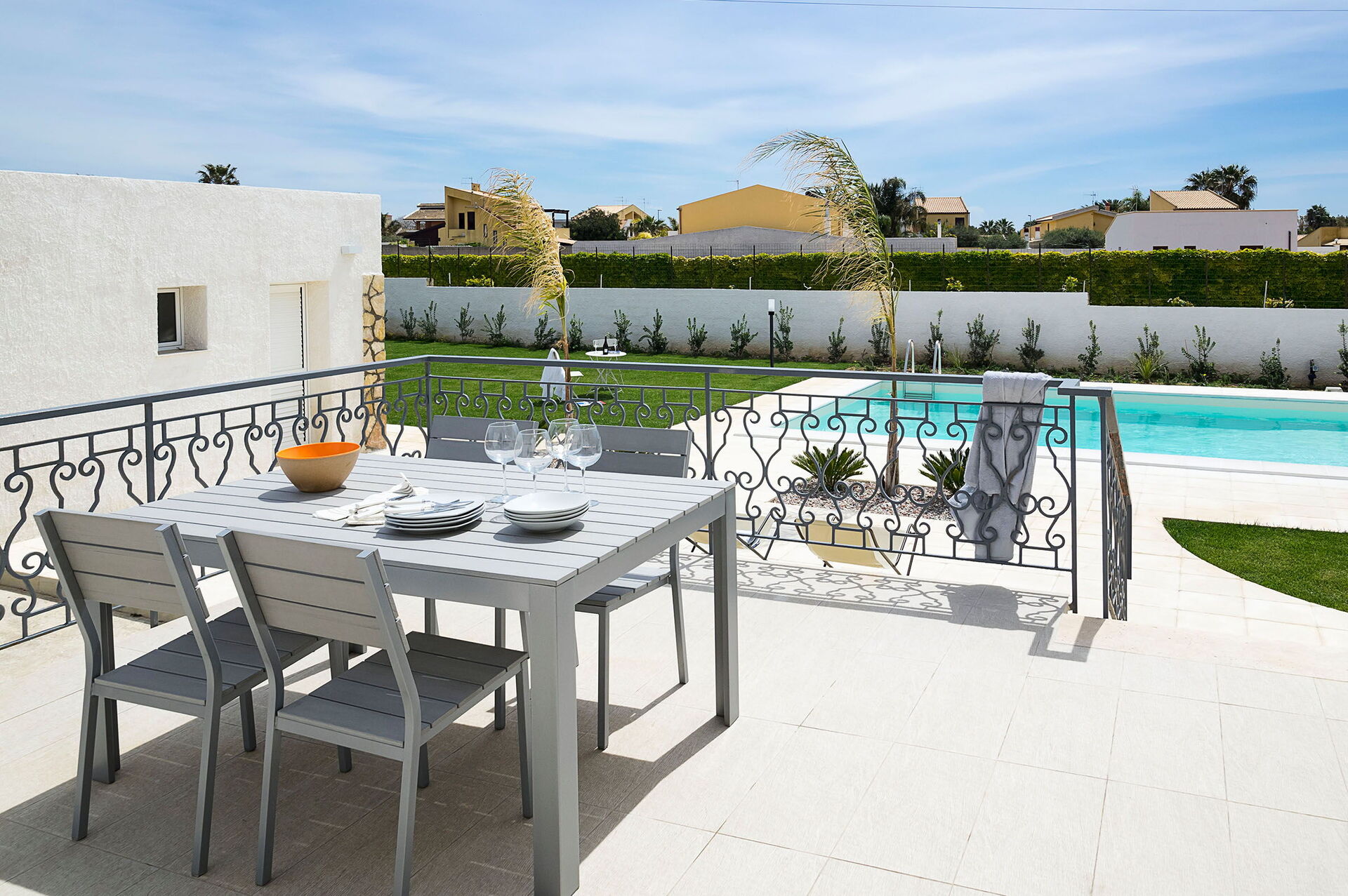 Utomhusområdena med panoramautsikt har många gemensamma utrymmen där gästerna kan roa sig med familj eller vänner, eller koppla av vid den saltrensade poolen (utan klor) eller på solterrassen för att njuta av den sicilianska solen.