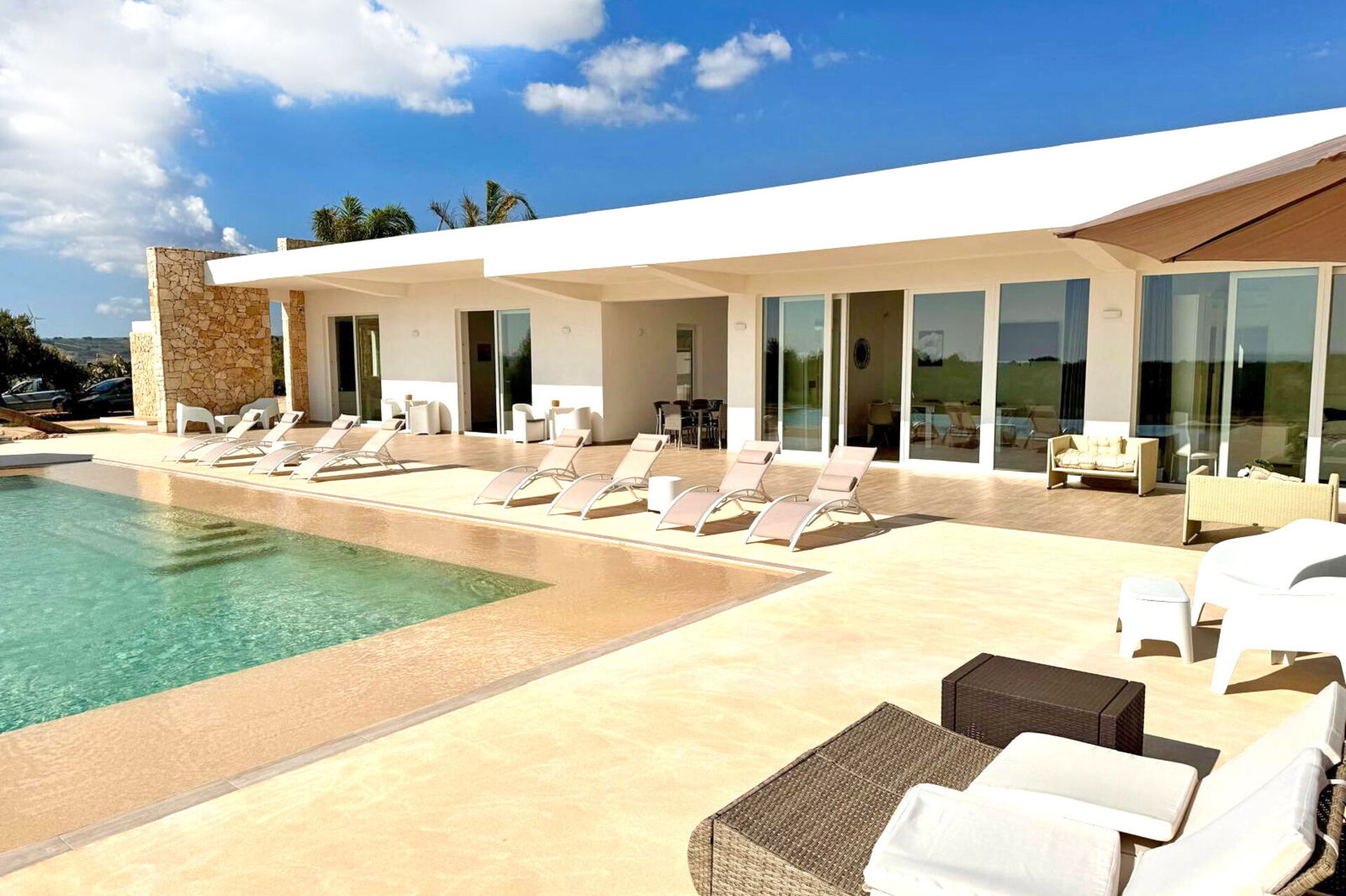 Villa Infinito är ett modernt semesterhus med privat pool på Sicilien som ligger på en solig plats bara några kilometer från havet nära Menfi.