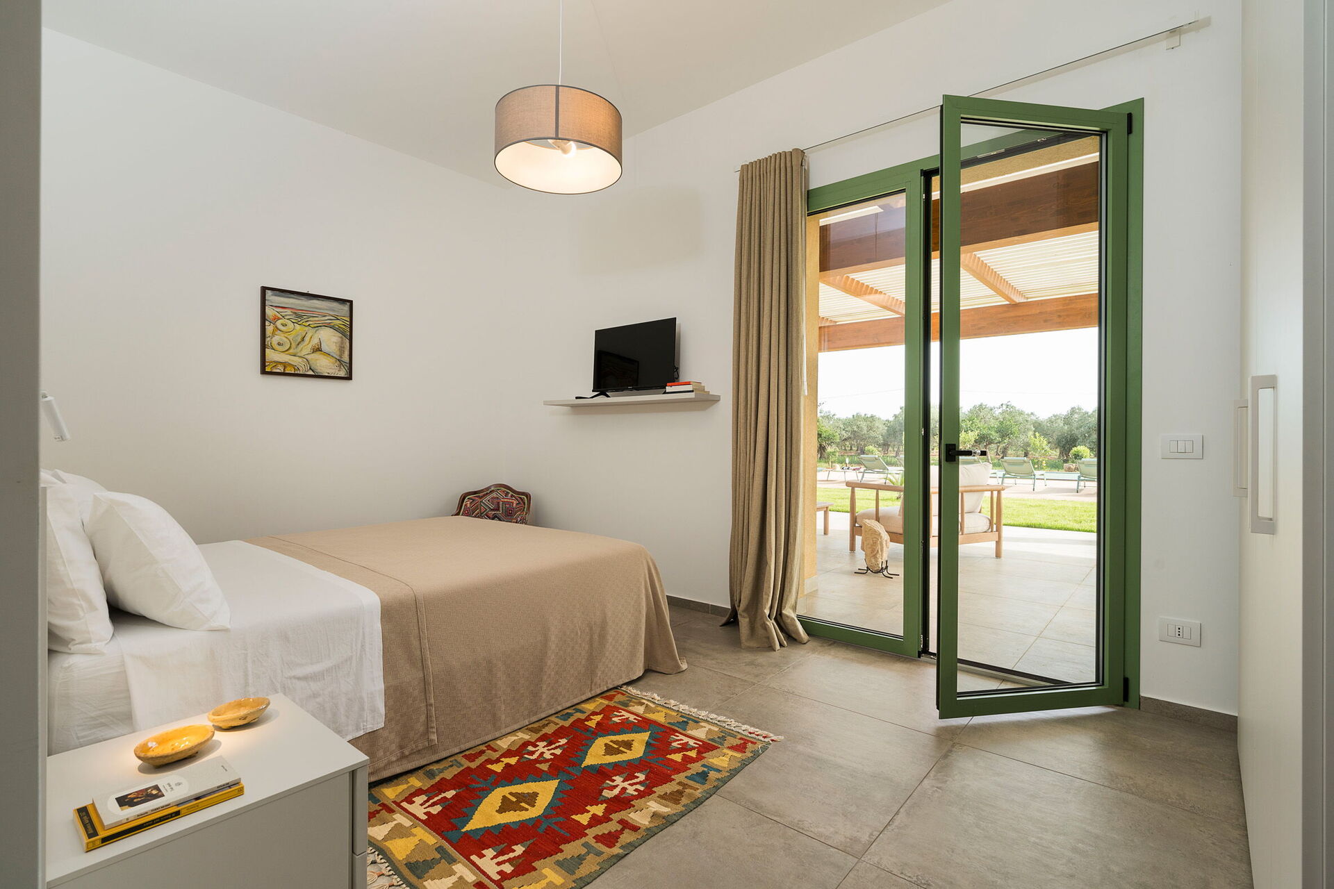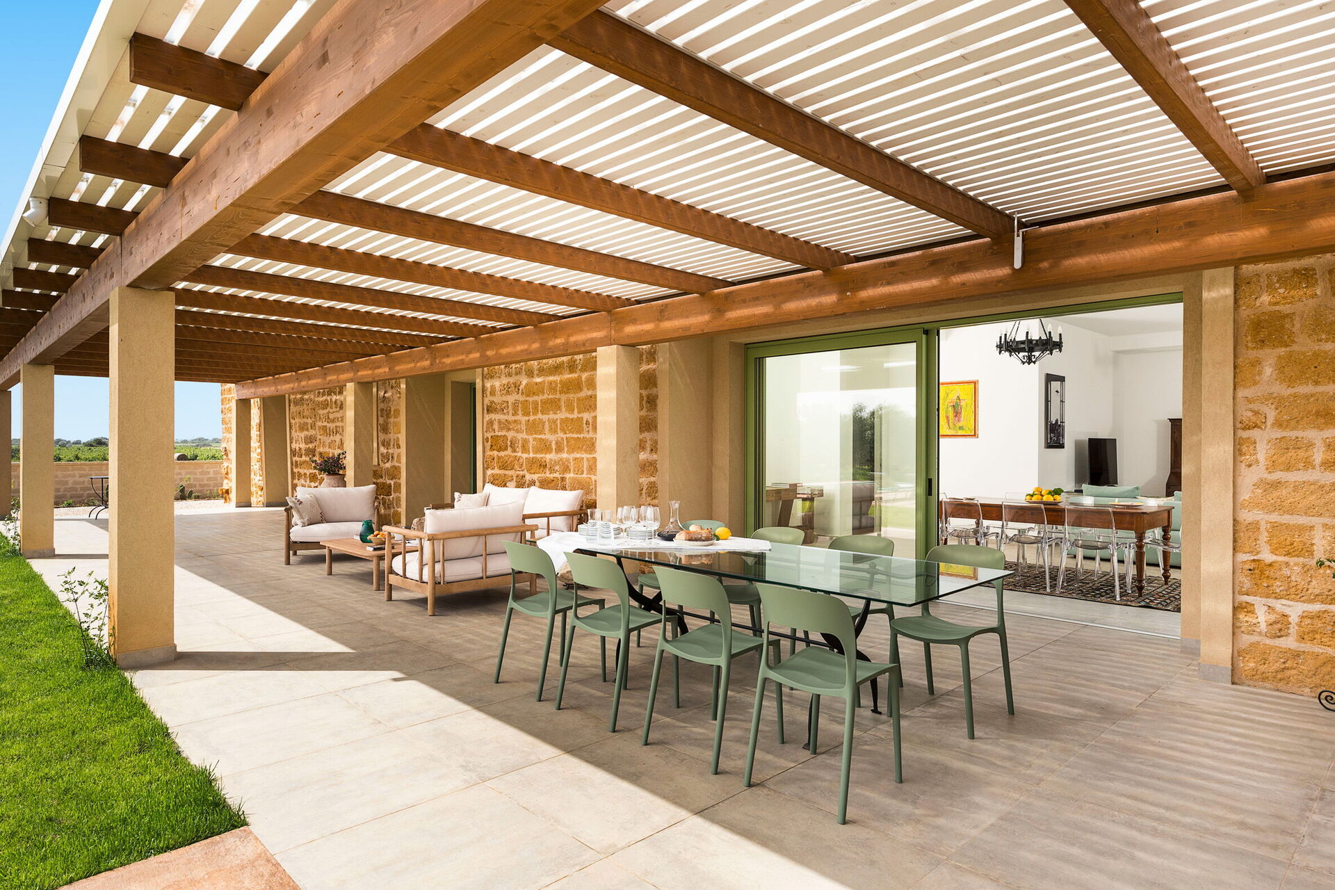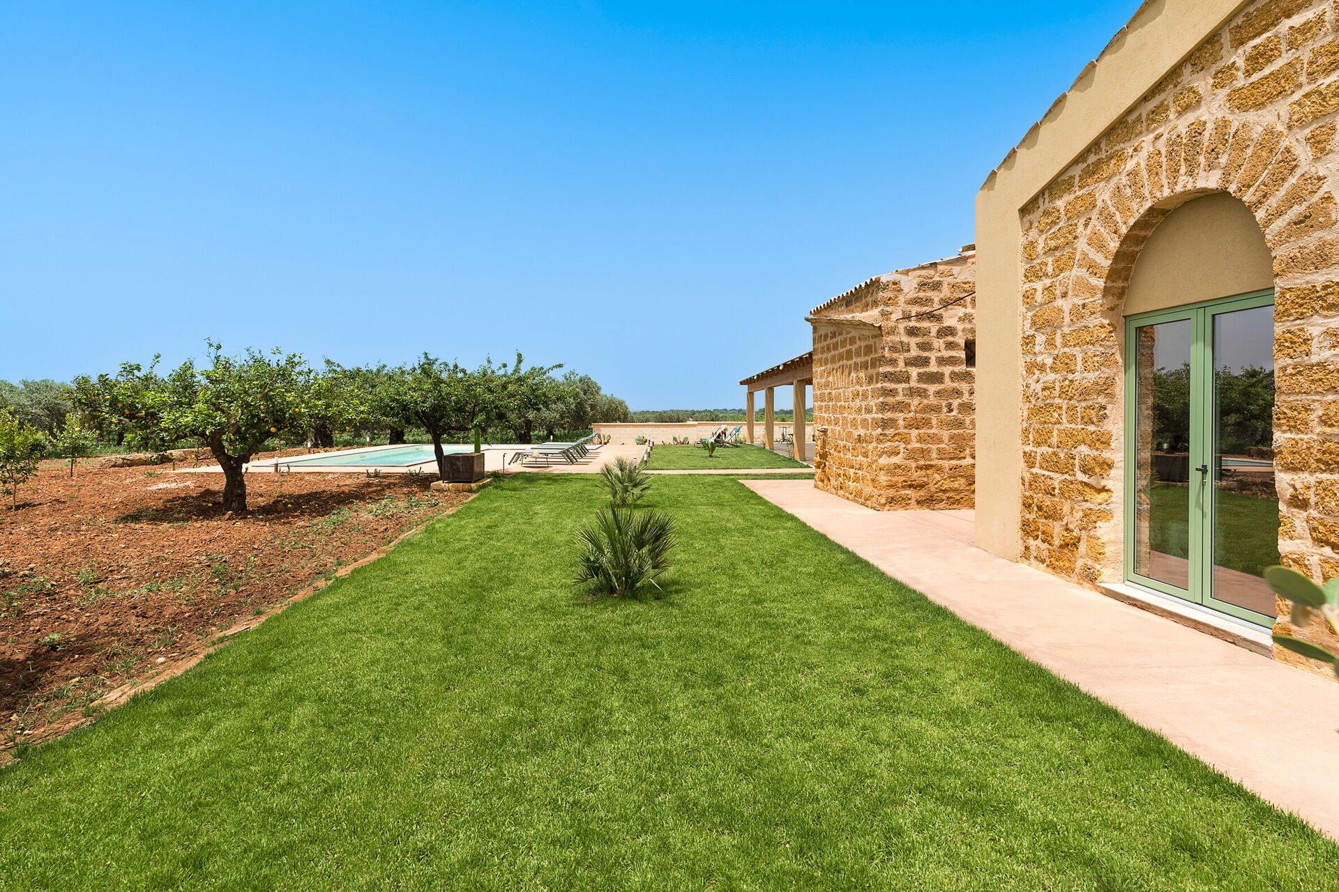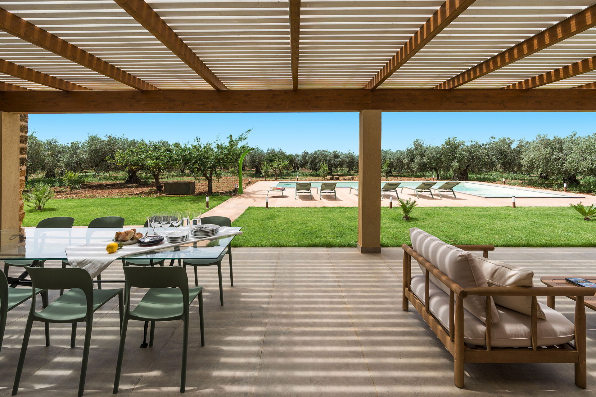 På fastigheten finns en stor saltvattenpool med bubbelhörna och en rymlig solterrass med solstolar: den perfekta platsen för avkoppling eller ett uppfriskande dopp under soliga sommardagar. Här kan man också njuta av lugnet och stillheten medan man sippar på en drink vid solnedgången.