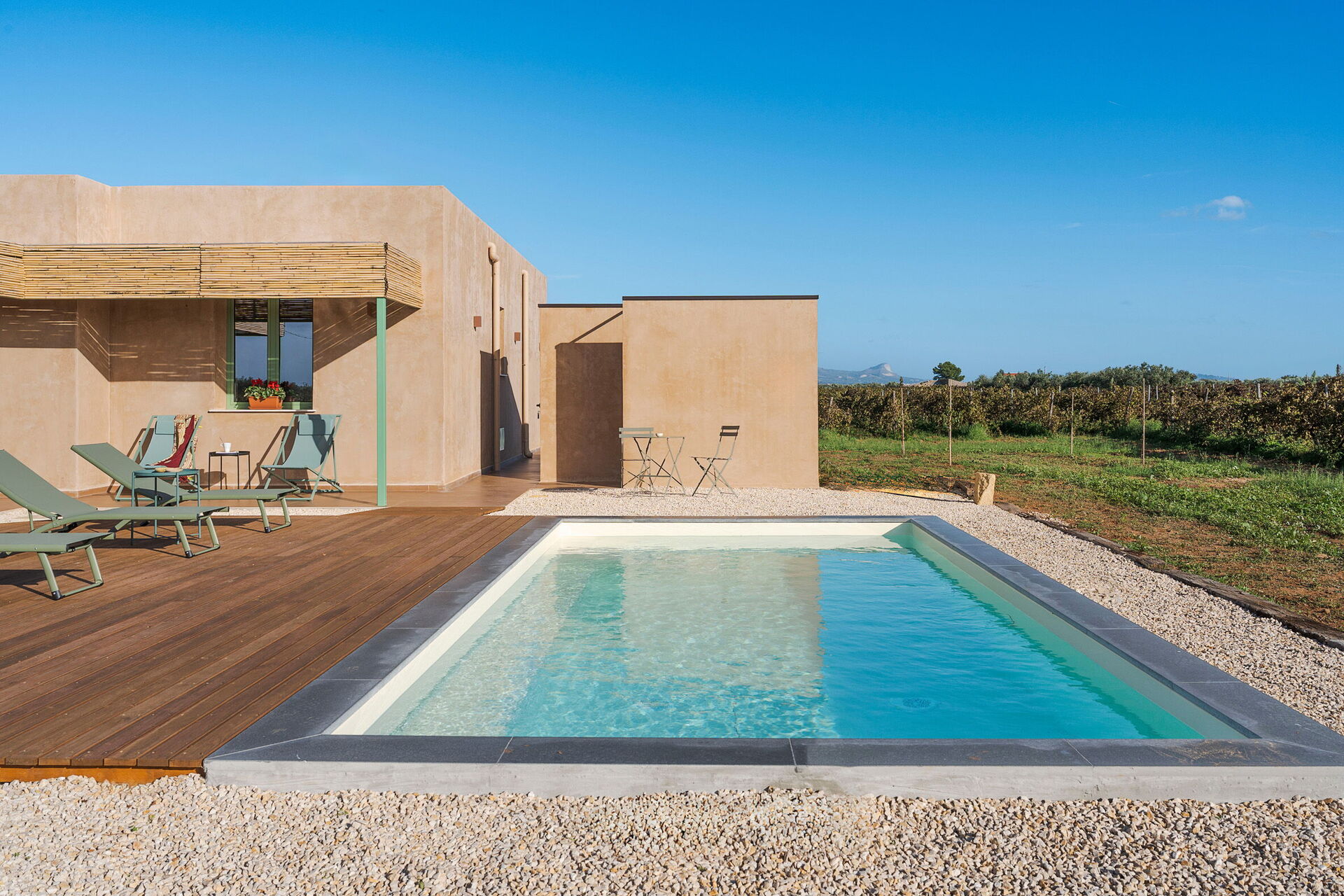Villa Memà är ett bekvämt semesterhus på Sicilien, helt oberoende och utrustat med en privat pool exklusivt för 4 gäster. Denna nyligen renoverade fastighet ligger i ett välskött jordbrukslandskap med olivlundar och de kända Menfi-vingårdarna. Belägen helt på bottenvåningen utgör den en idealisk logistisk lösning för par eller små familjer som söker bekvämligheterna och avskildheten hos en förstklassig egendom i ett kompakt och funktionellt format.
