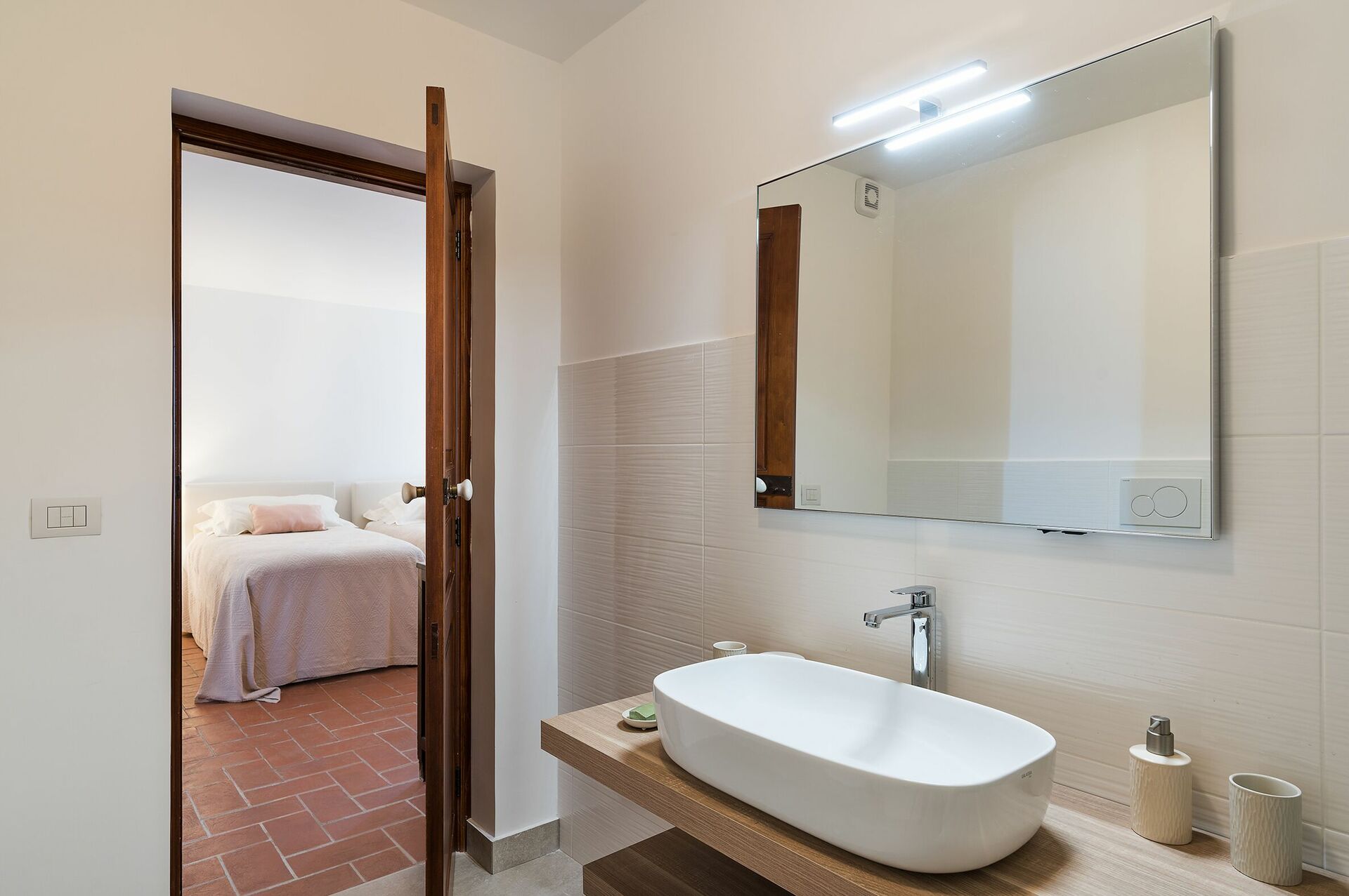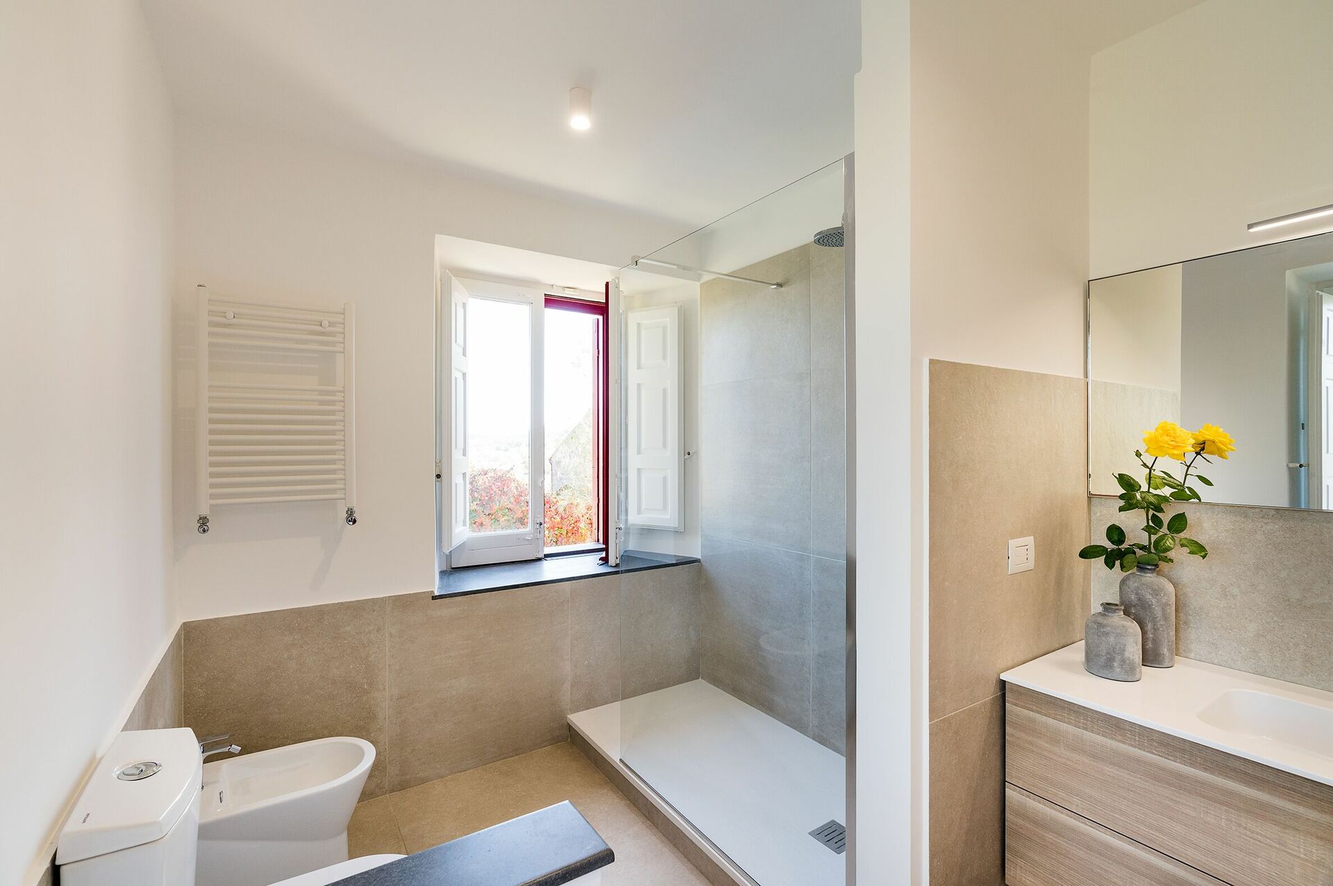 Första våningen: 2 dubbelrum, alla med eget badrum med dusch; 1 sovrum med 2 enkelsängar och eget badrum med dusch.