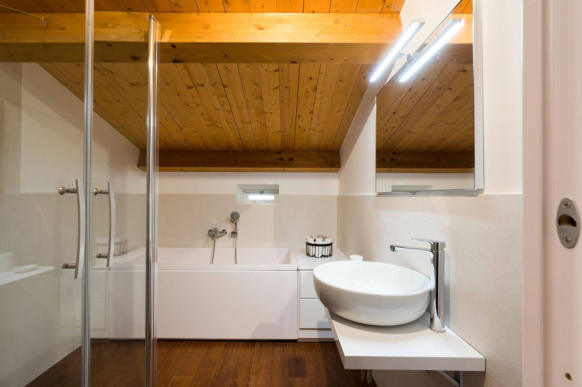 Andra våningen (på vinden): 1 svit med sovrum med dubbelsäng och eget badrum med badkar och dusch.