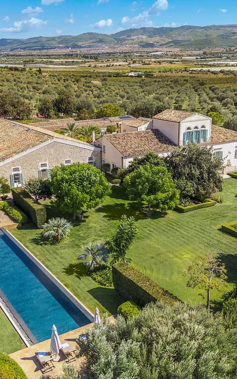 Stor, lyxig egendom med privat pool på Sicilien i ett soligt och fridfullt läge omgivet av olivlundar.