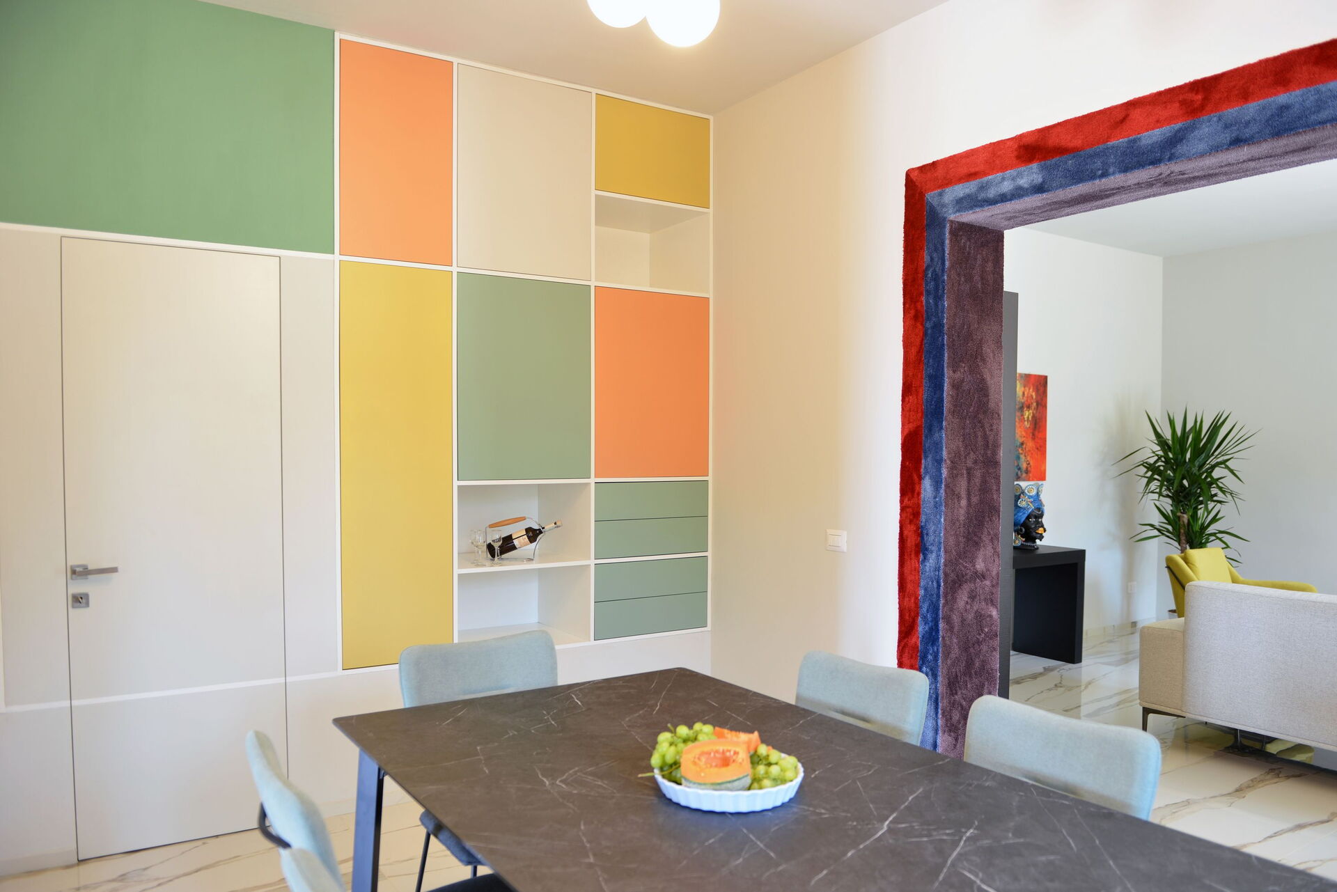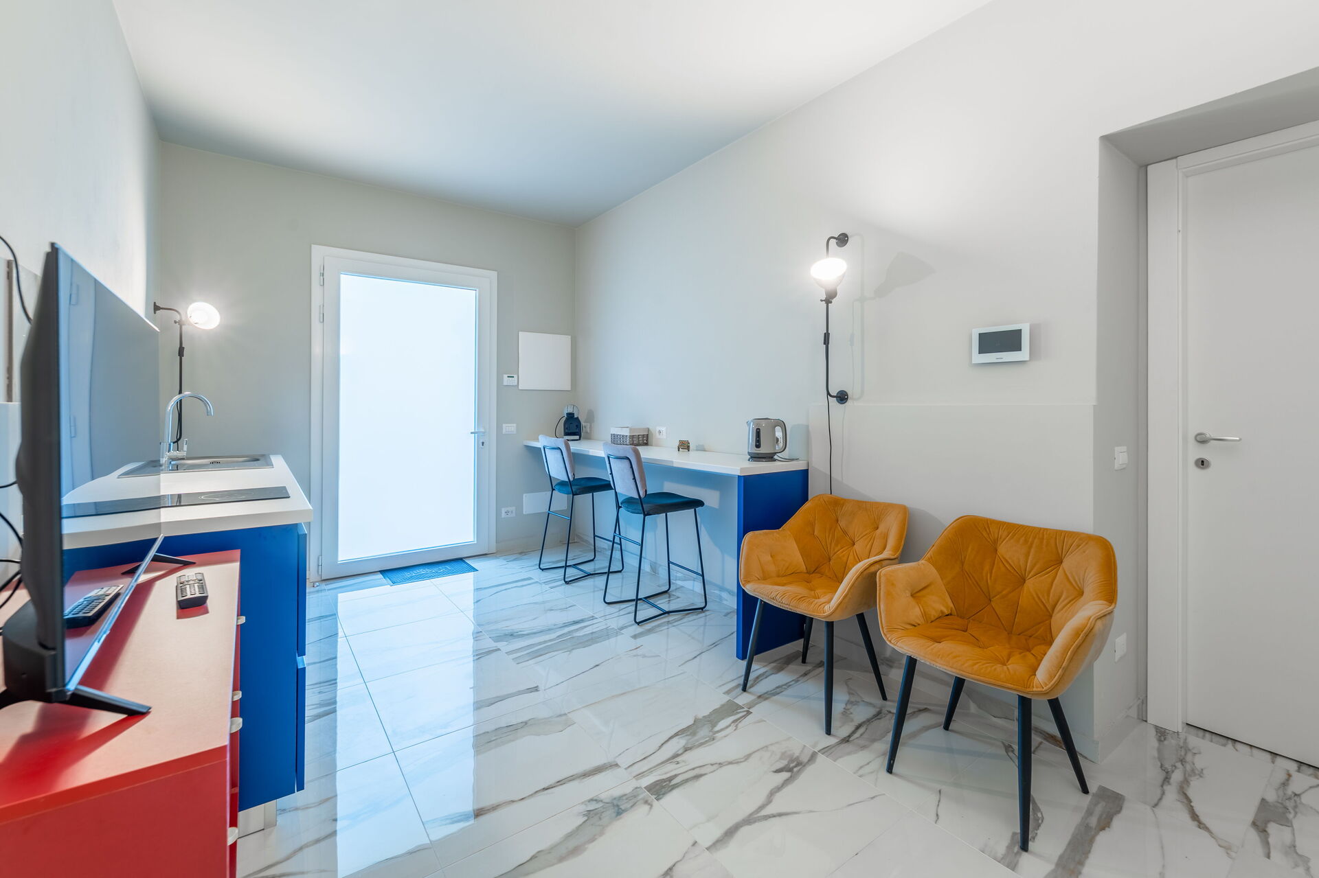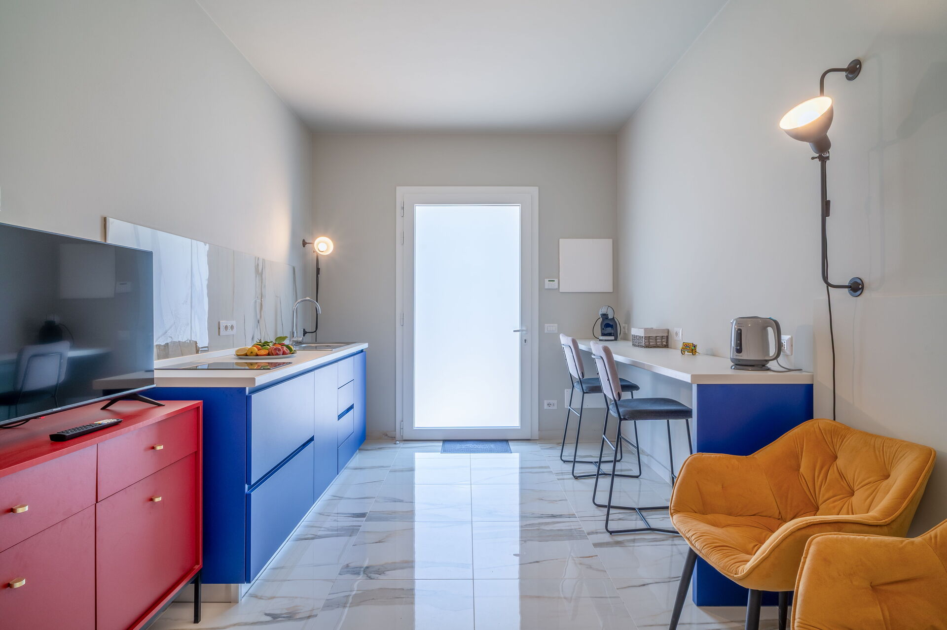 Stort vardagsrum med vardagsrum, matsal och kök (ugn, frys, diskmaskin, mikrovågsugn, espressomaskin); WC med tvättmaskin; 2 dubbelrum, alla med eget badrum med dusch