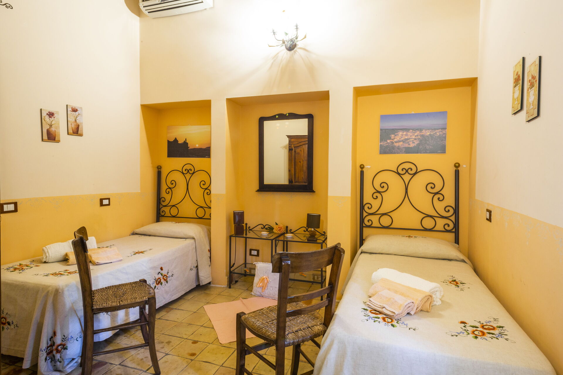 Alla dubbelrum har tillgång till utsidan. Det finns luftkonditionering i alla rum.
