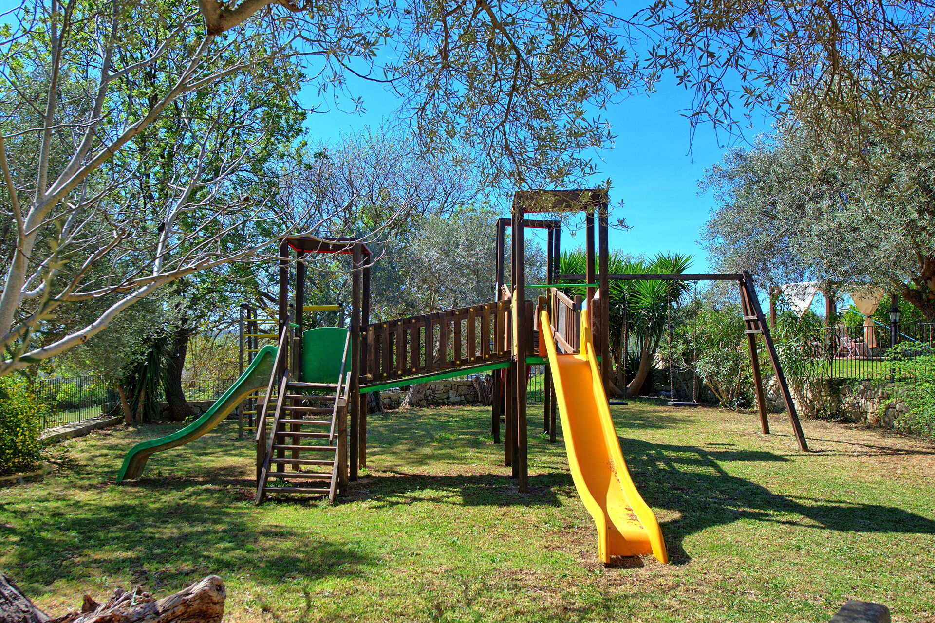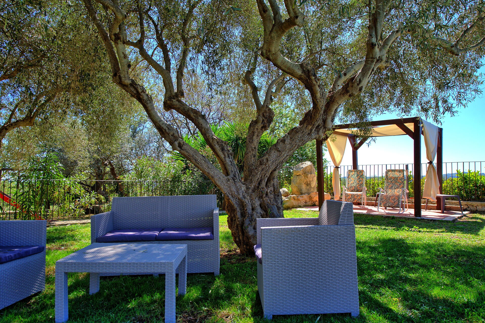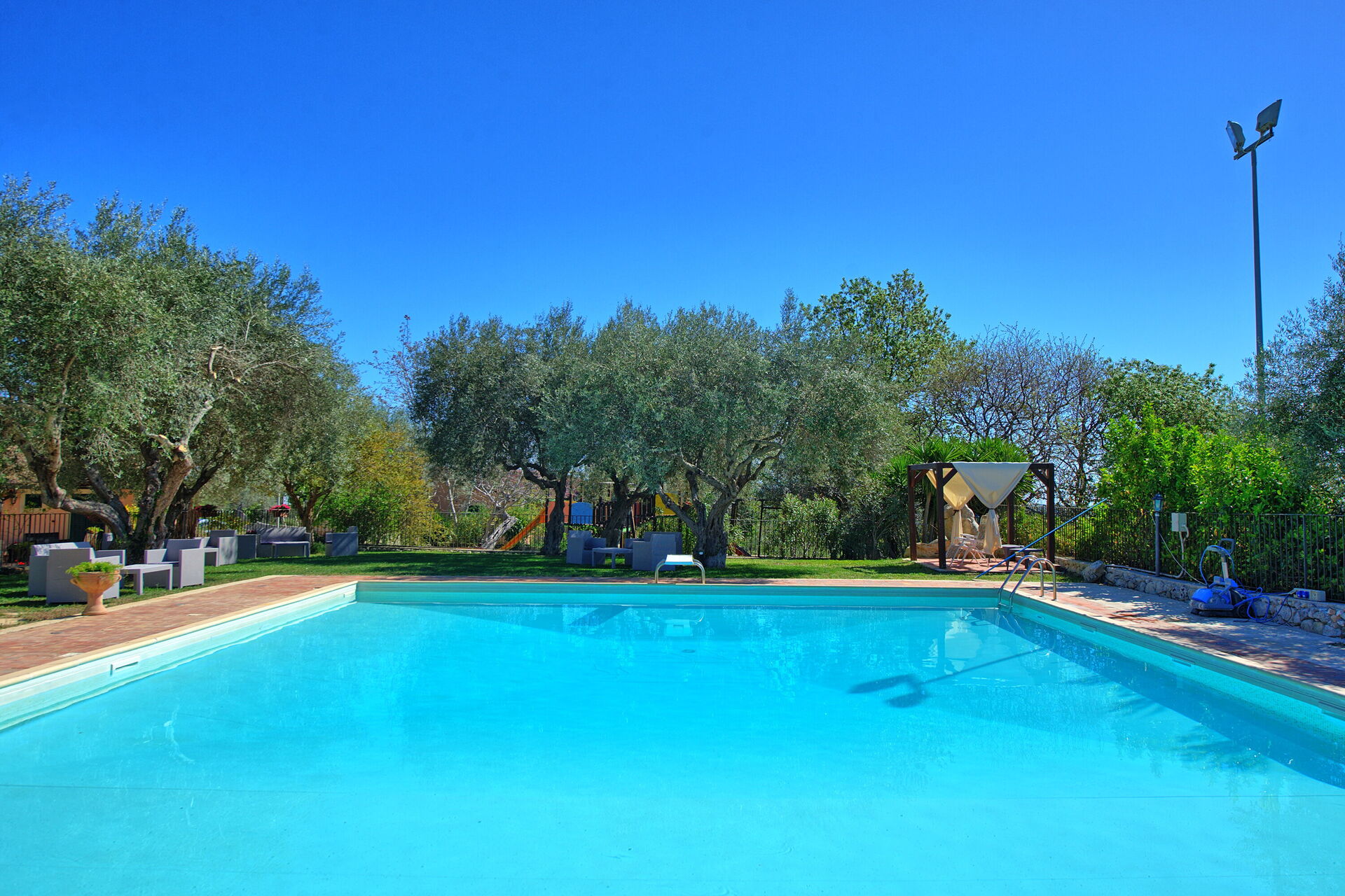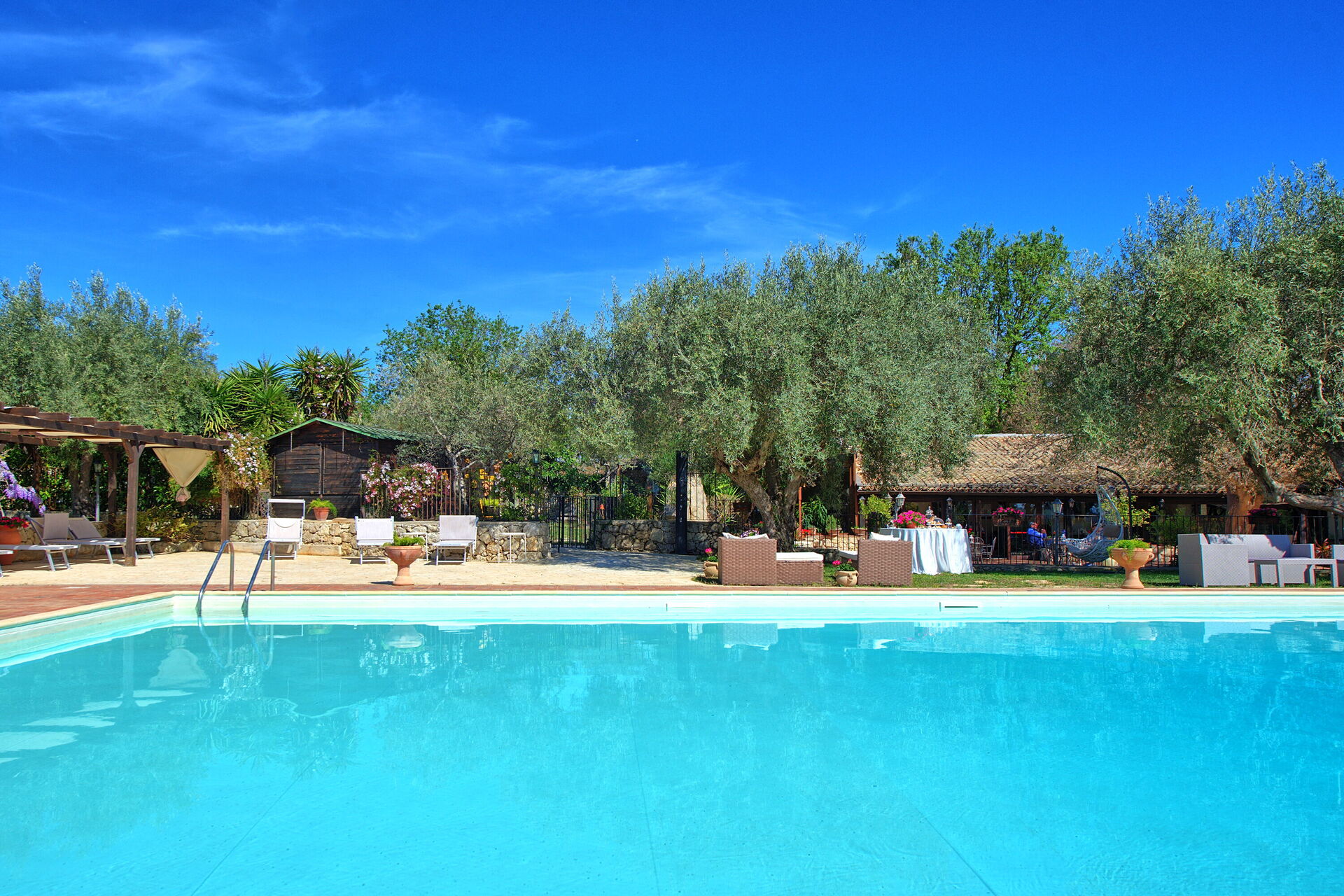 Det finns en vacker pool, två verandor och en lekplats med rutschkana och gunga. Huset är omgivet av vingårdar, olivlundar, mandelträd och vandringsleder.