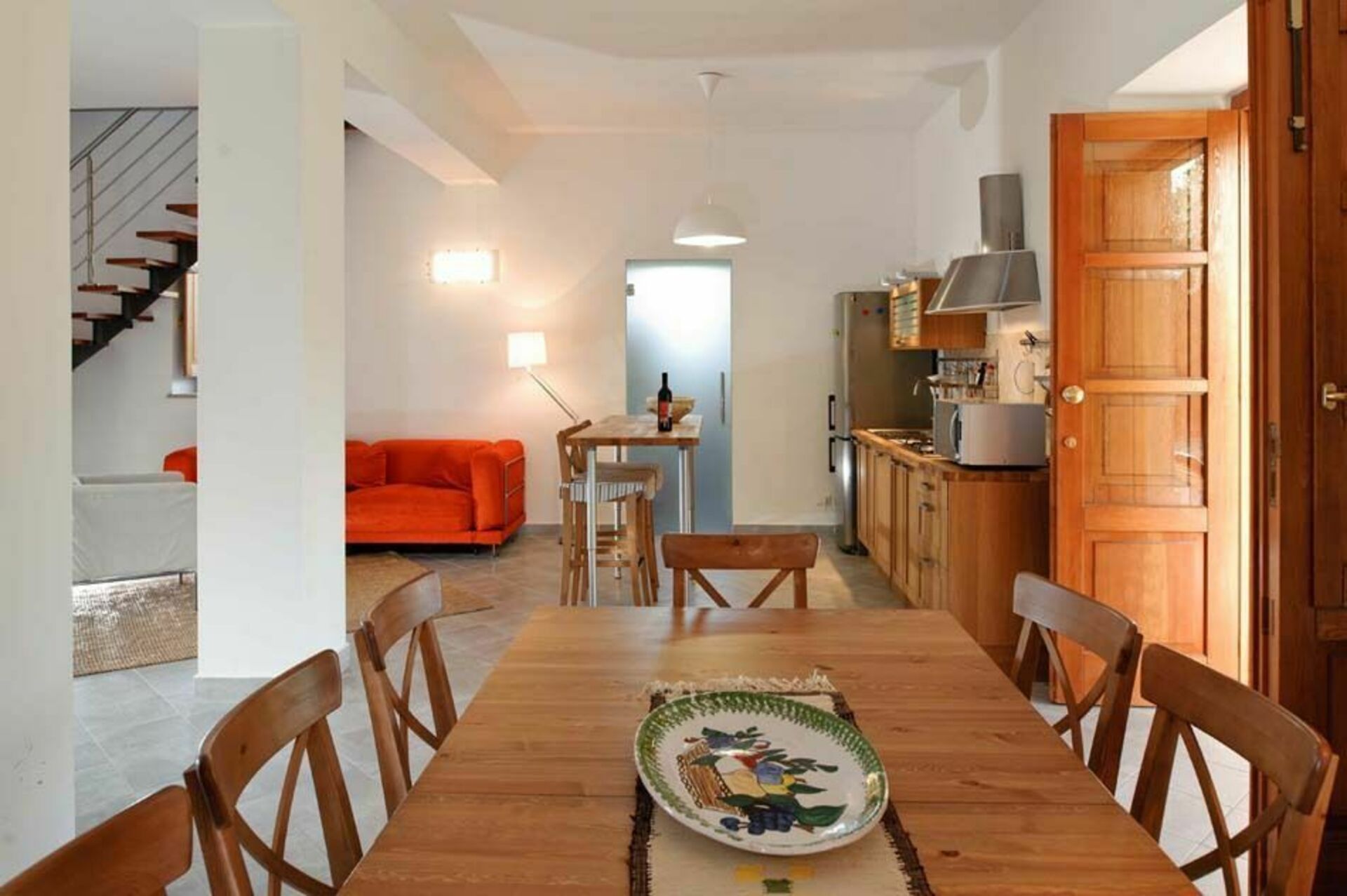 Semesterhuset har nyligen renoverats i sin ursprungliga stil, har två våningar och 3 sovrum. Inredningen är enkel och elegant, medan det på utsidan finns en trevlig och skuggig terrass omgiven av oliv- och citrusträd.
