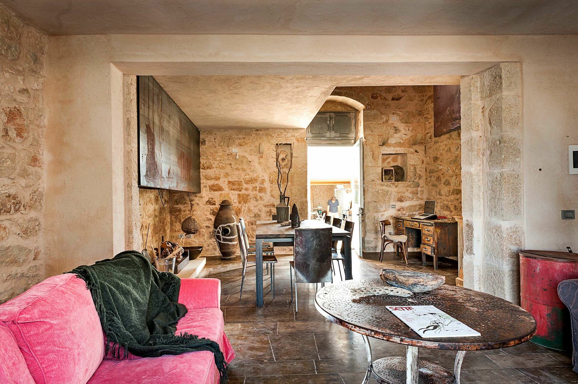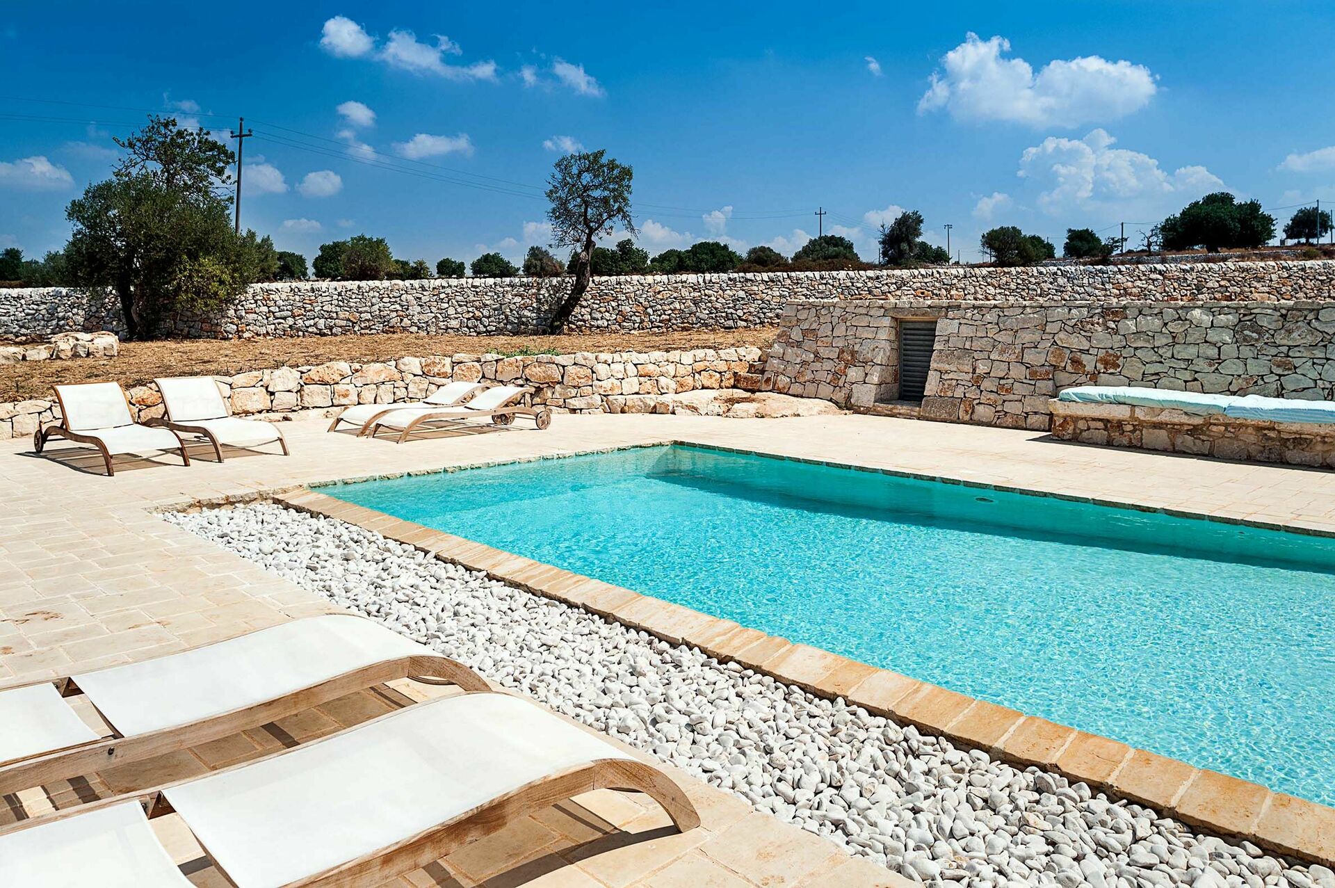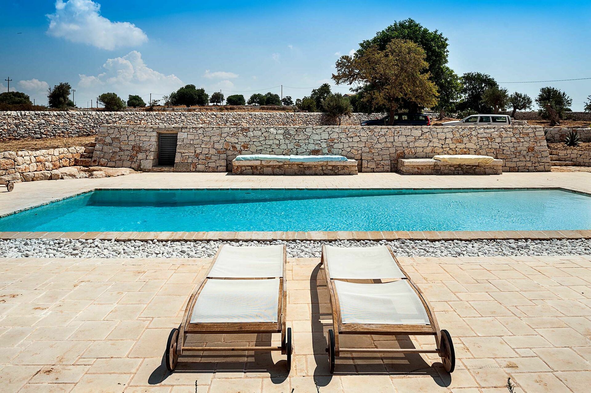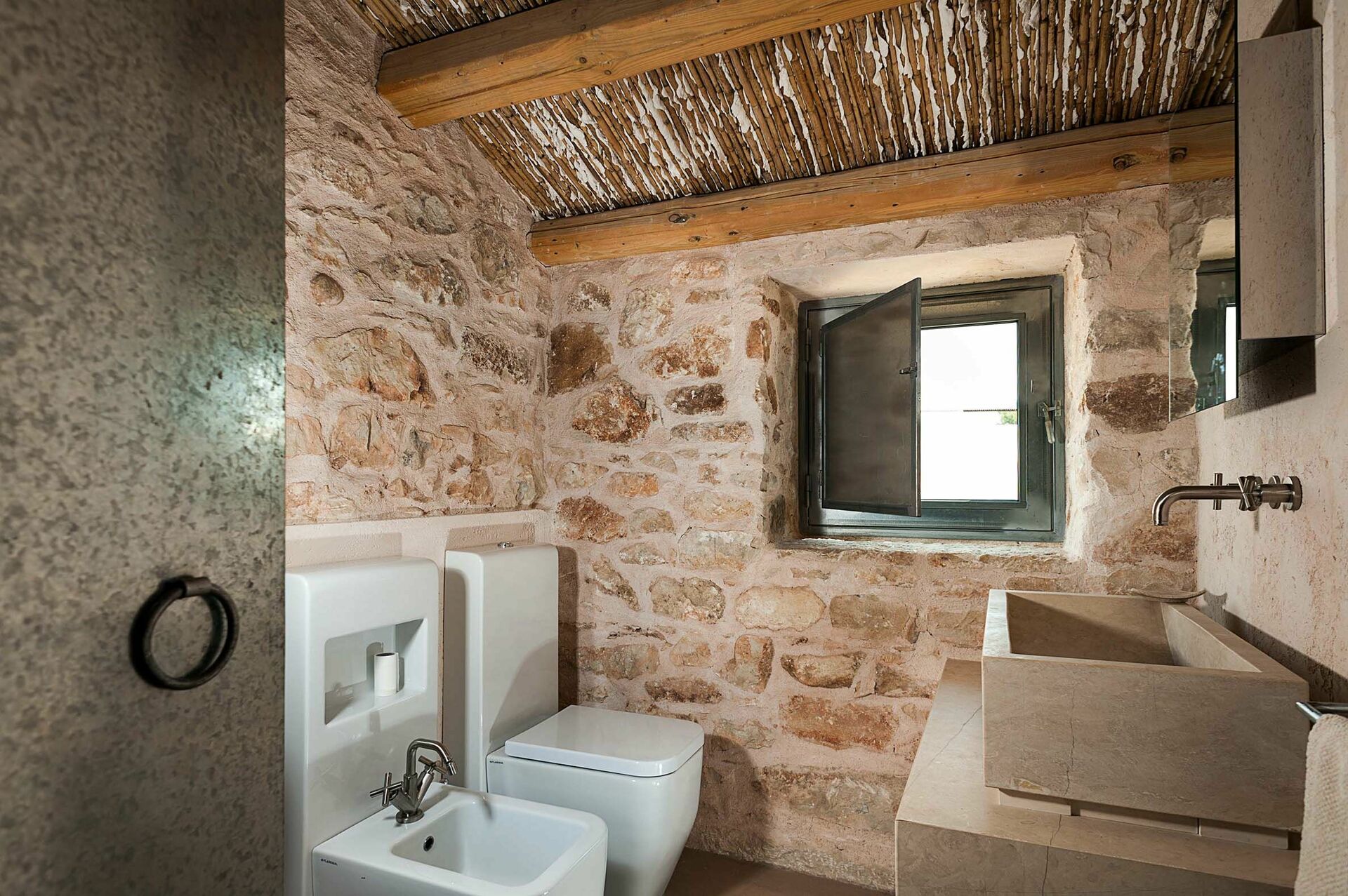 Huset är omgivet av traditionella stenstaket och erbjuder en vacker pool; stora, soliga terrasser; och en charmig innergård. Interiören har designelement och användning av material som natursten, stål och trä, i perfekt harmoni med byggstilen.