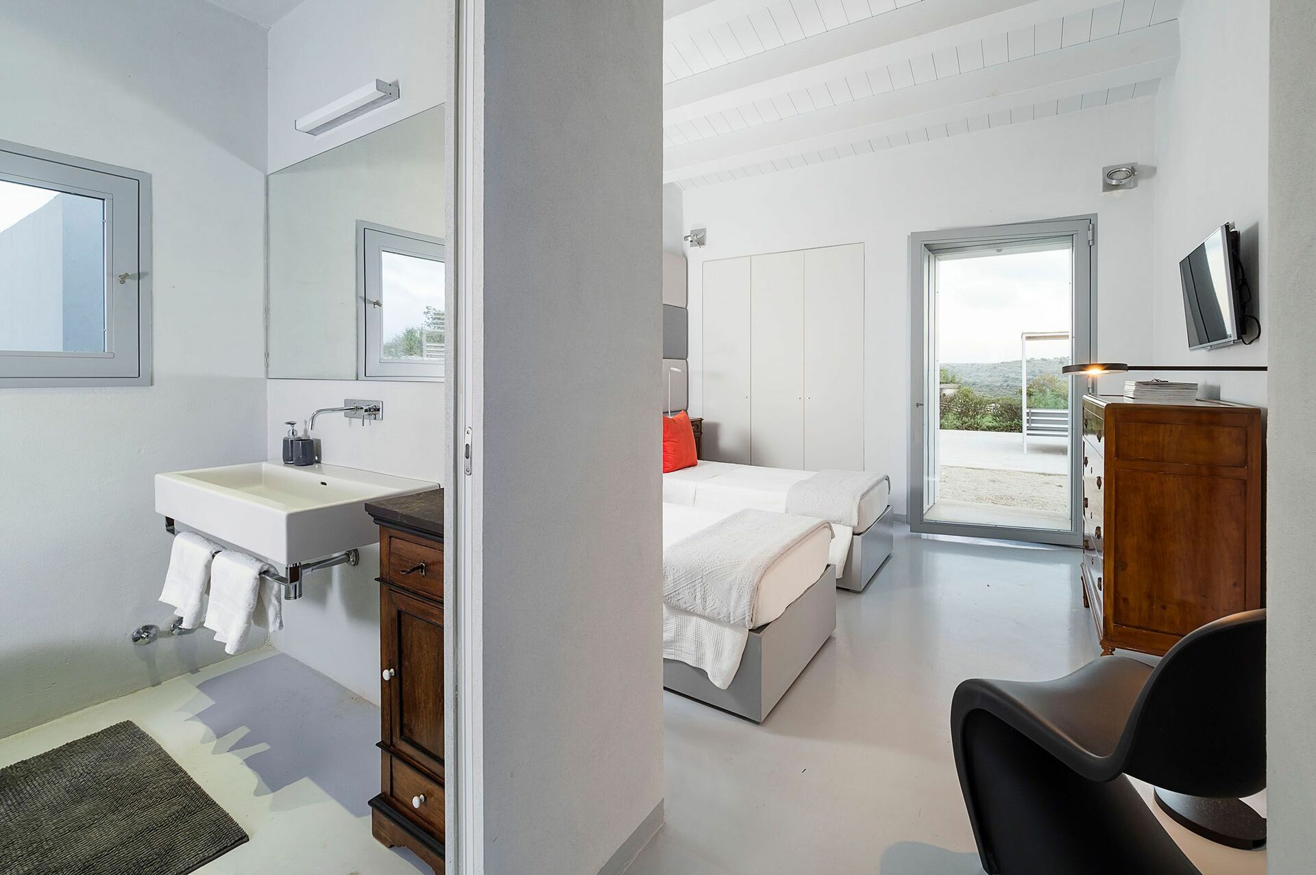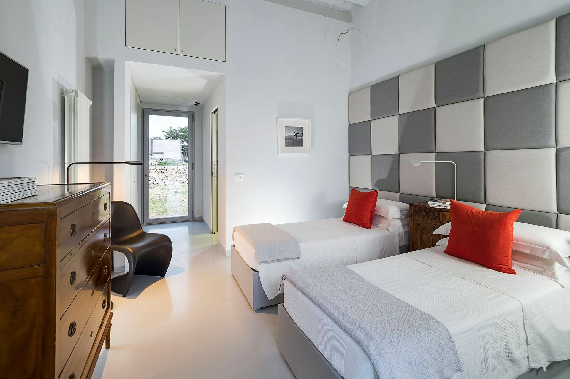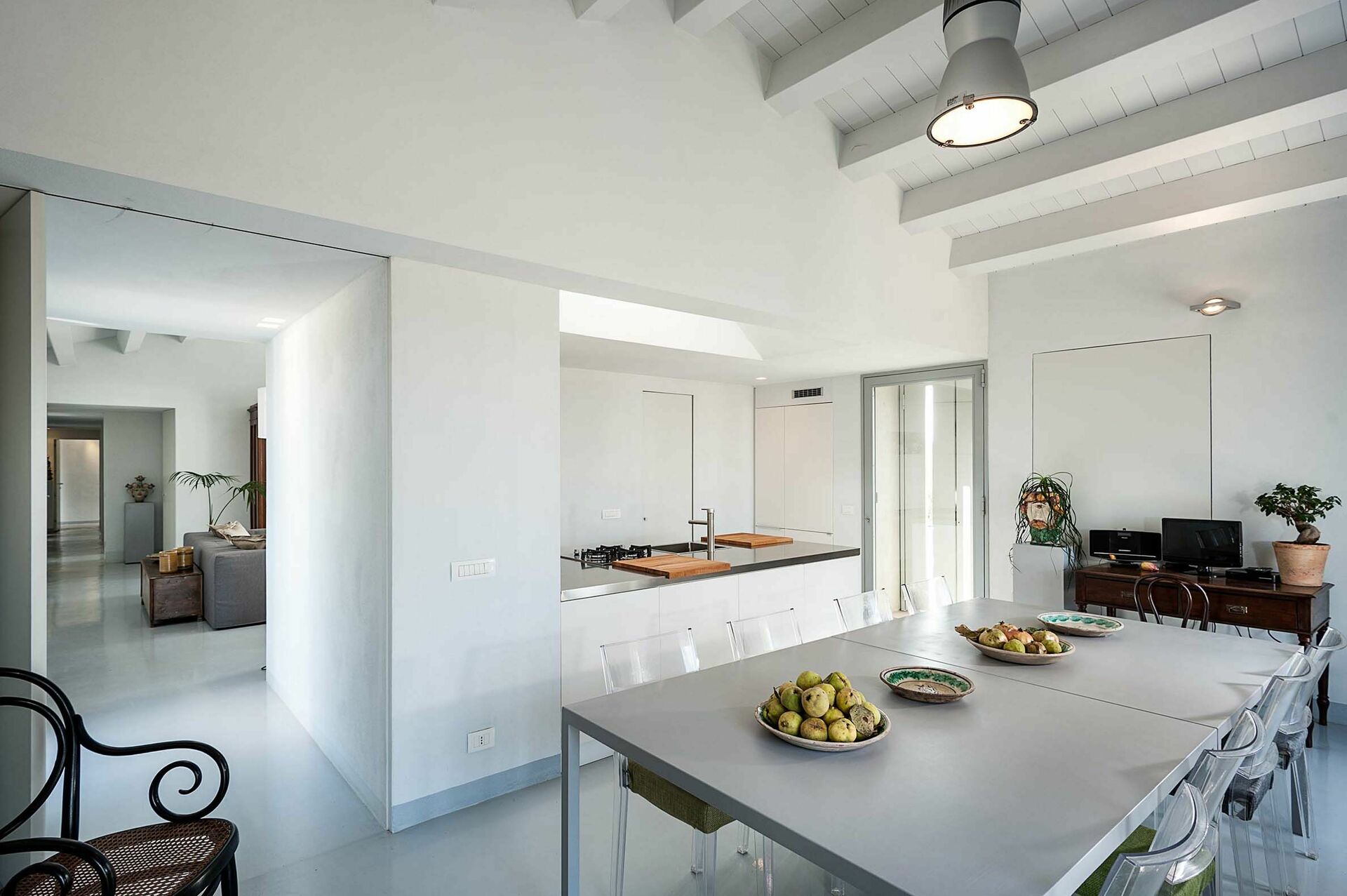 Semesterhuset är smakfullt inrett med en interiör som fokuserar på detaljer: det finns inslag av antikviteter, såväl som moderna designmöbler.