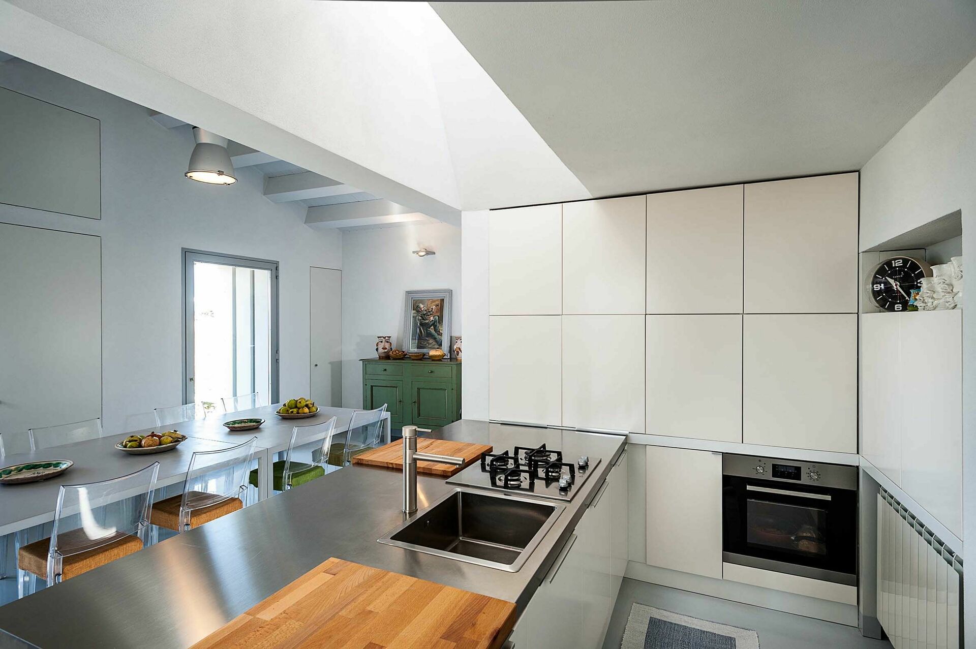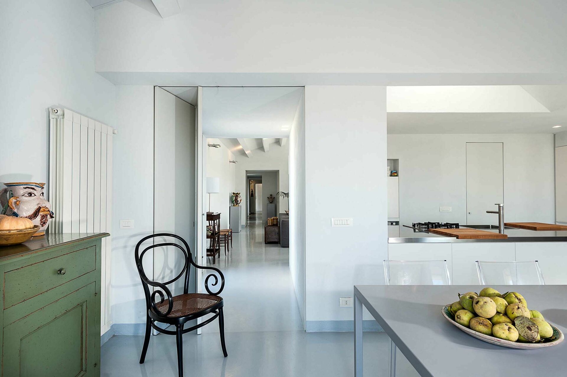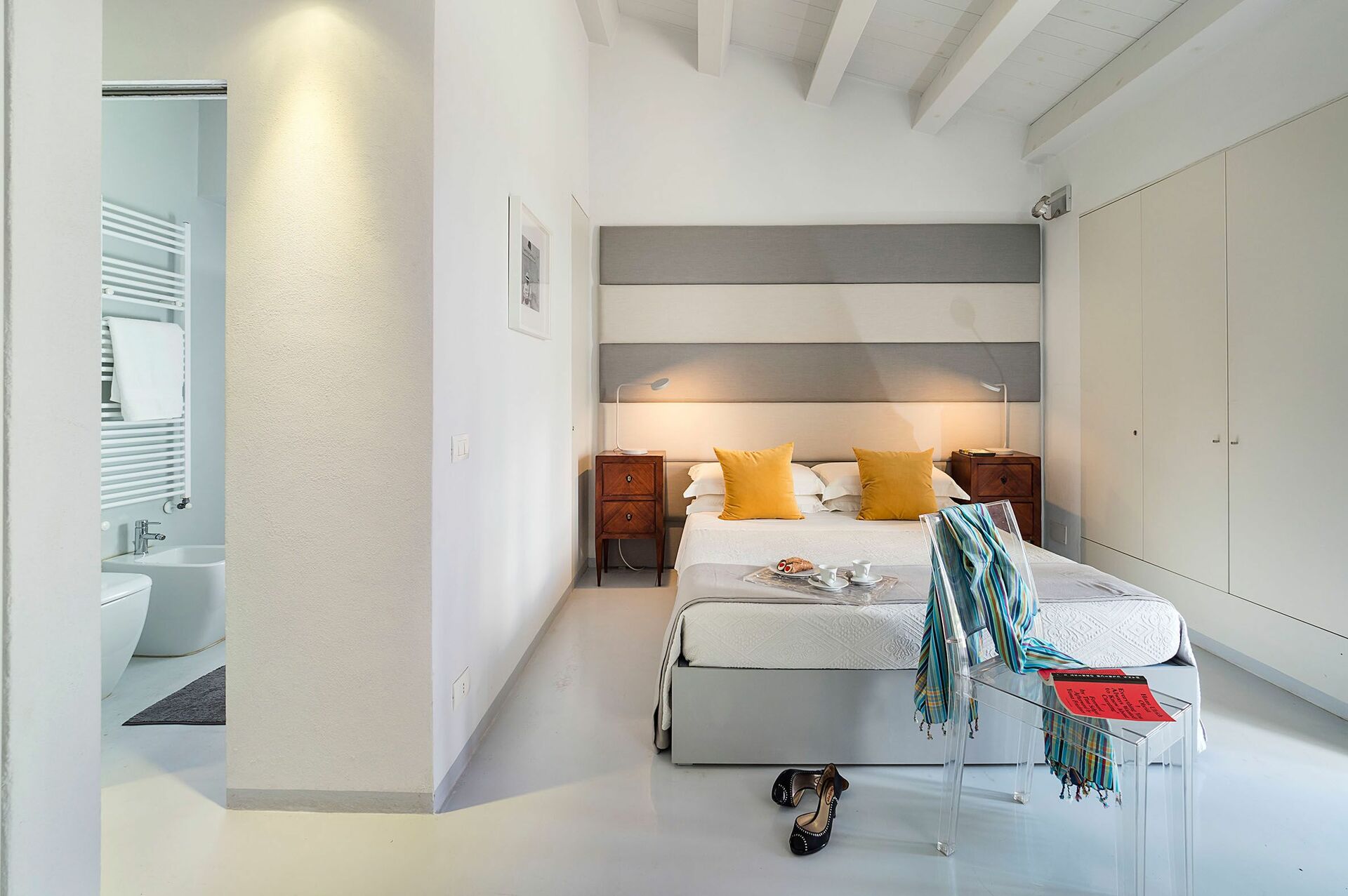 Semesterhuset är smakfullt inrett med en interiör som fokuserar på detaljer: det finns inslag av antikviteter, såväl som moderna designmöbler.