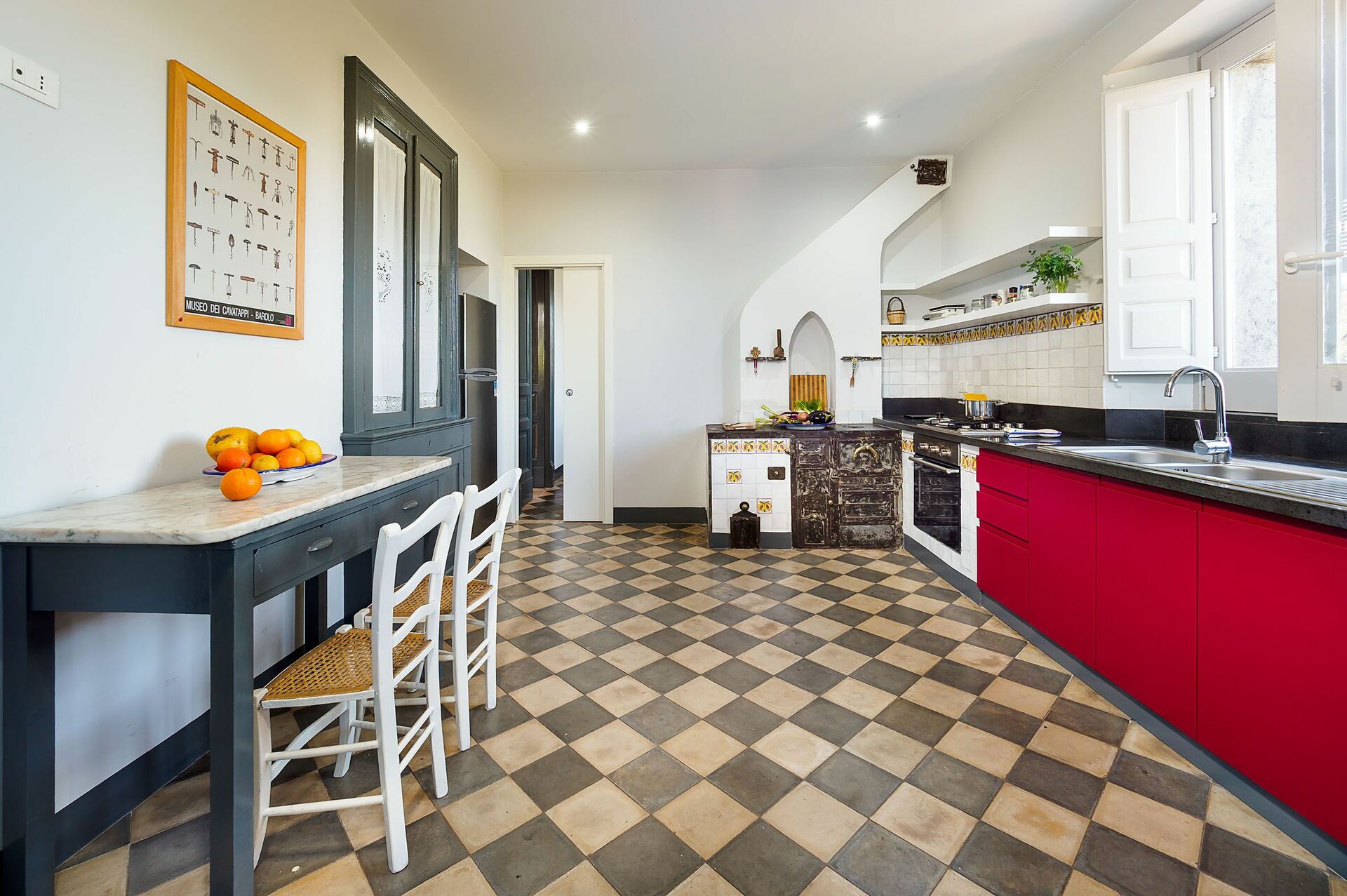 Huset har omsorgsfullt restaurerats och förts tillbaka till sin forna charm på ett sätt som frammanar en autentisk siciliansk atmosfär. Fastigheten består av två enheter: första våningen i huvudvillan med tillgång via en utomhustrappa och annexet.