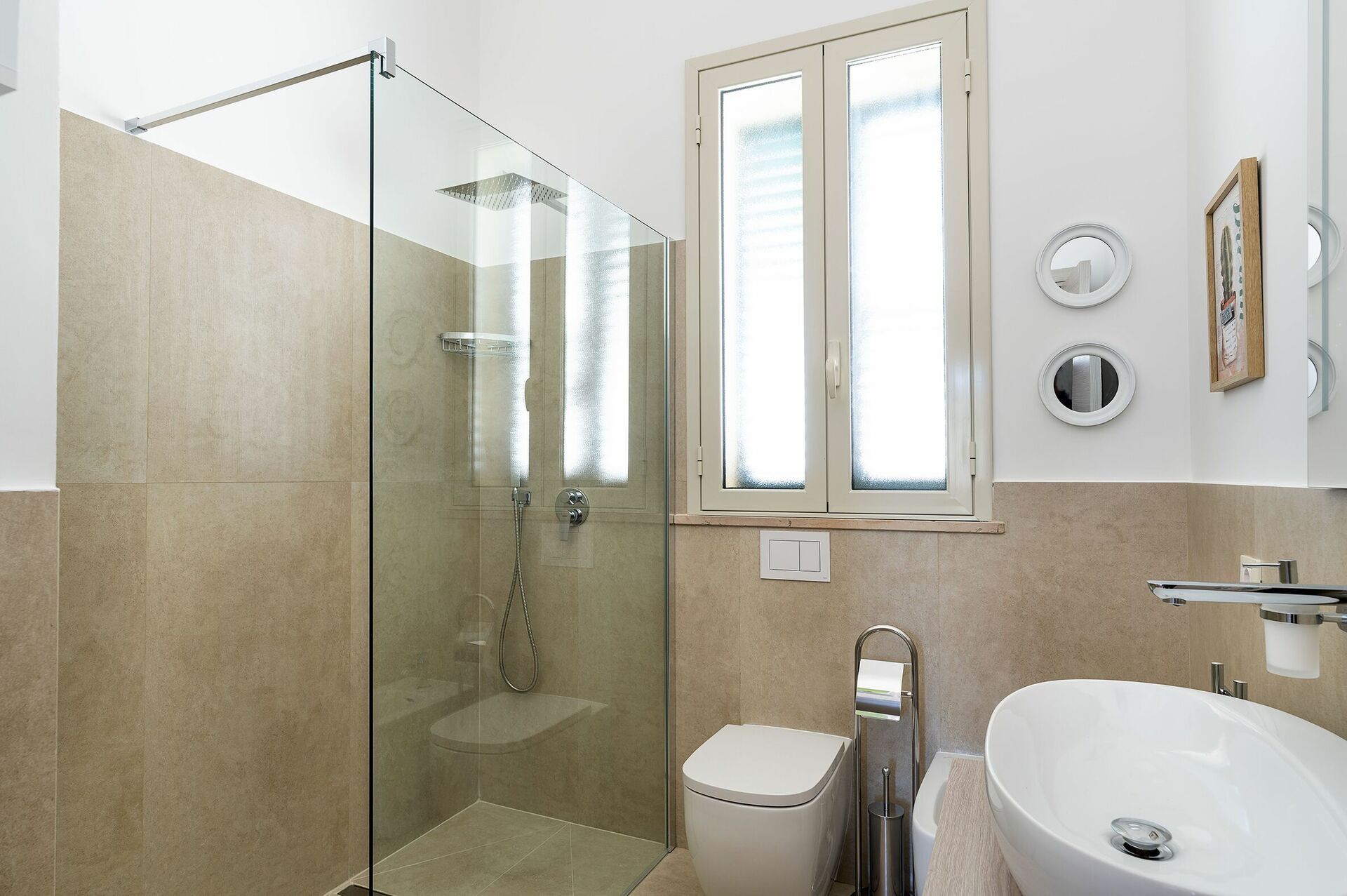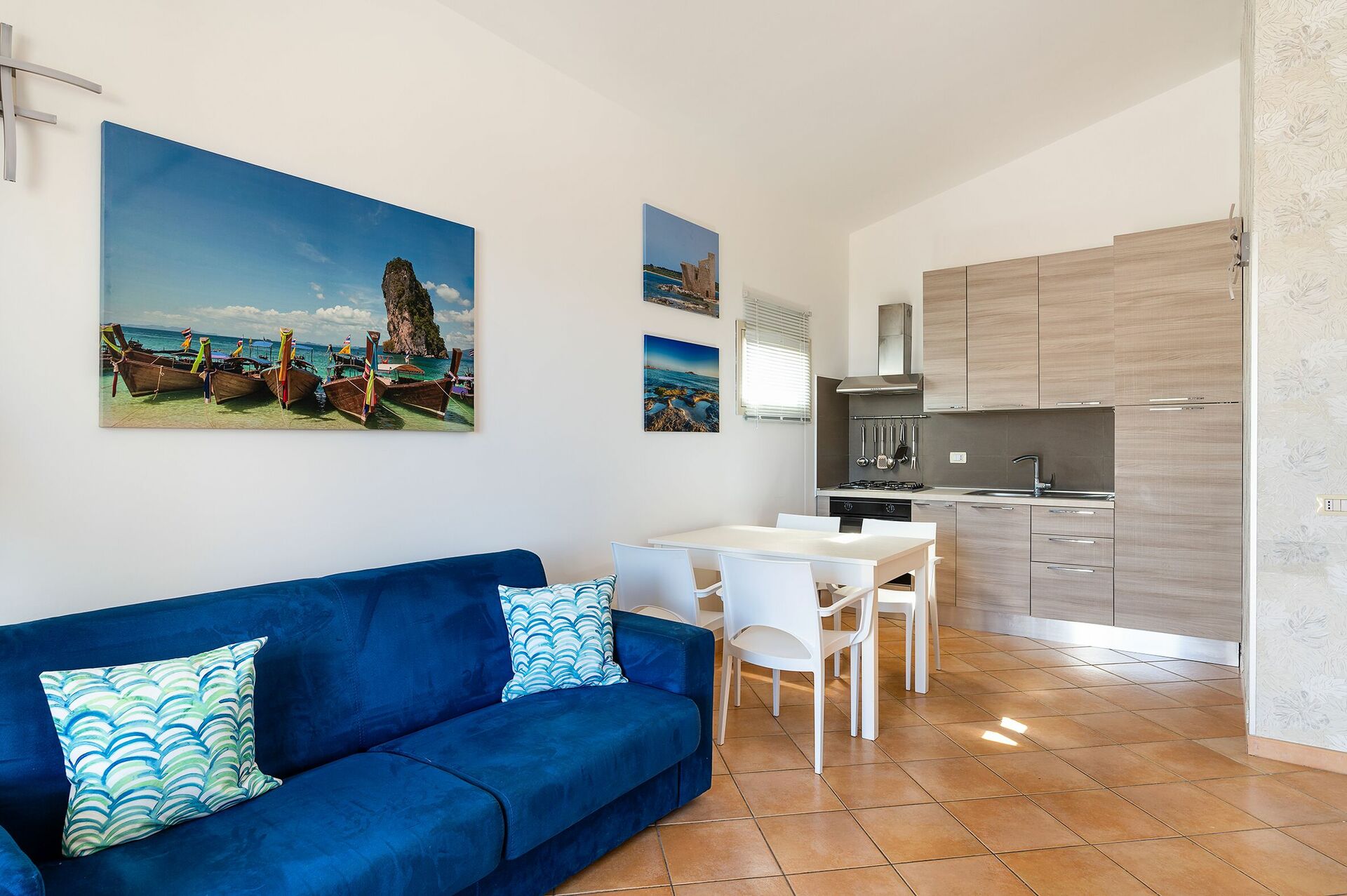 Första våningen: vardagsrum-kök med bäddsoffa; 2 dubbelrum; 1 badrum med dusch; veranda.