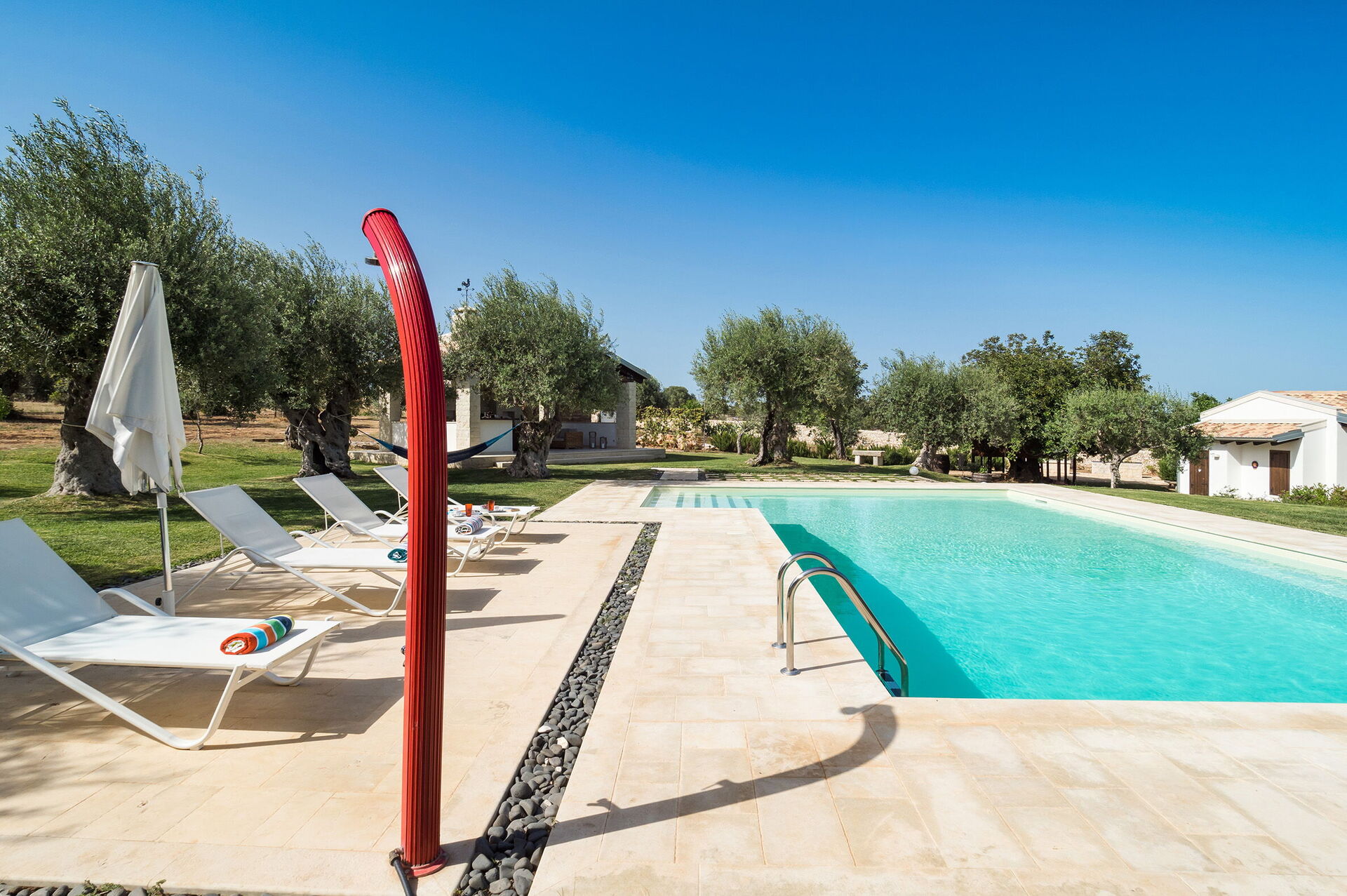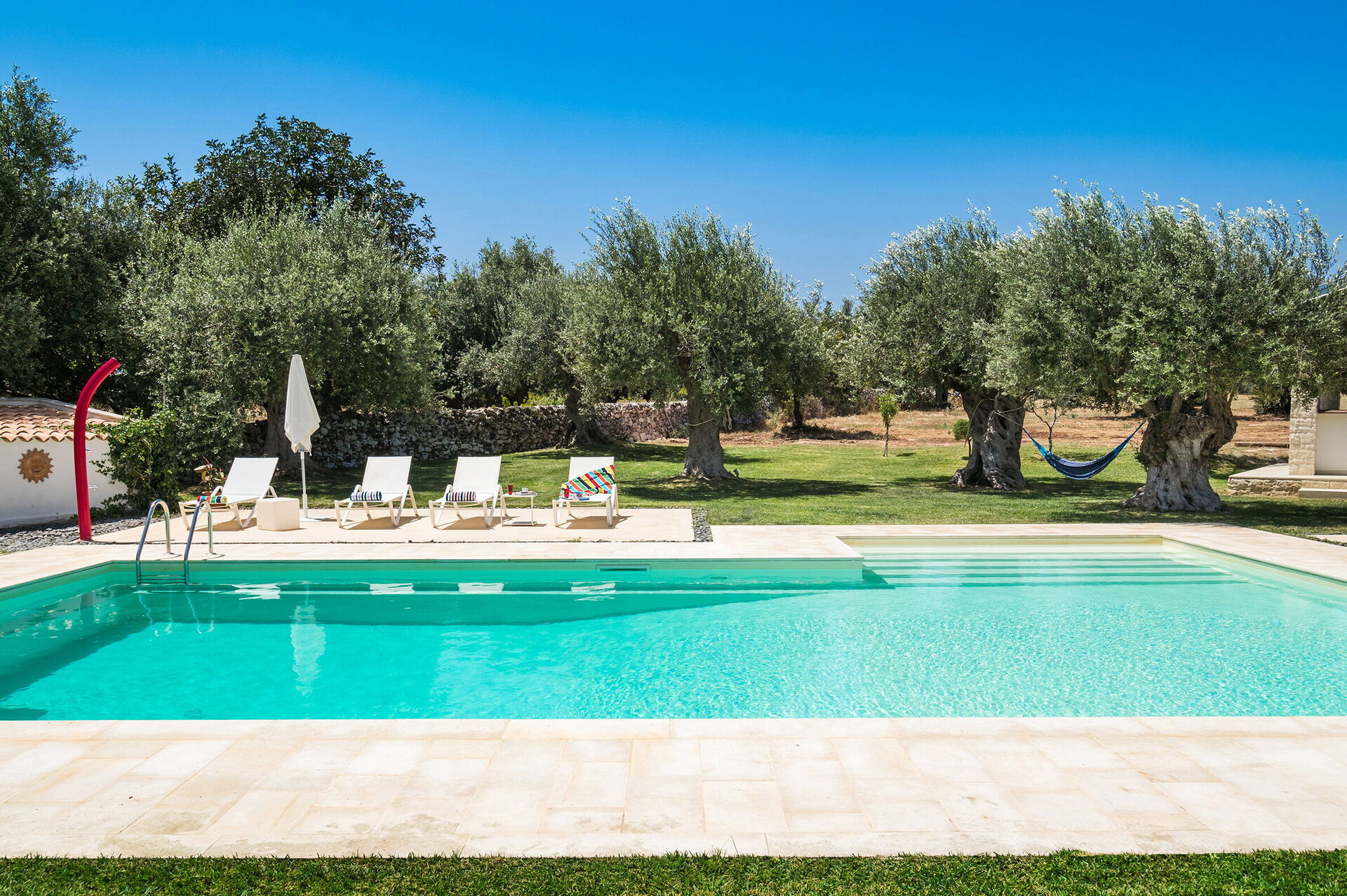 - Privat saltvattenpool (12 x 6 m; minsta djup: 1,10 m; maxdjup: 2,30 m)