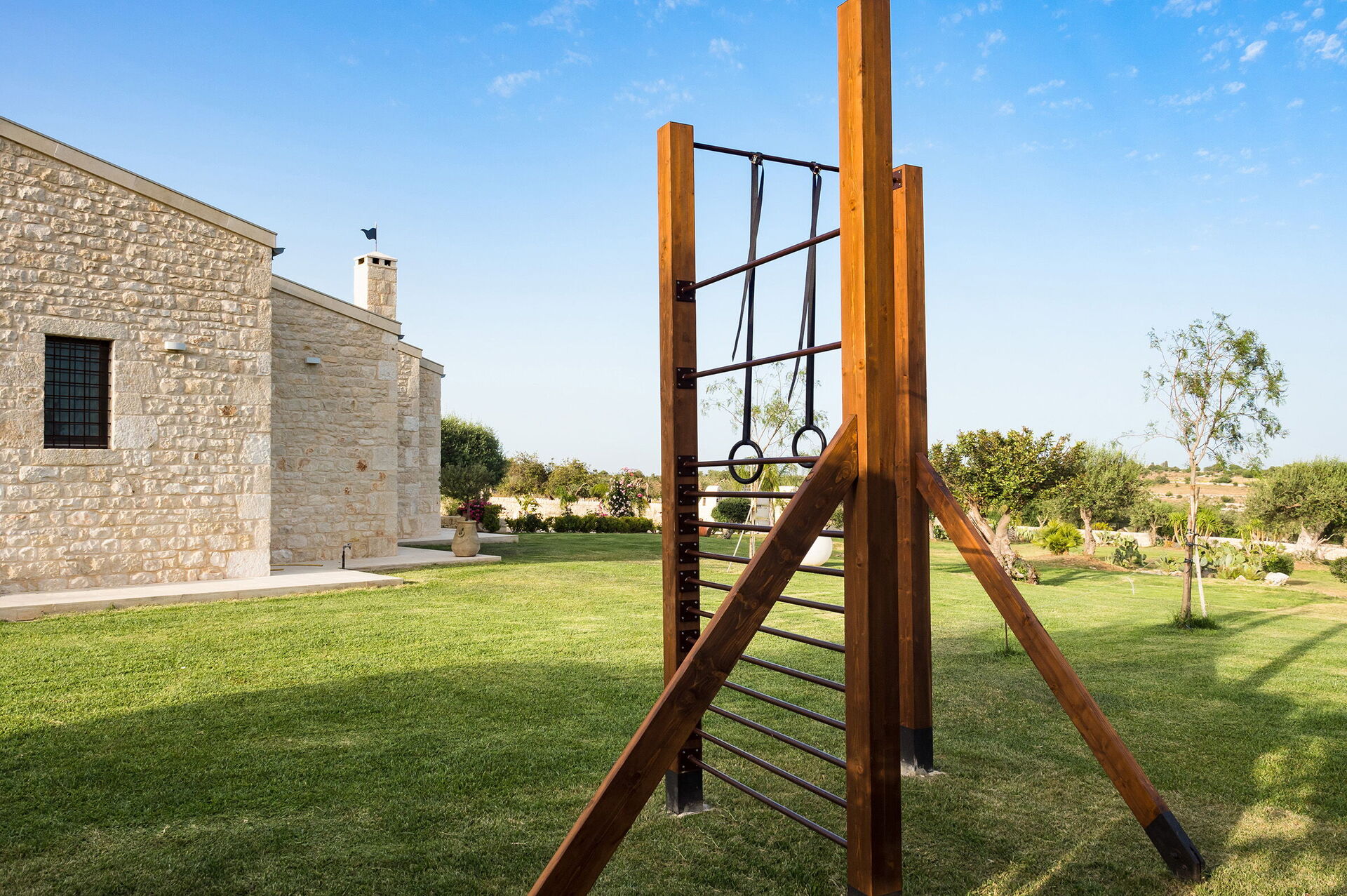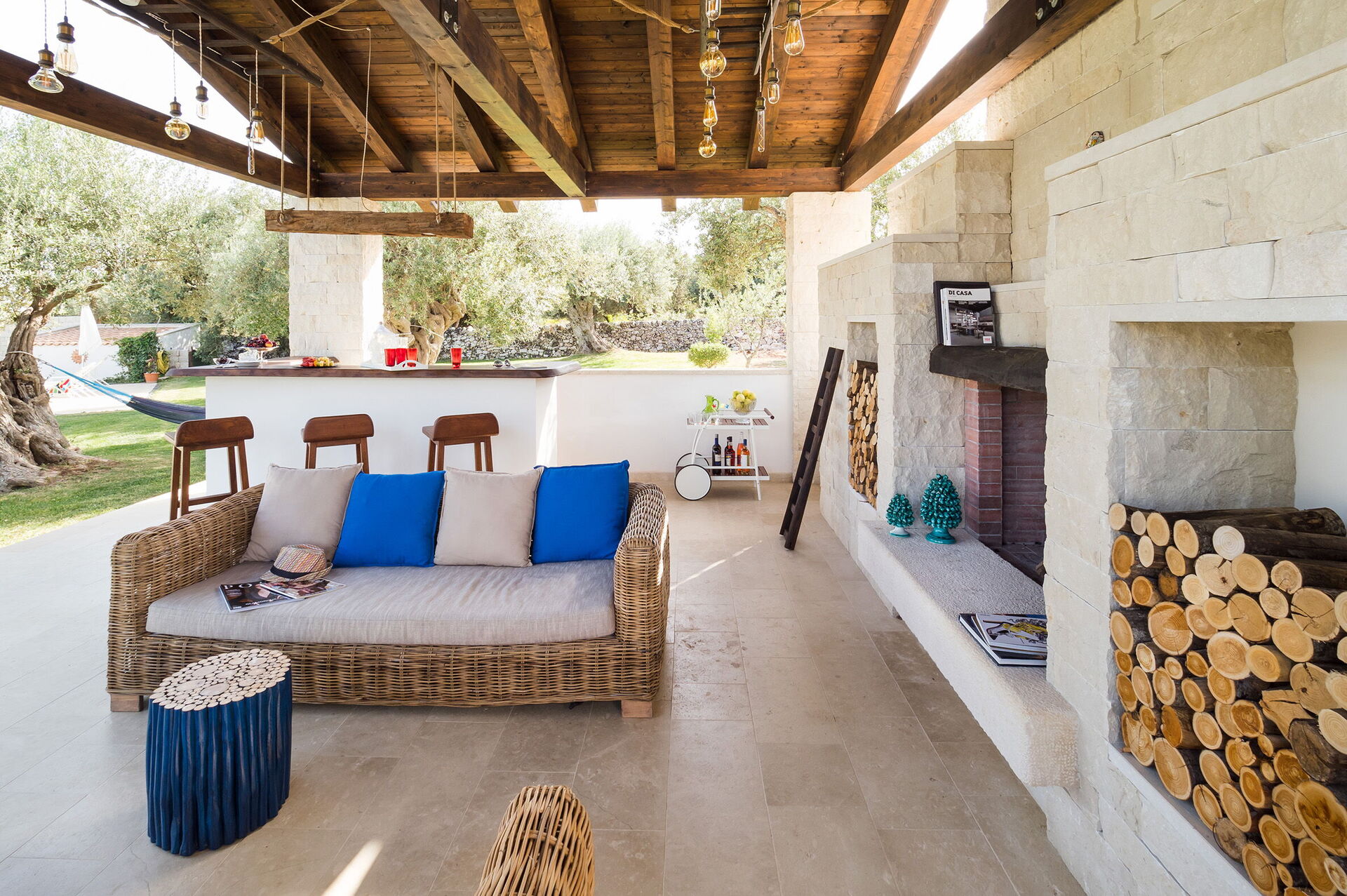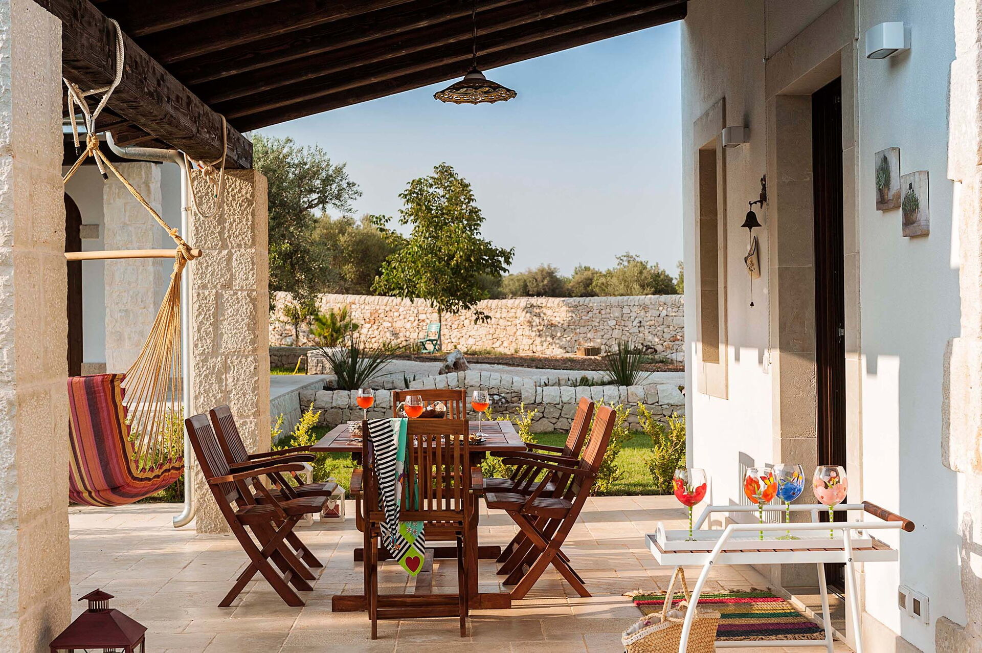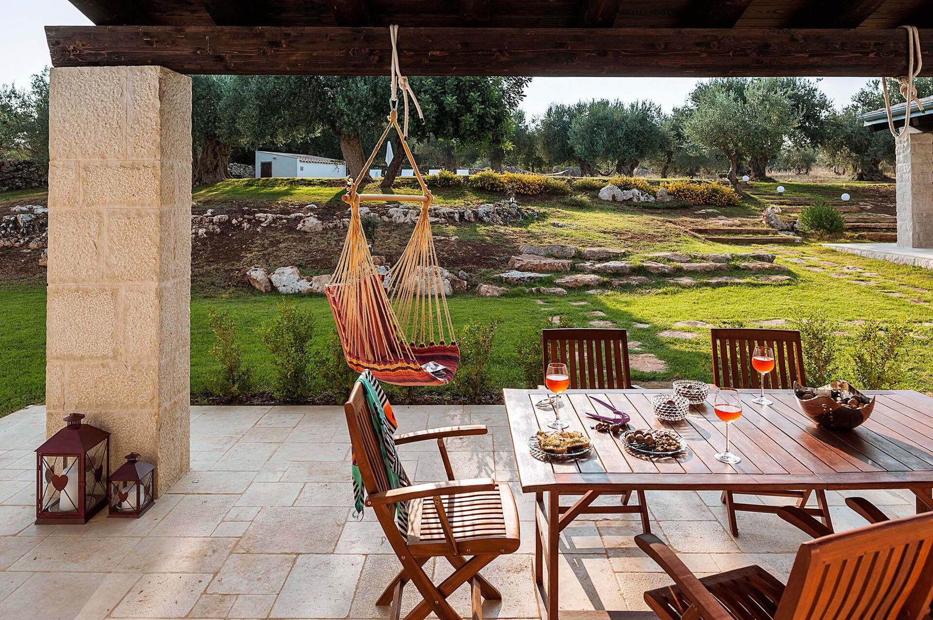 I trädgården finns gott om plats och ett öppet lusthus, med gott om sittplatser och en barhörna. Den idylliska terrassen är täckt och redo för utomhusmåltider.