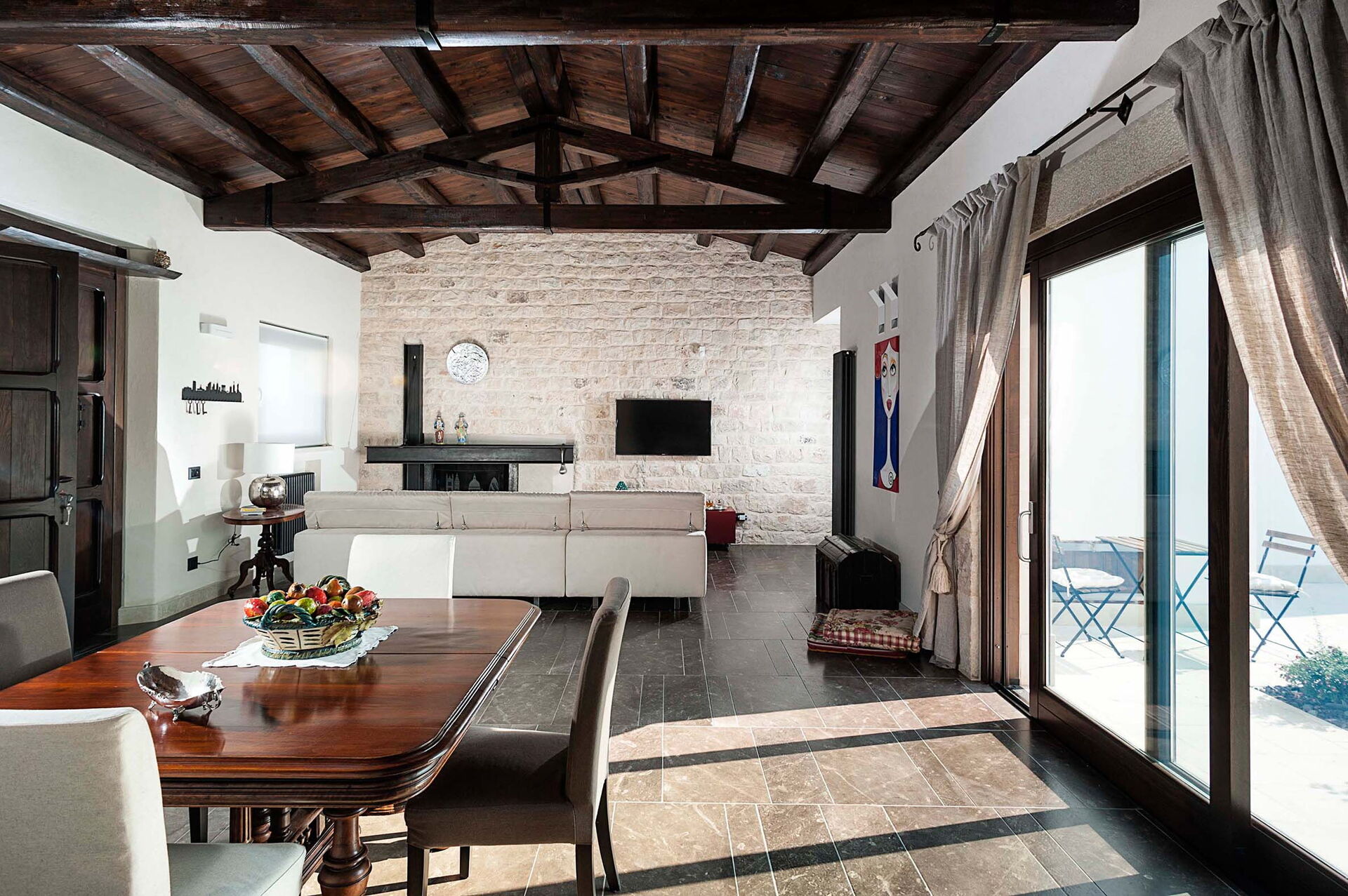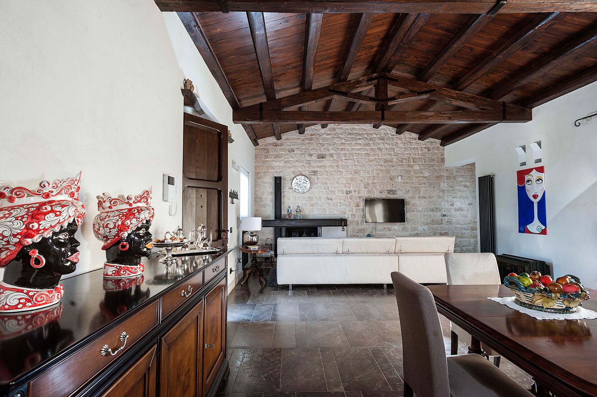 Semesterhuset består av en huvudenhet med 3 sovrum och ett annex (några meter bort) med ytterligare 2 sovrum: hela fastigheten rymmer upp till 10 personer.