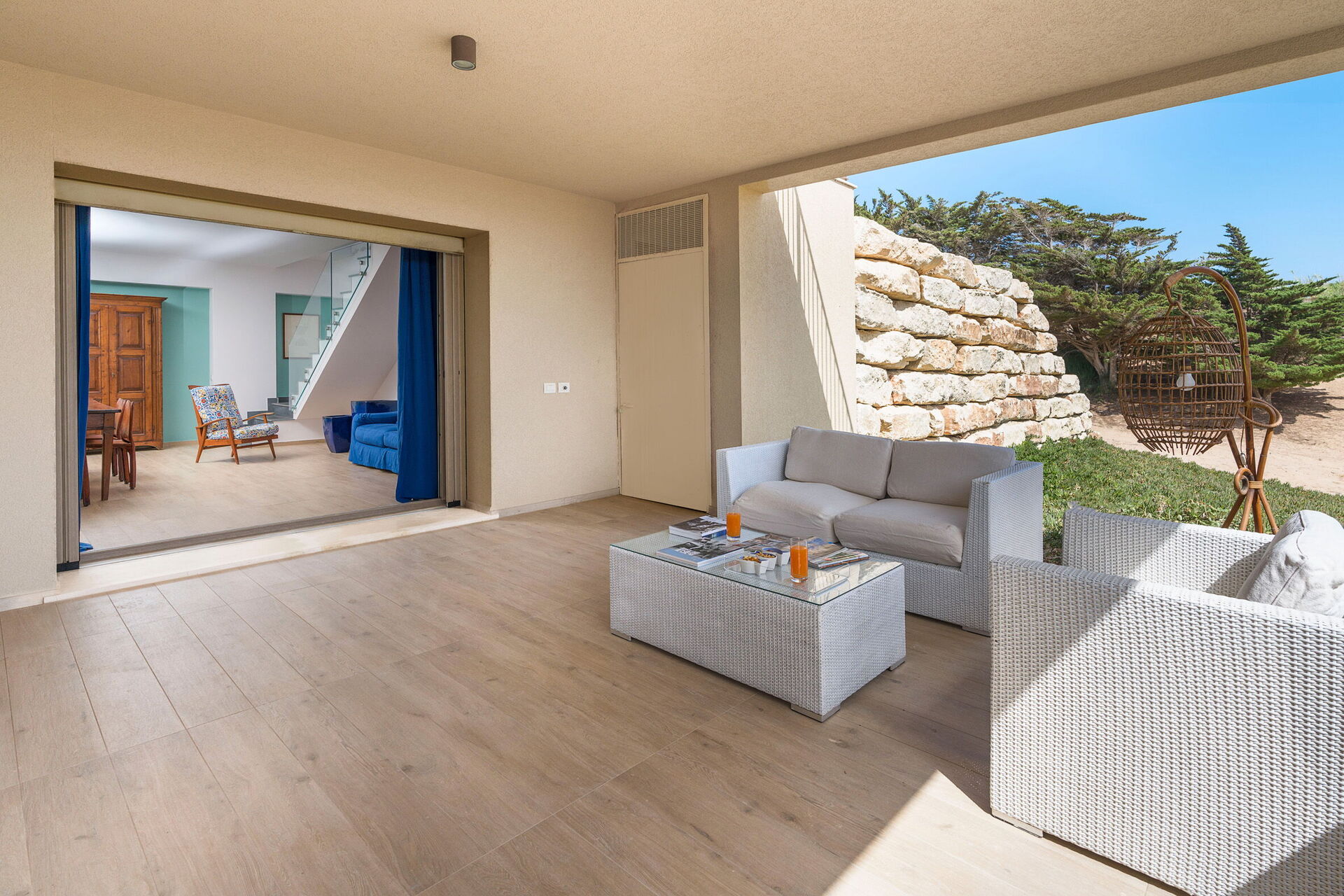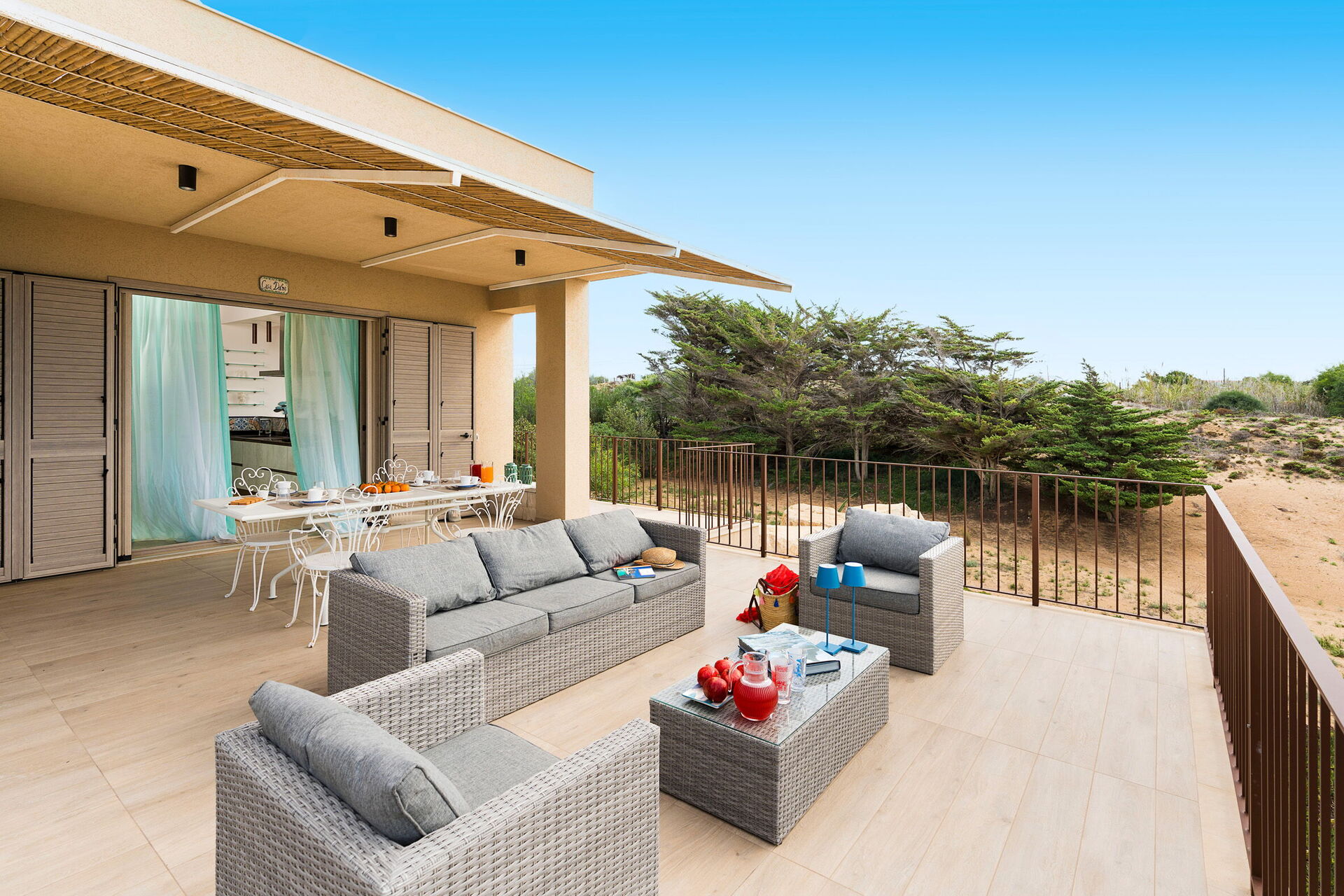 Fastigheten är omgiven av en naturlig oas som består av medelhavsbuskar, träd och stora mjuka sanddyner: allt detta gör Casa Dafne till den perfekta platsen för dem som vill tillbringa en strandsemester på Sicilien.