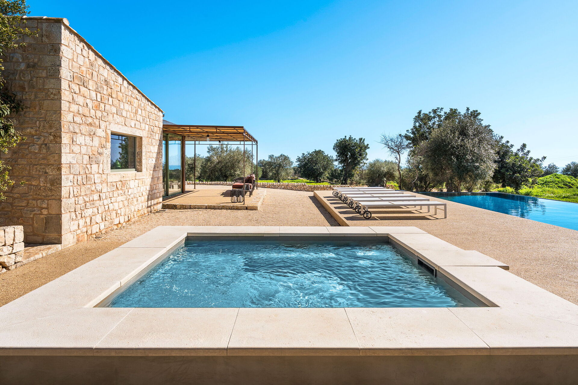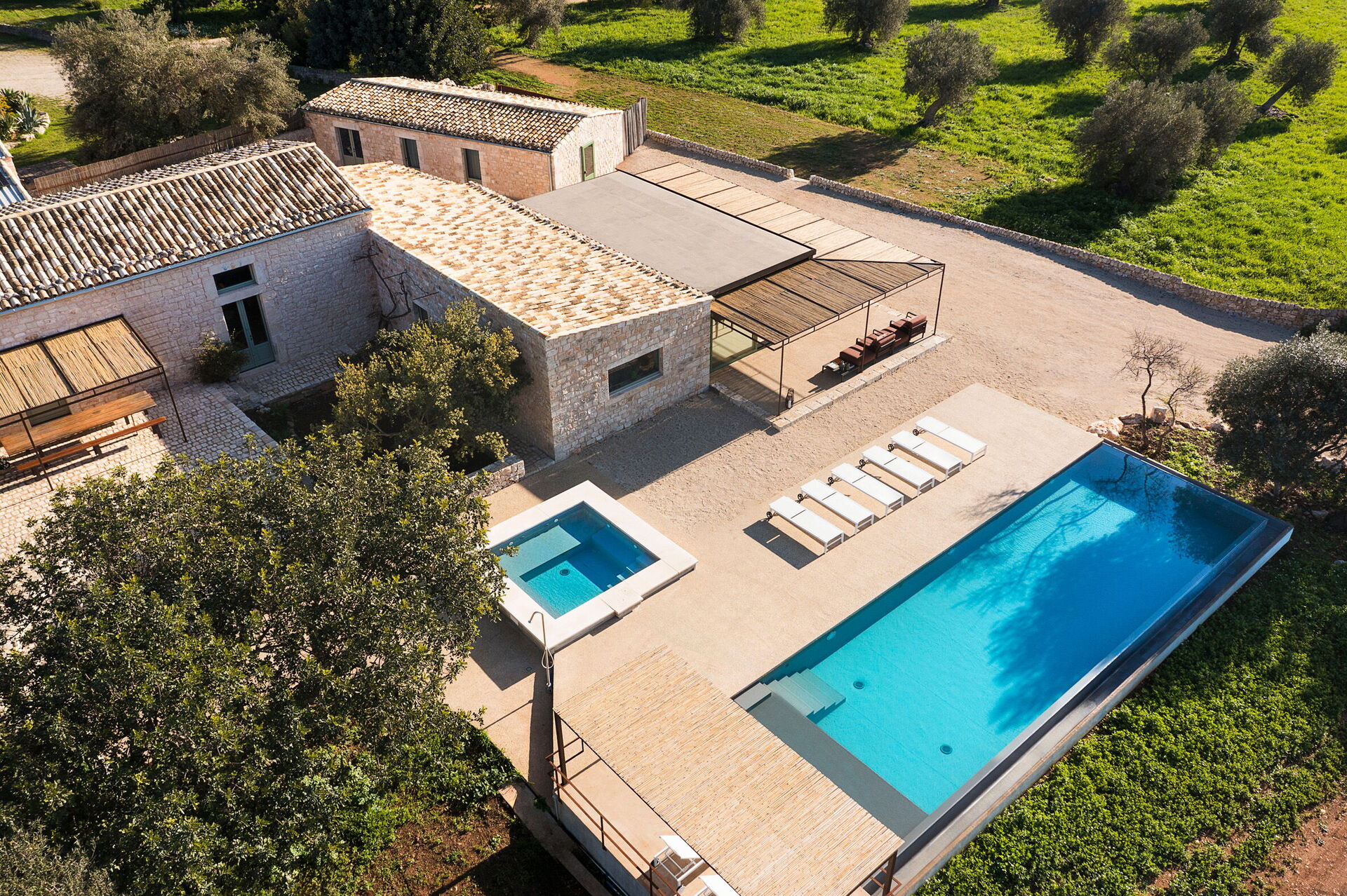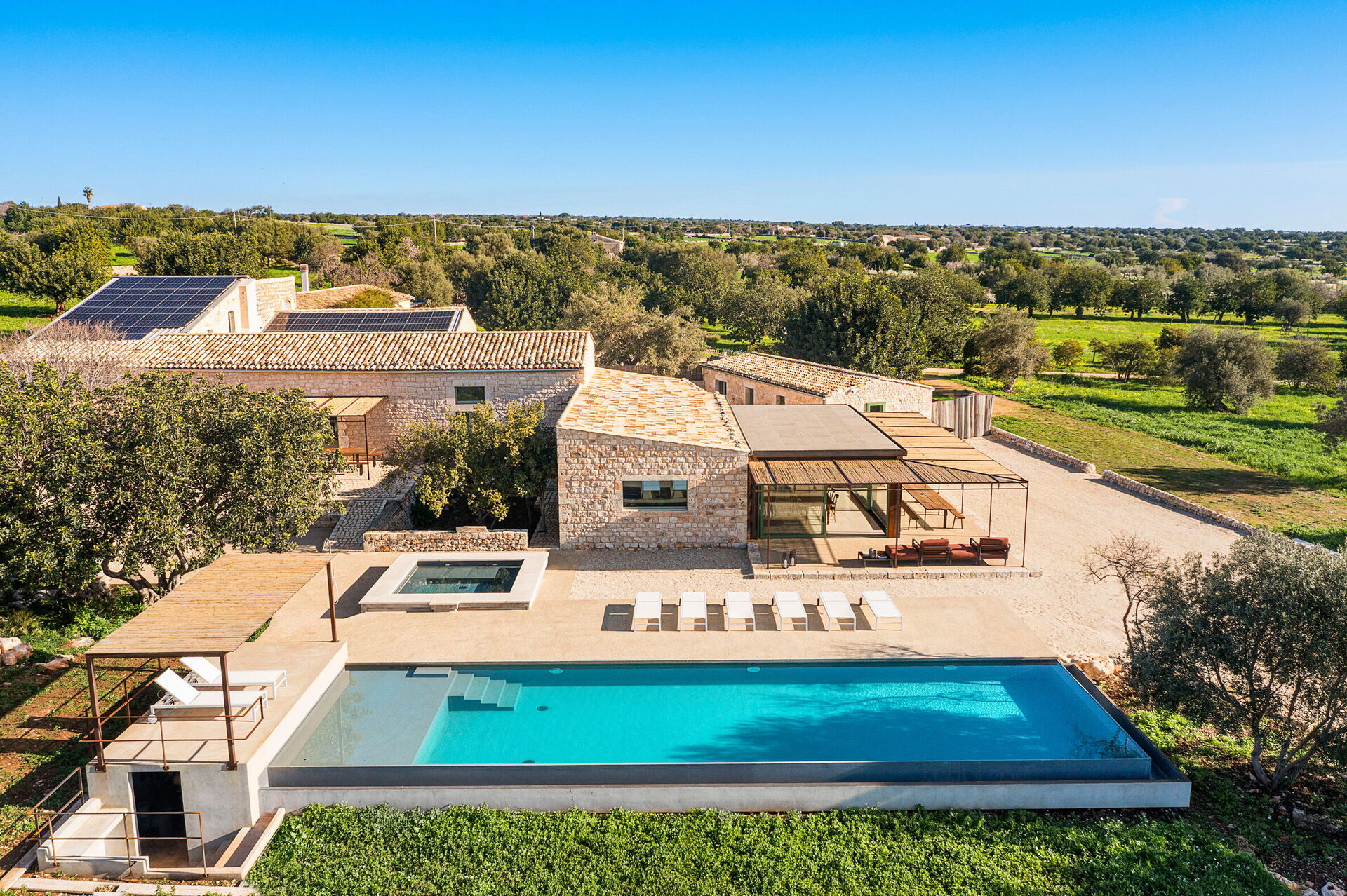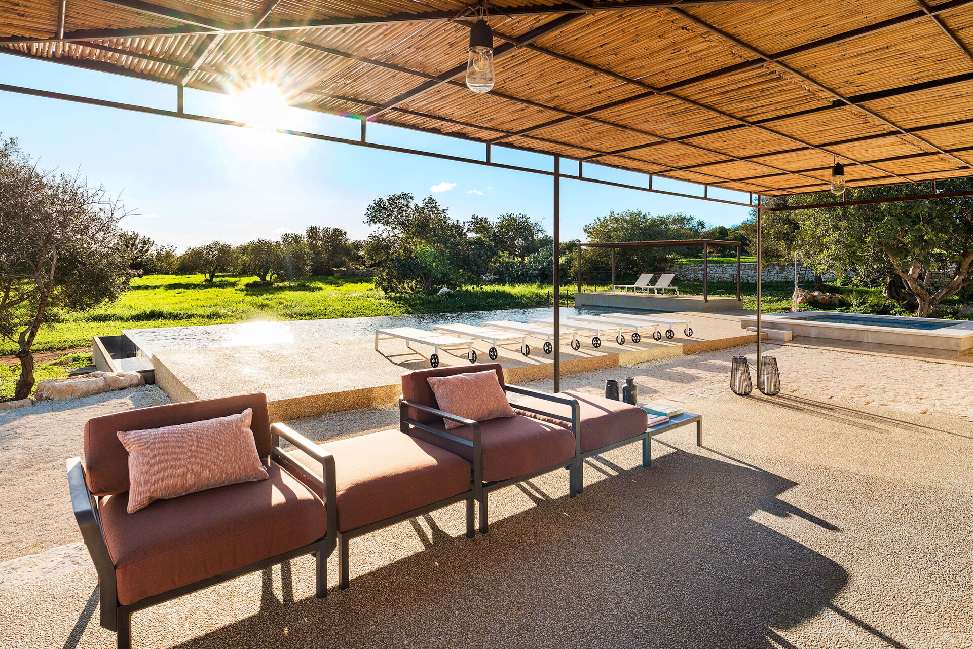 Fastigheten erbjuder många utomhusytor där gästerna kan tillbringa tid med familj eller vänner: äta utomhus, koppla av vid saltvattenpoolen eller på solstolen med jacuzzi, och njuta av oförglömliga stunder i natursköna omgivningar under den sicilianska solen.
