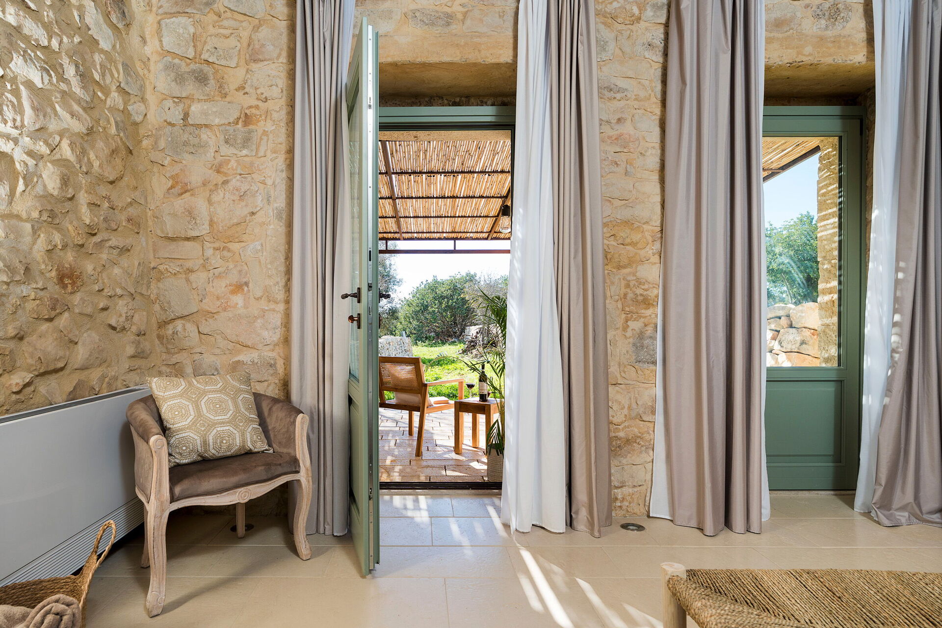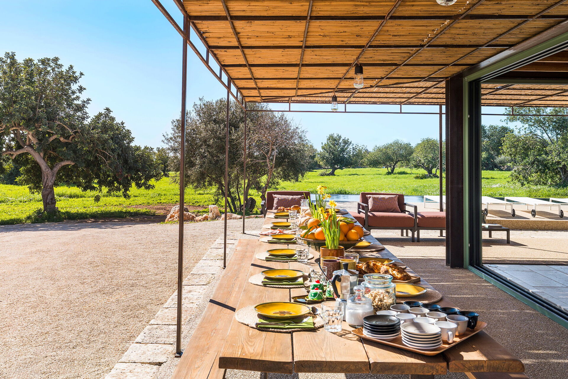 - uteplats med skugga från traditionella "cannizzi" (vassmattor)