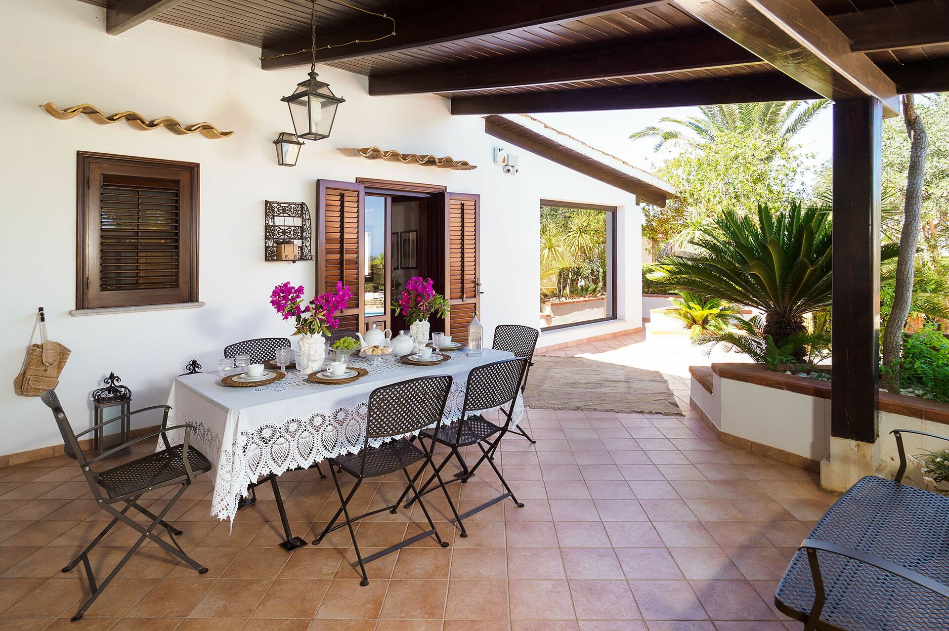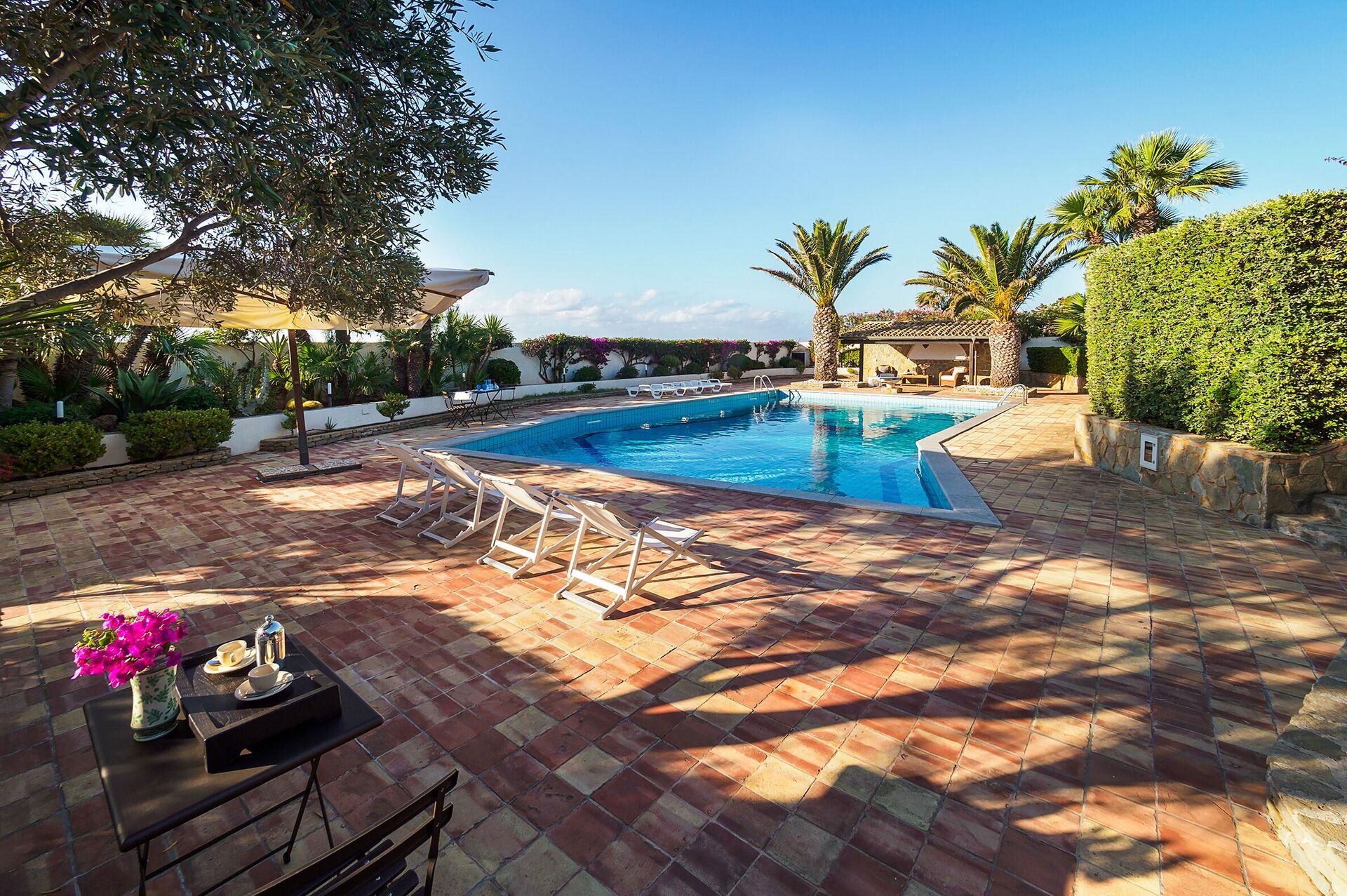 Huset har en välskött frodig trädgård, en härlig pool med solstolar och rymliga välutrustade terrasser (grillplats och matplats), perfekt för frukost eller andra utomhus måltider.
