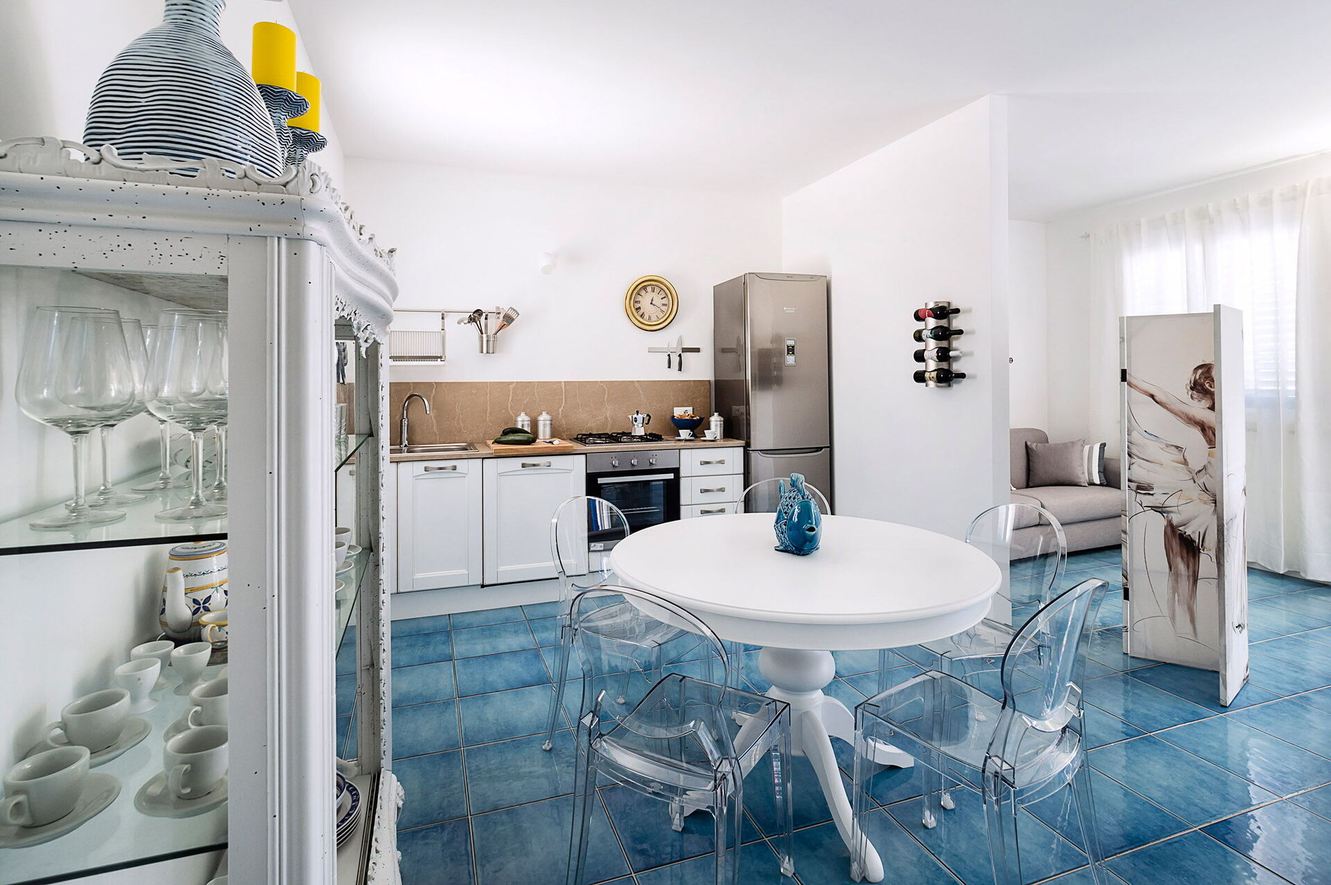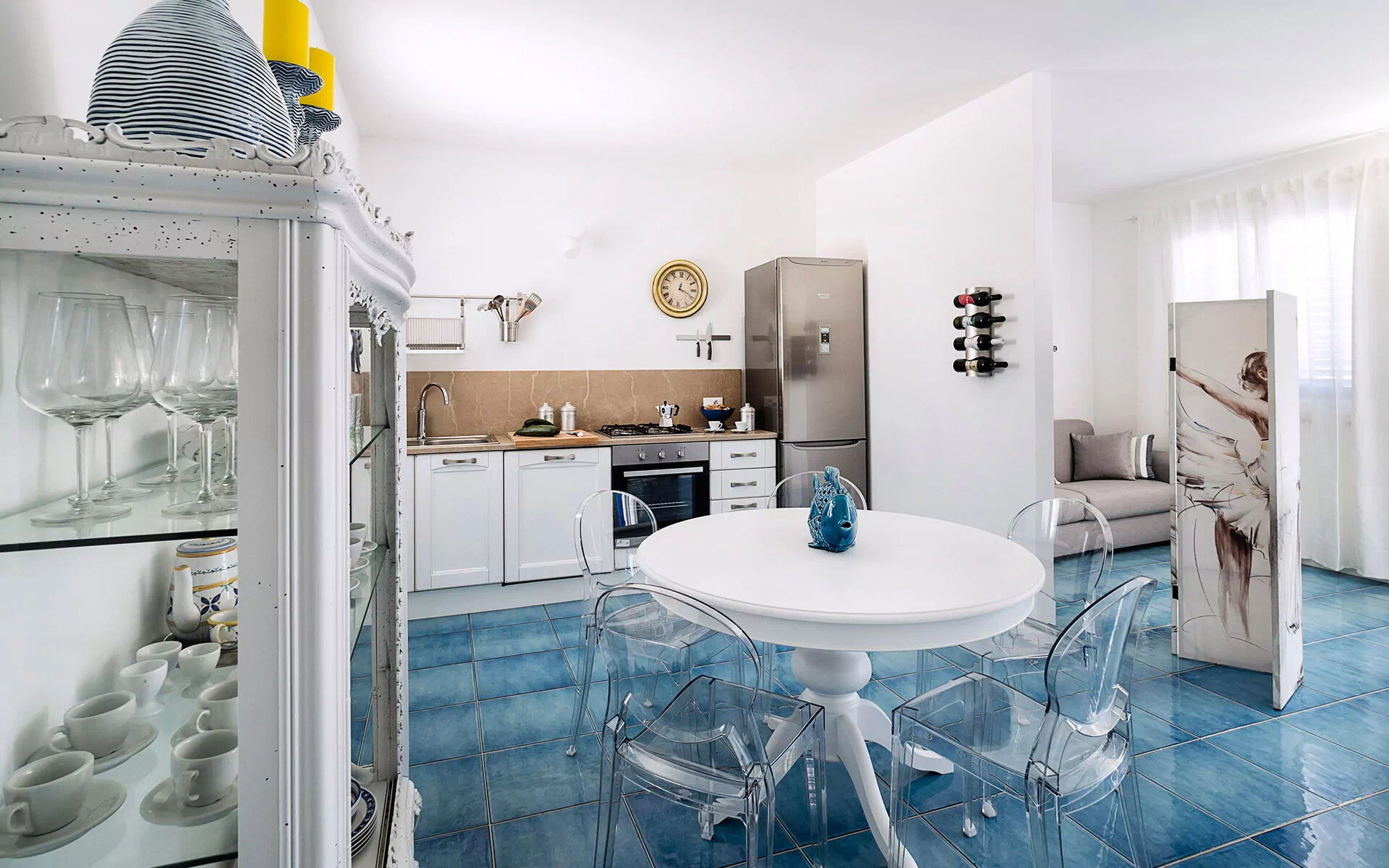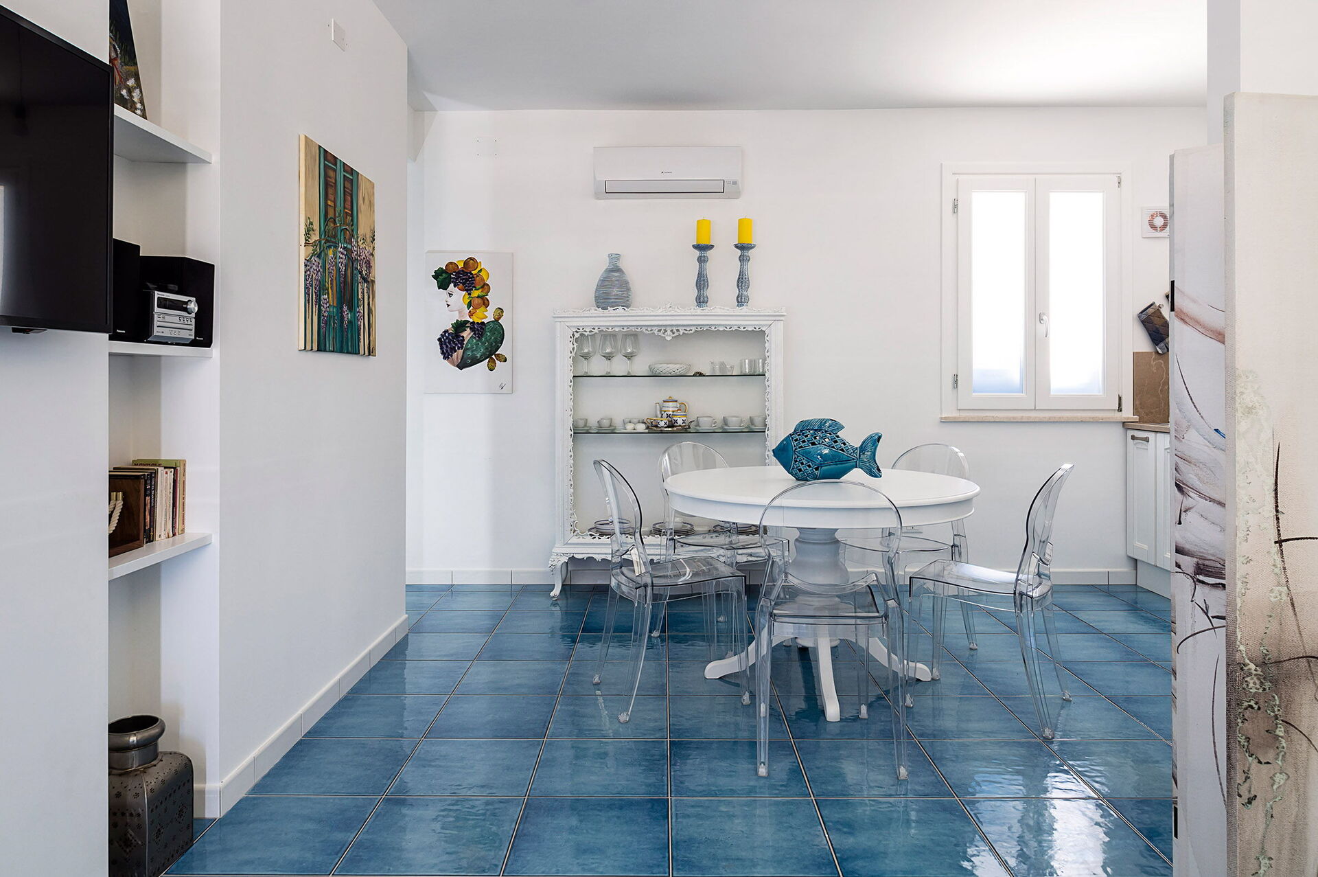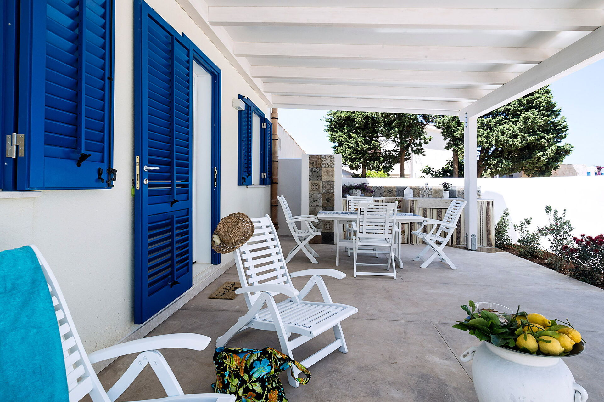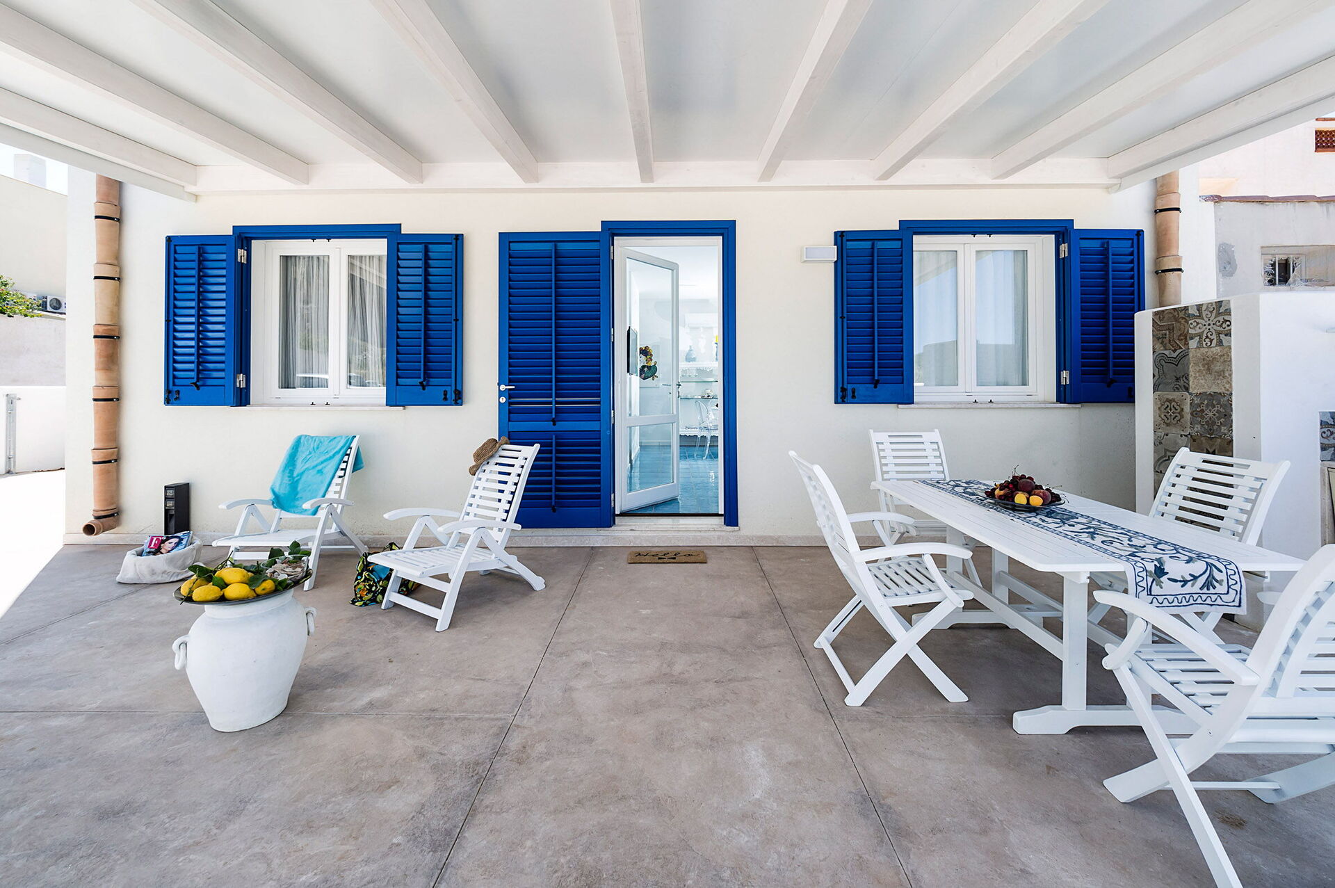 Vardagsrum med enkel bäddsoffa (luftkonditionering, TV) och kök (spishäll, ugn, kyl, frys, diskmaskin, mikrovågsugn, brödrost, espressomaskin) med matplats, 1 dubbelrum (luftkonditionering, myggnät) med privat badrum med dusch, 1 tvåbäddsrum, (luftkonditionering, myggnät), badrum med dusch.