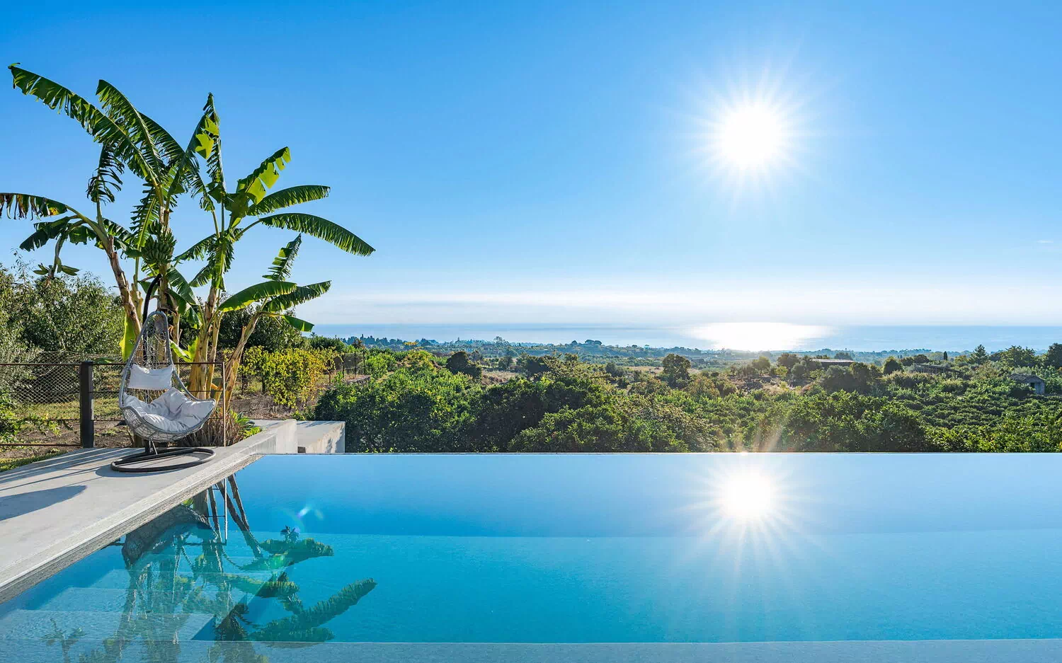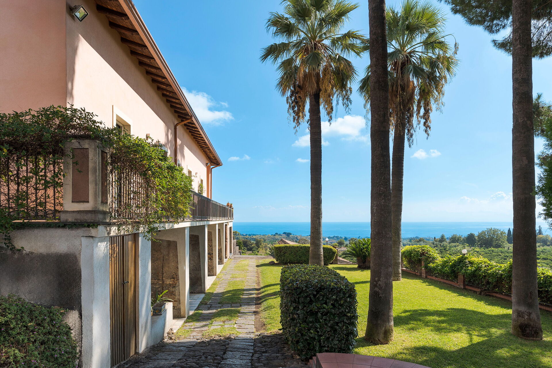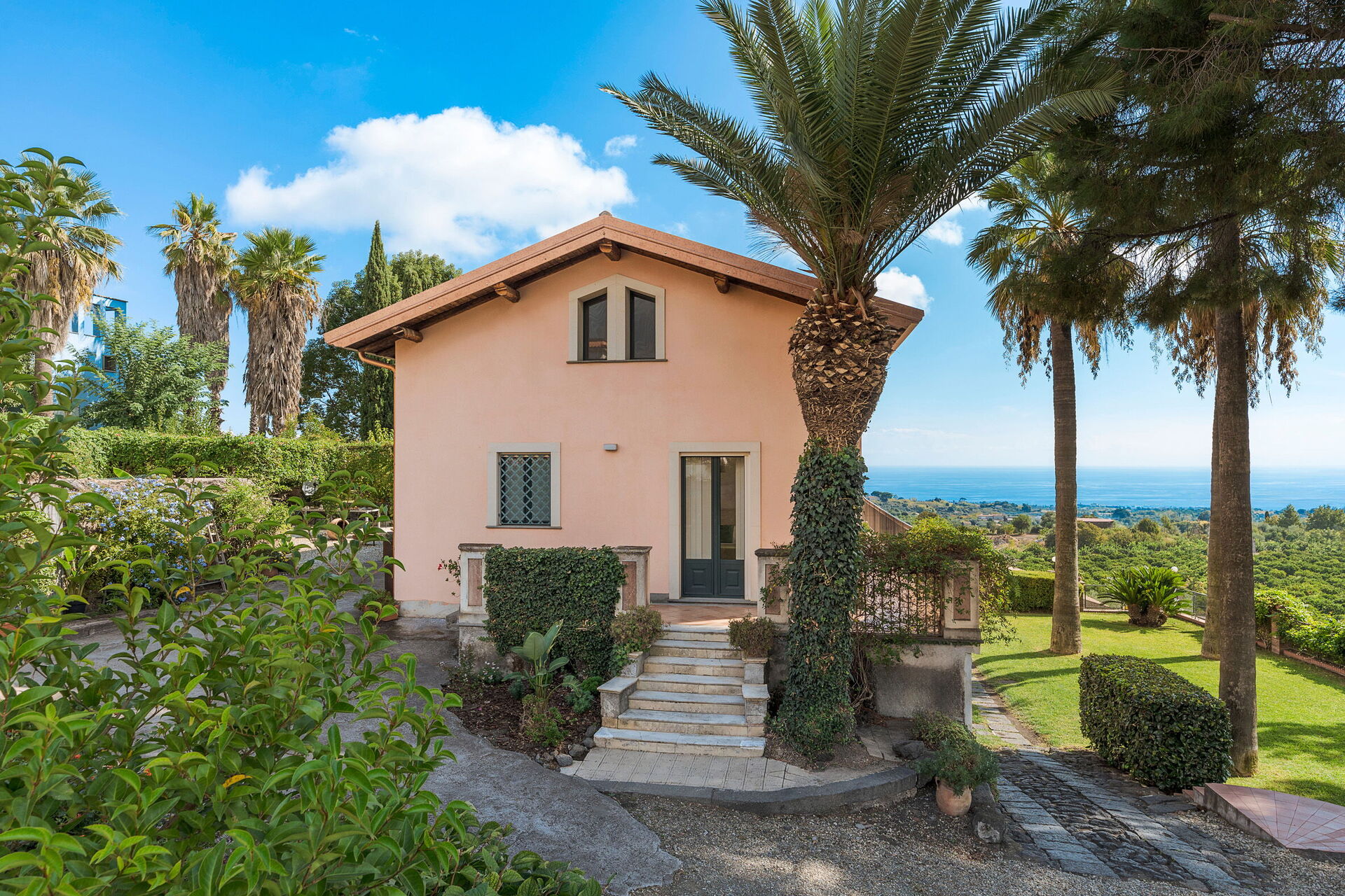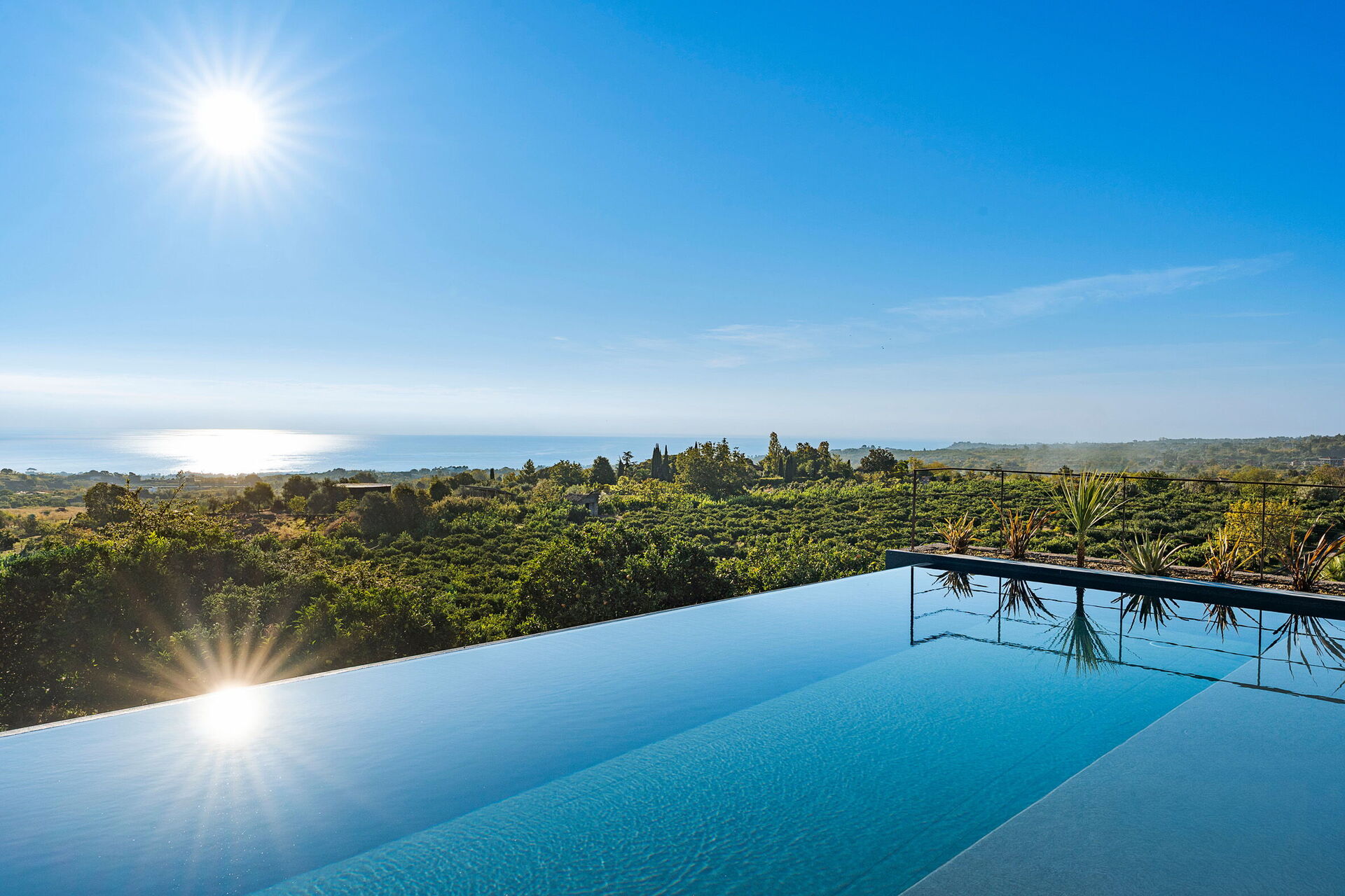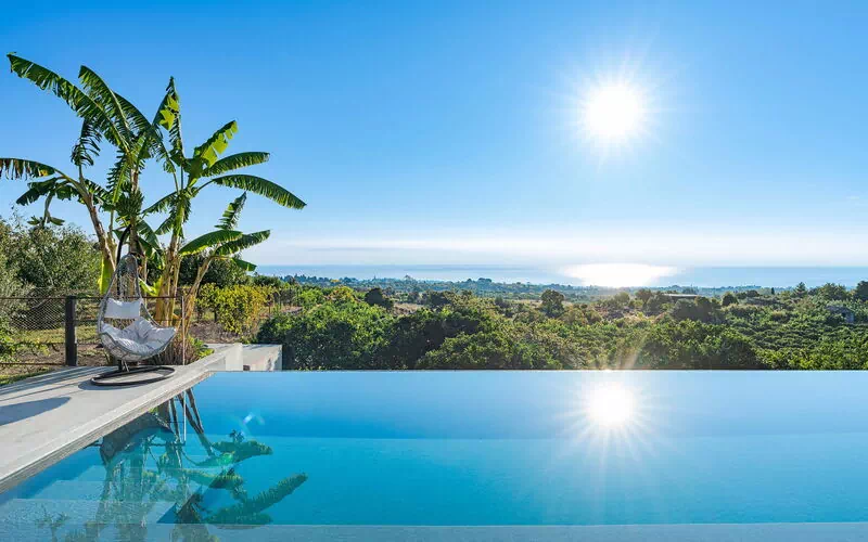 Denna magnifika villa vetter mot en frodig och välskött trädgård med aromatiska växter och palmer. I trädgården finns en vacker infinitypool med saltvatten och panoramautsikt, samt stora möblerade terrasser där gästerna kan tillbringa oförglömliga stunder under den sicilianska solen.