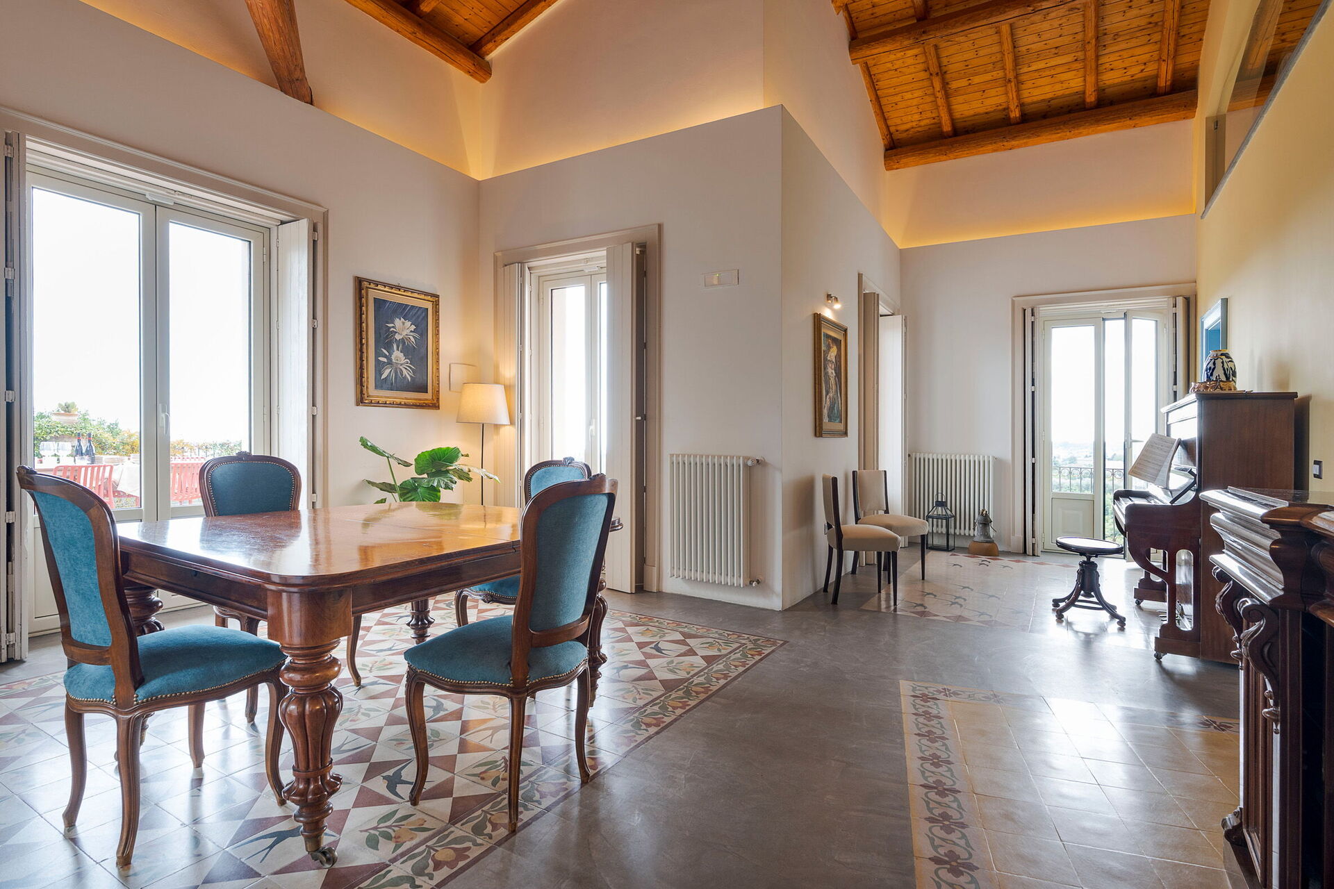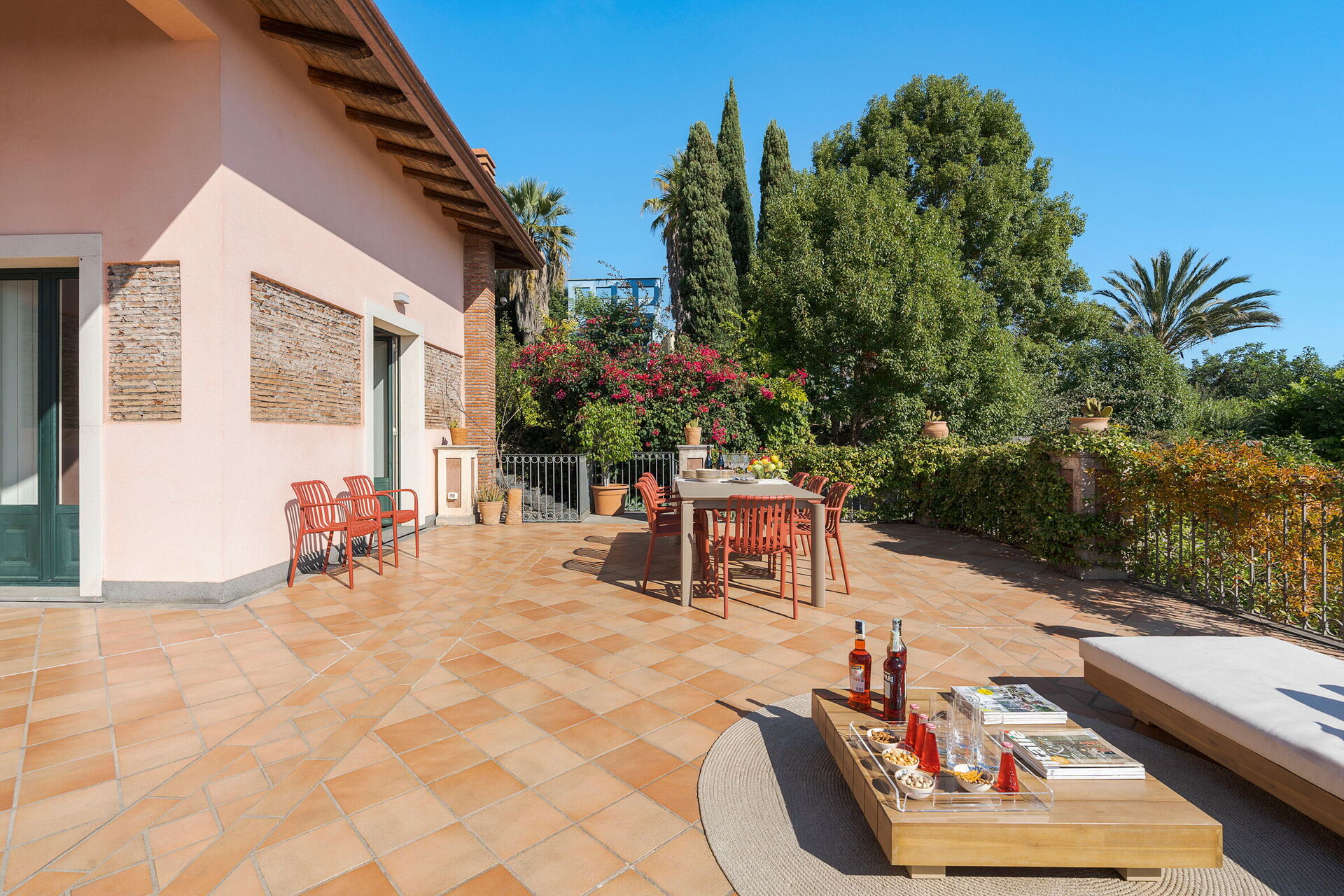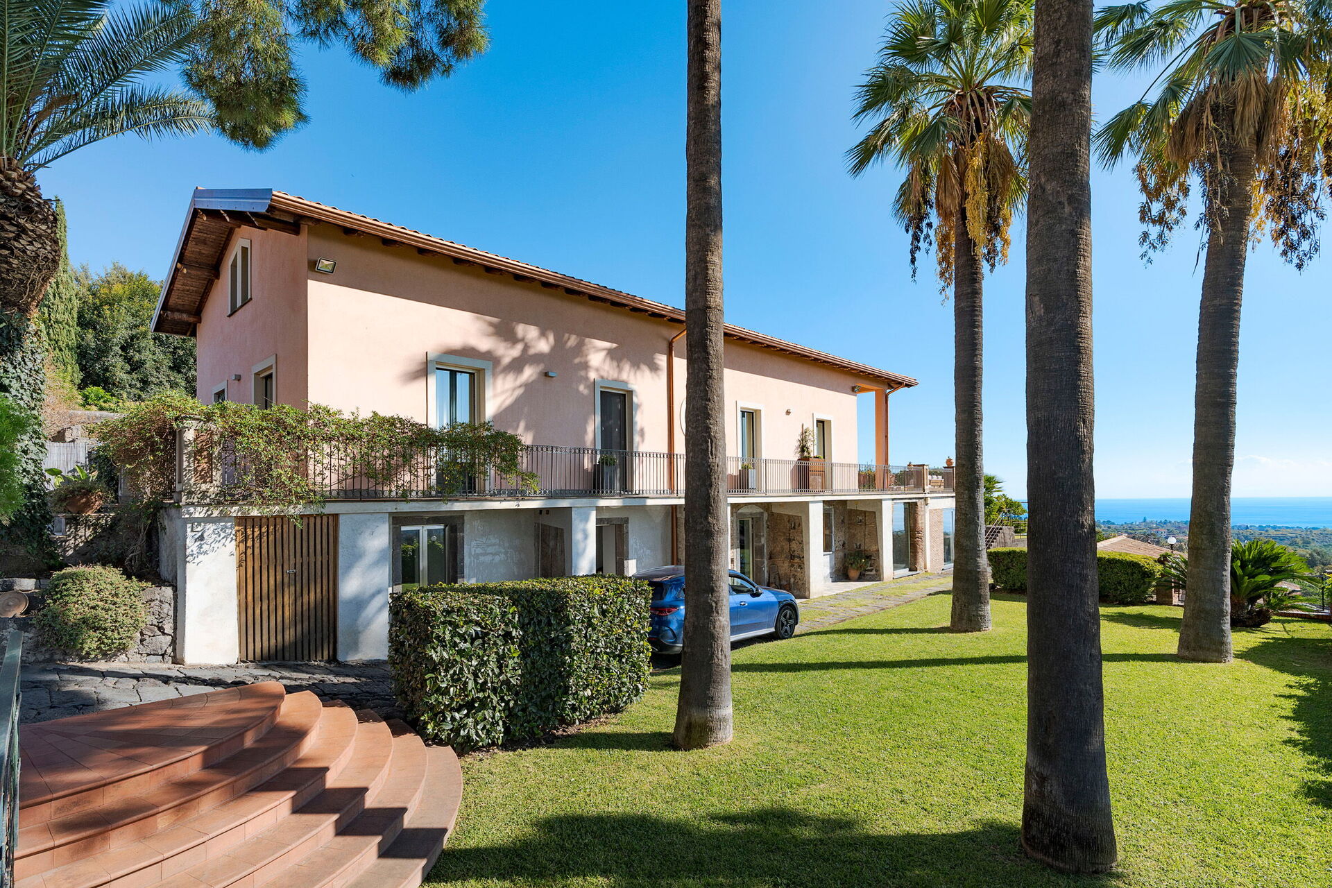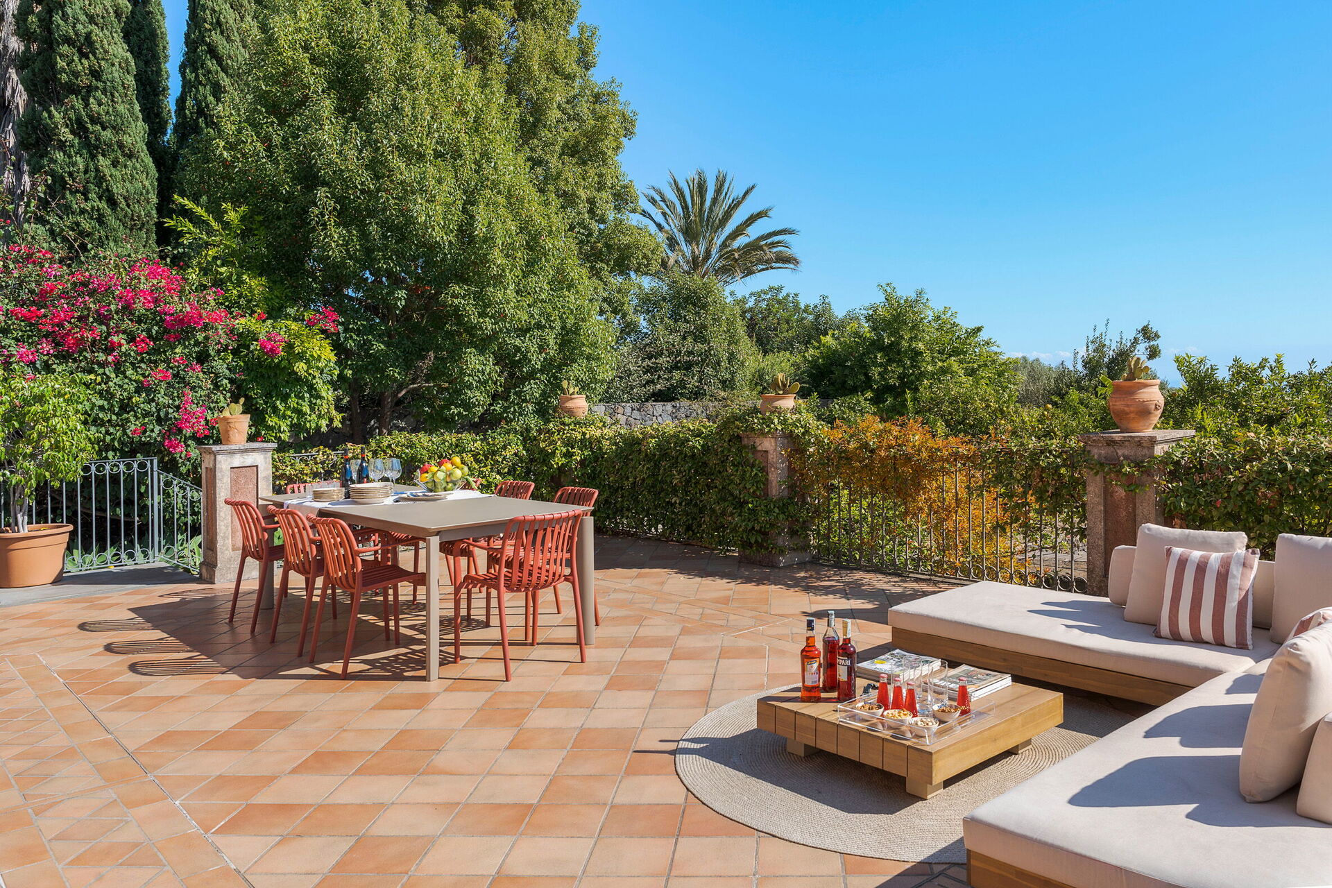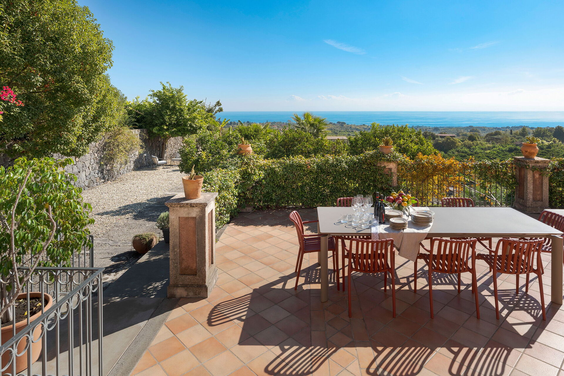 Denna magnifika villa vetter mot en frodig och välskött trädgård med aromatiska växter och palmer. I trädgården finns en vacker infinitypool med saltvatten och panoramautsikt, samt stora möblerade terrasser där gästerna kan tillbringa oförglömliga stunder under den sicilianska solen.