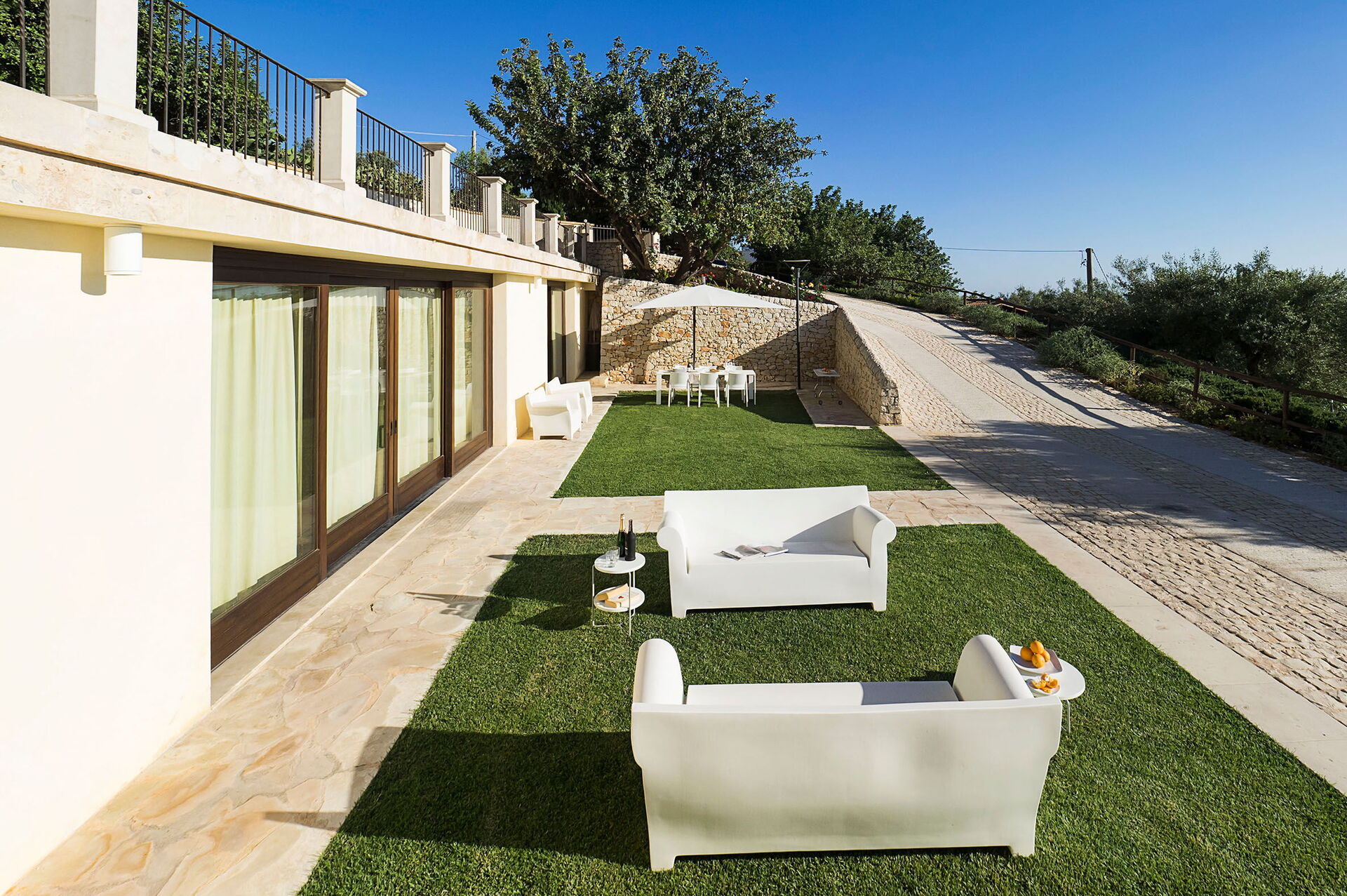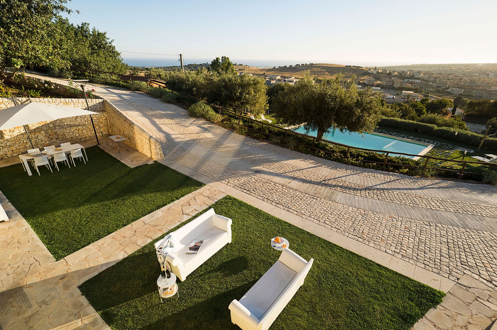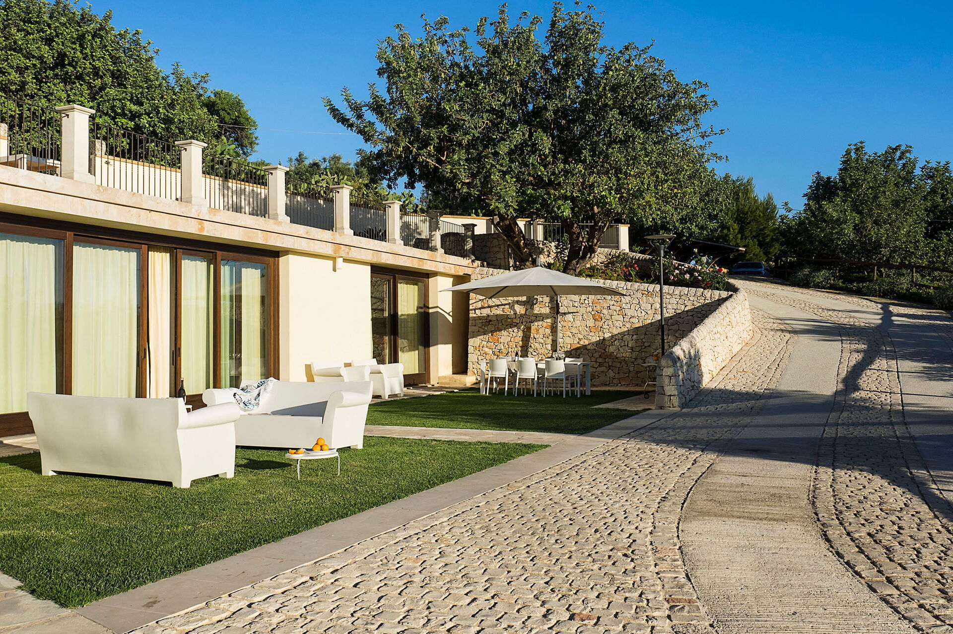 Huset erbjuder gästerna en privat pool och ett litet hälsocenter. Den ligger intill Scicli, en historisk barockstad på Sicilien som finns med på UNESCO:s världsarvslista. Fastigheten är belägen i karakteristisk siciliansk natur: olivträd, johannesbrödträd och vita stenväggar pryder och lyfter fram omgivningens skönhet. Detta vackra 3-våningshus på Sicilien har nyligen renoverats och erbjuder moderna faciliteter. Interiören är inbjudande med moderna designmöbler. Utanför finns exklusiva utrymmen för lek, fritid och avkoppling, som den stora poolen; en välskött trädgård; tennisbana/5-manna fotbollsplan med konstgräs; och hälsoavdelning med bastu, ångbad, bubbelpool och multisensorisk dusch.