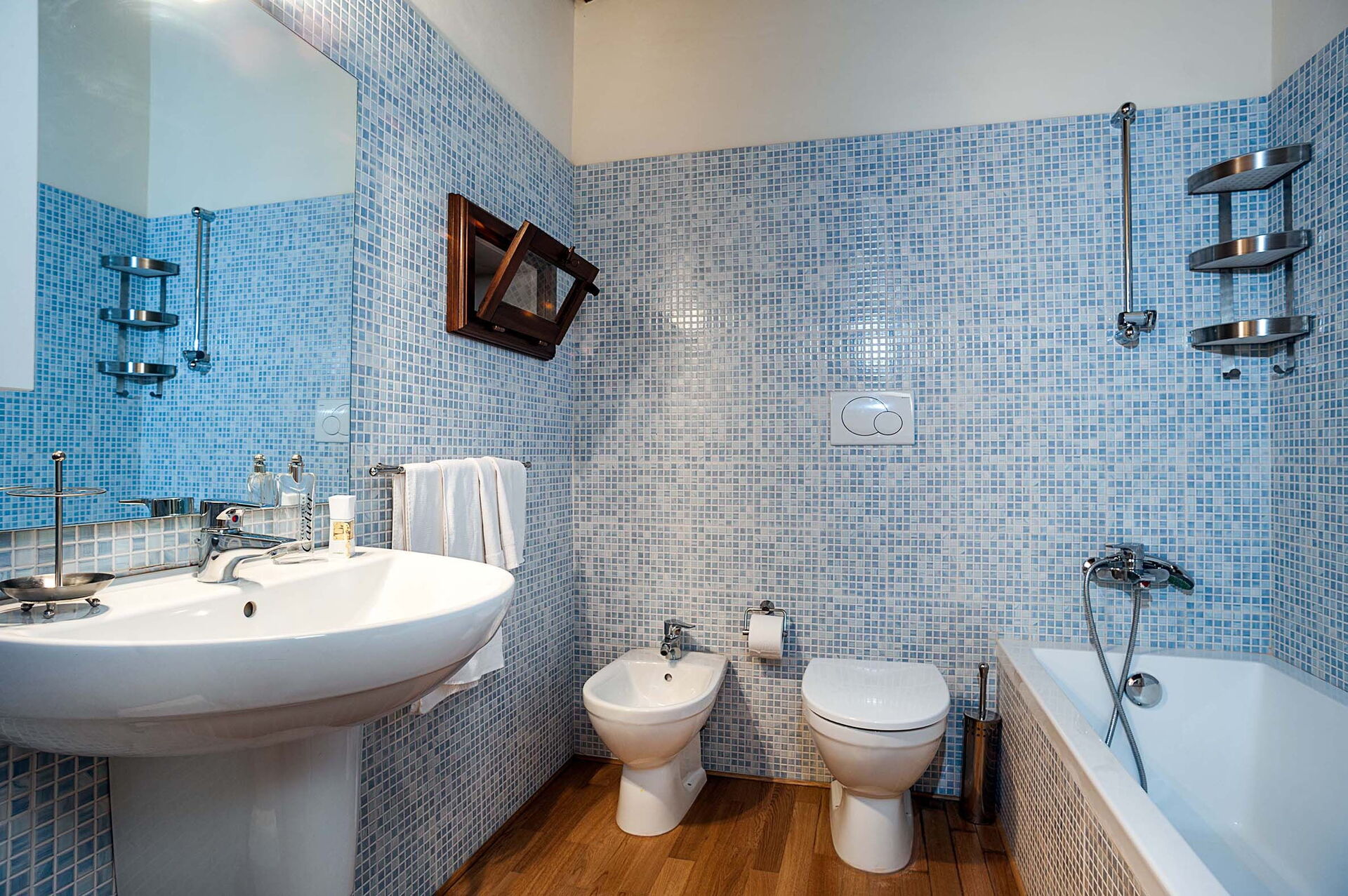 Andra våningen: 2 dubbelrum, alla med eget badrum med badkar.