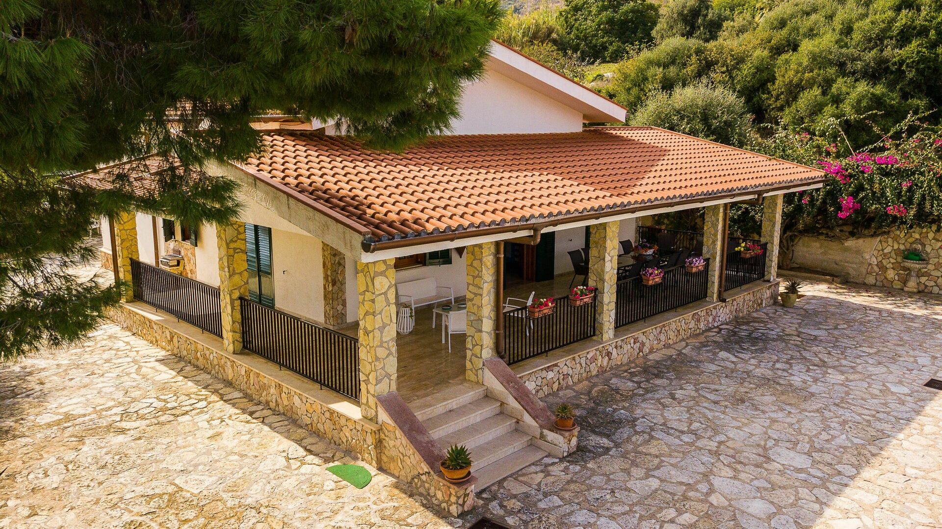 Scopello is a wonderful place to visit, the villa is a short drive from the village of Scopello. The house is quirky and when we visited need some love and attention but was fine and comfortable for four adults and two children. The private swimming spot / beach access sounds great but is quite tricky. There are amazing beaches and places to swim within easy reach of the house and the pool at the villa is really nice.