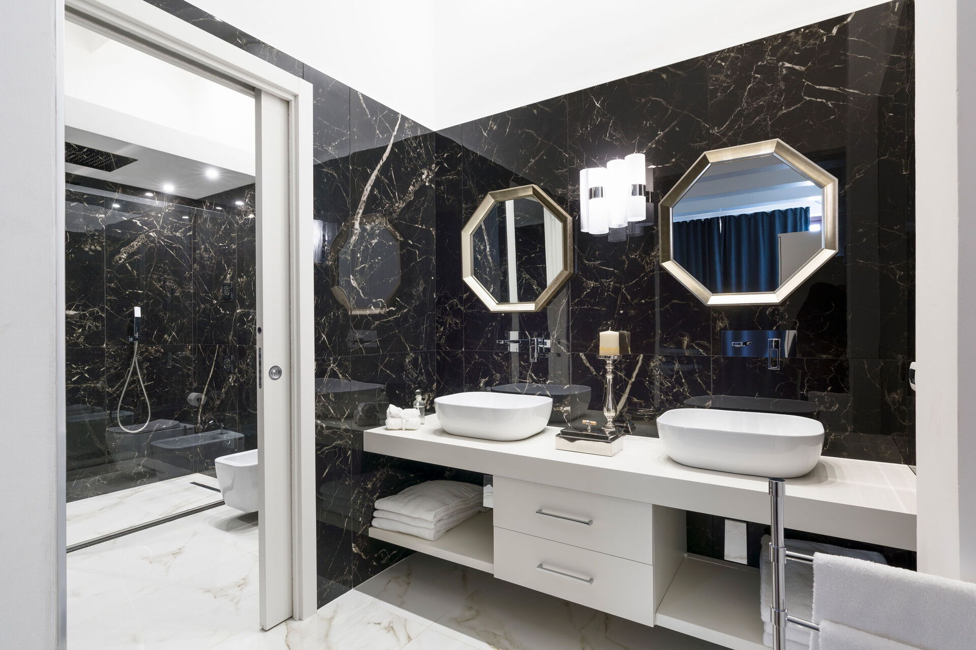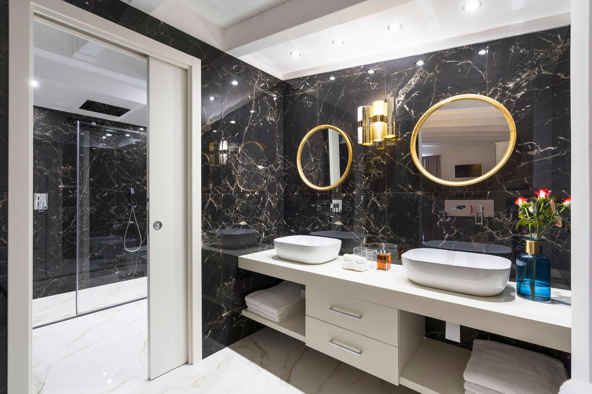 Första våningen: sovrum med eget badrum med dusch, från vilken du har tillgång till en terrass med panoramautsikt.