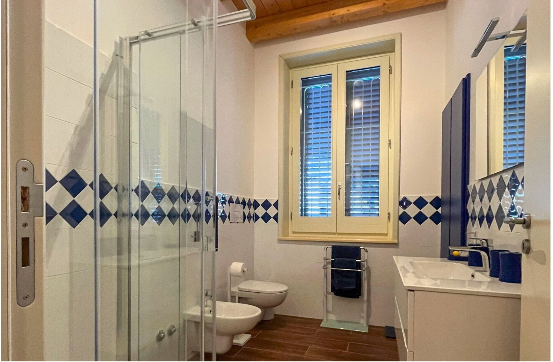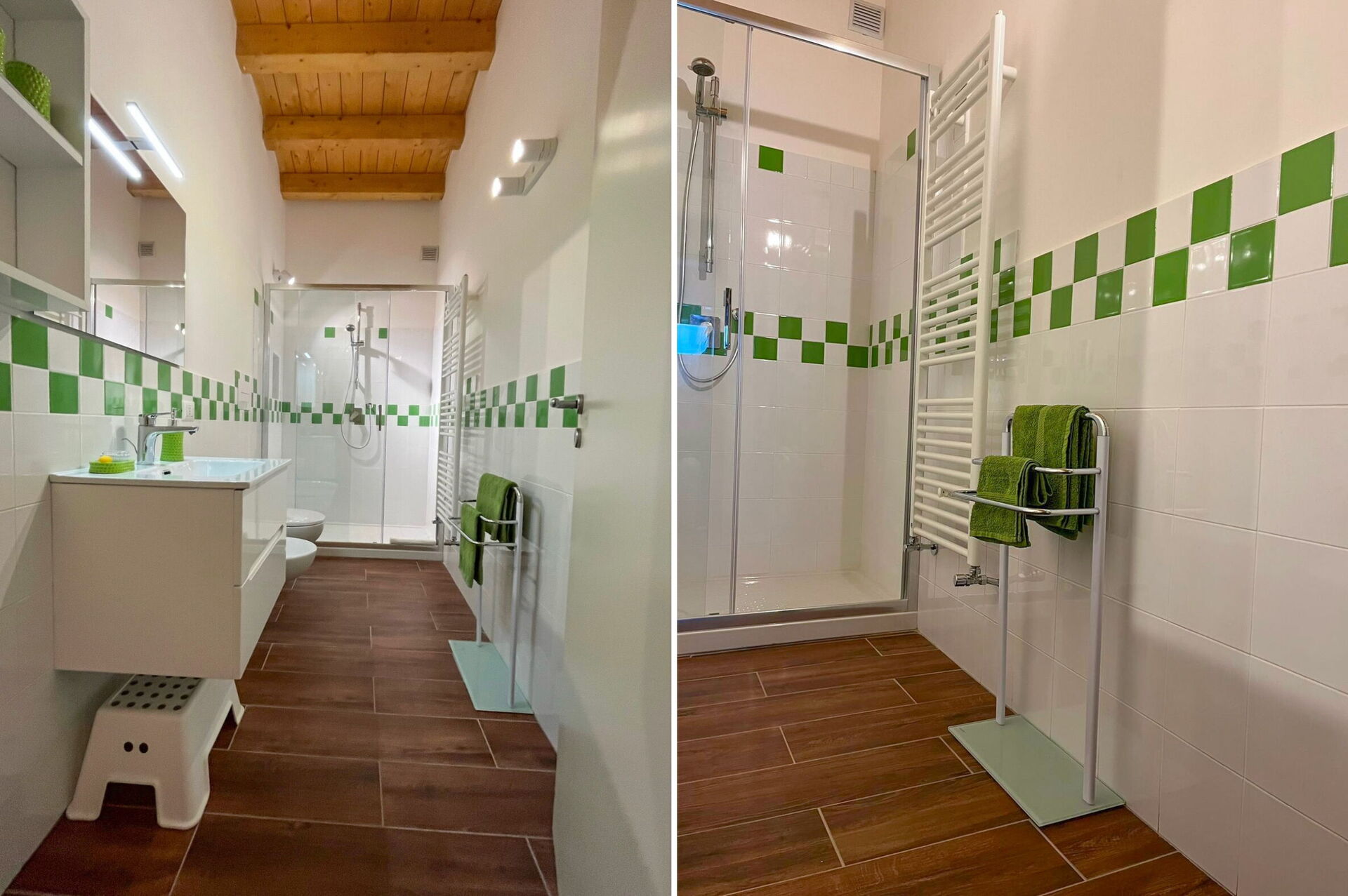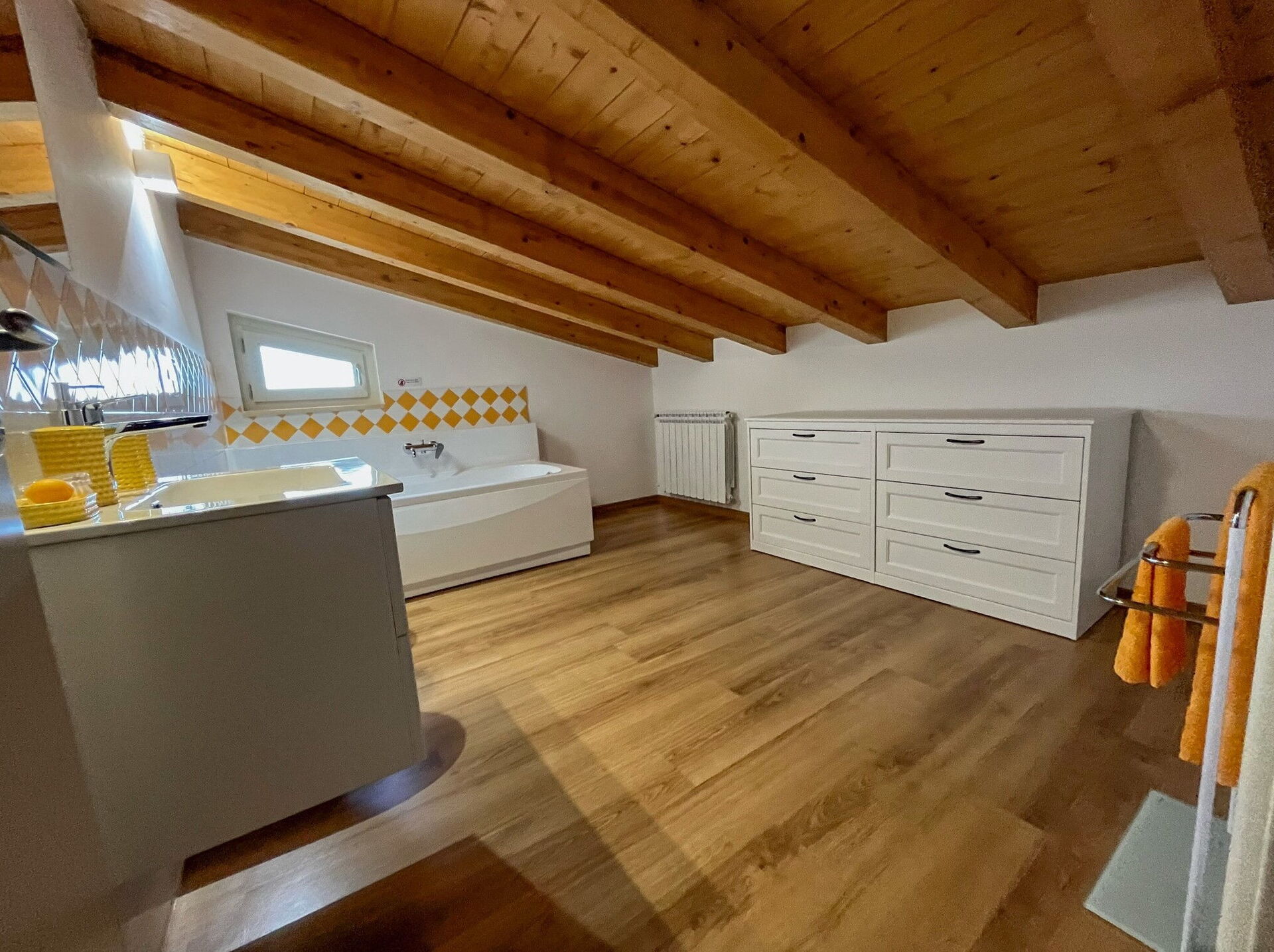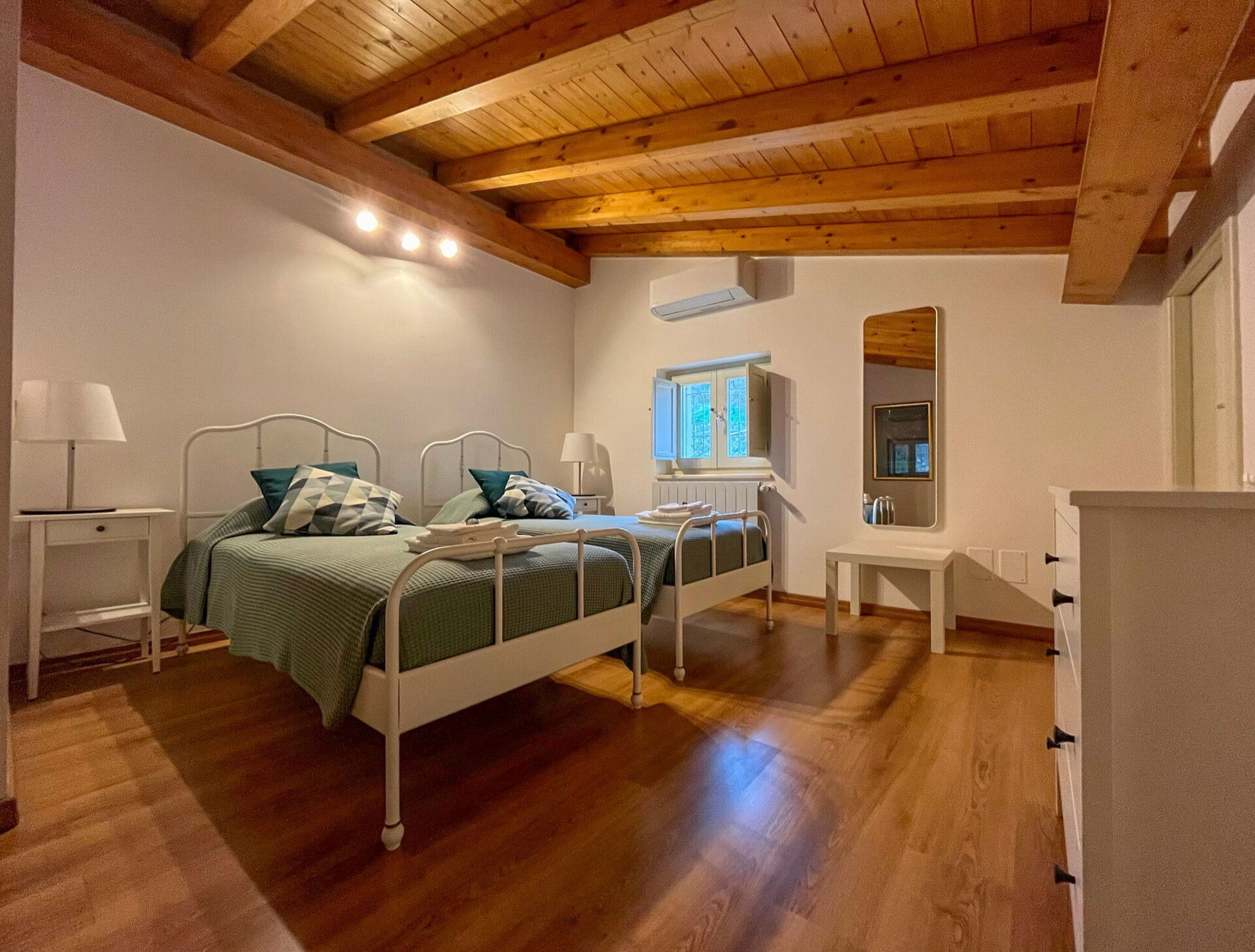 Första våningen: litet vardagsrum-arbetsrum (beläget på ett entresolplan), dubbelrum, rum med 2 enkelsängar, badrum med badkar.