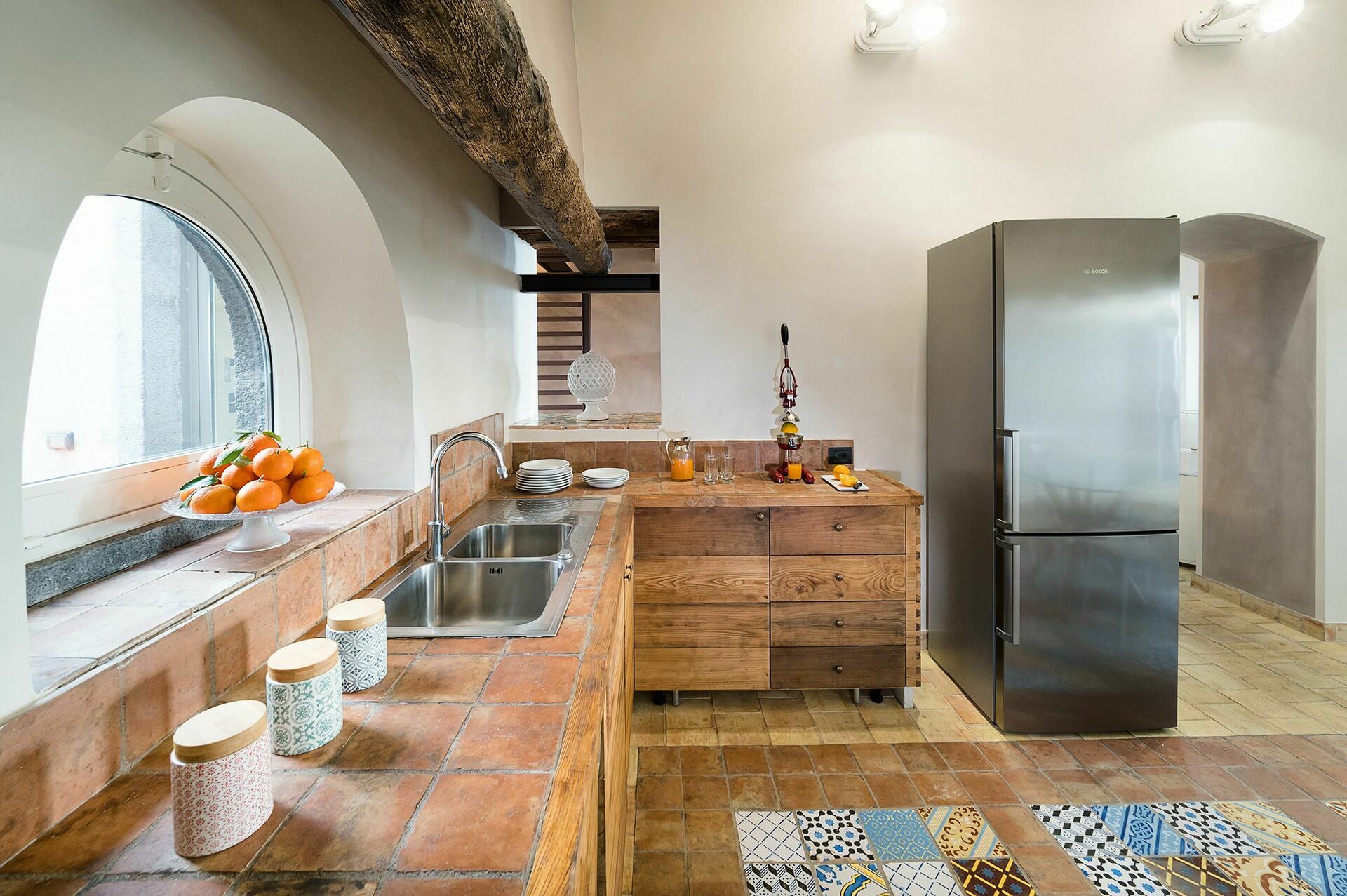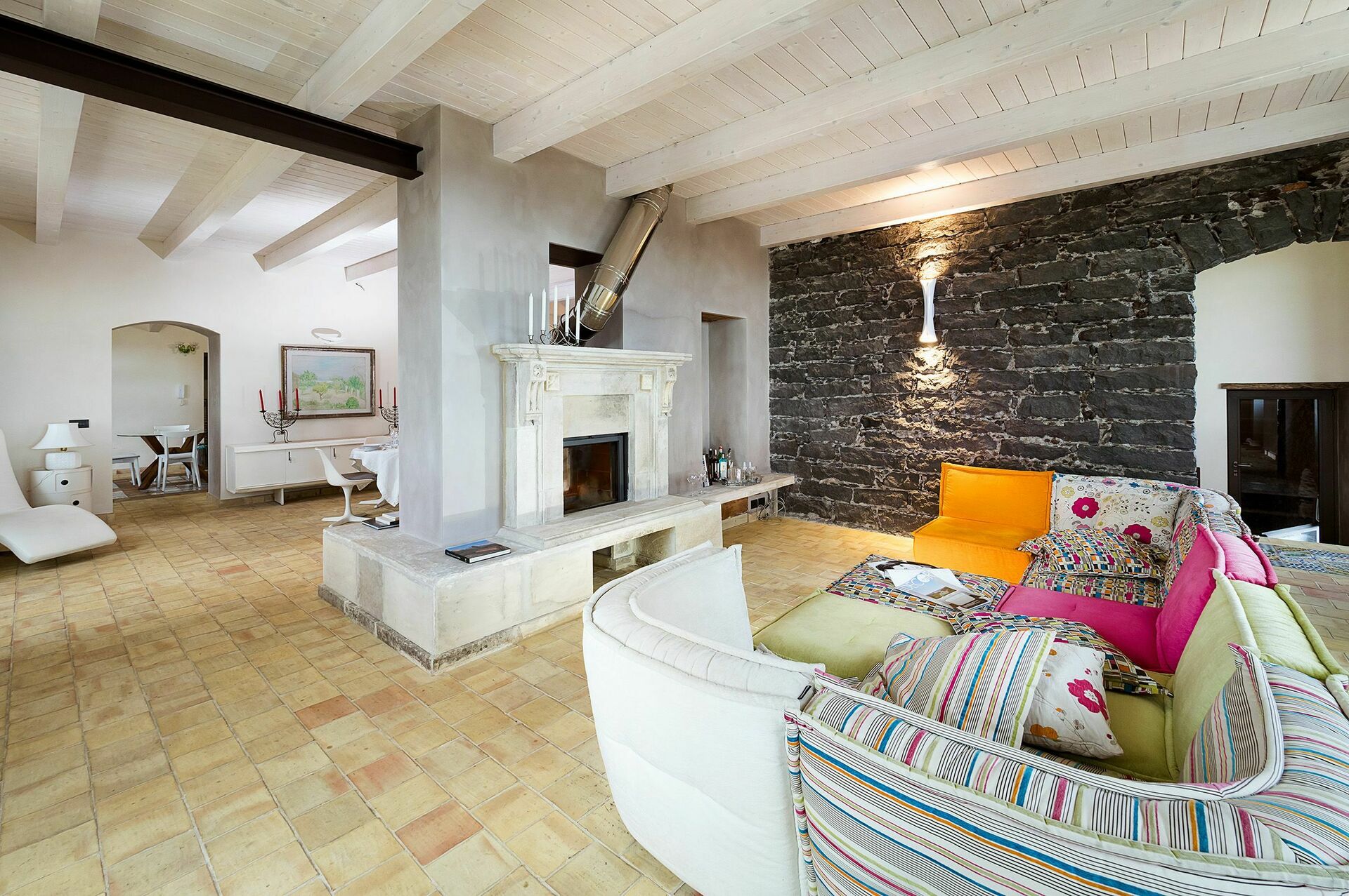 Dessa eleganta interiörer kombinerar moderna funktionalitet med traditionella element, till exempel ursprungliga stenmurar. På bottenvåningen i huset är vardagsrummet, matsal, kök och badrum. På första våningen finns tre sovrum med egna badrum och på bottenvåningen, i det tidigare vinpressrummet, är hälsovården. De två annexen har en svit med en dubbelsäng på vinden (Casetta) och ett dubbelrum (Dependance), båda med privata badrum.