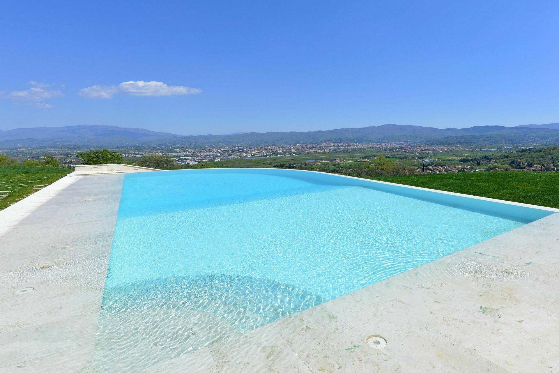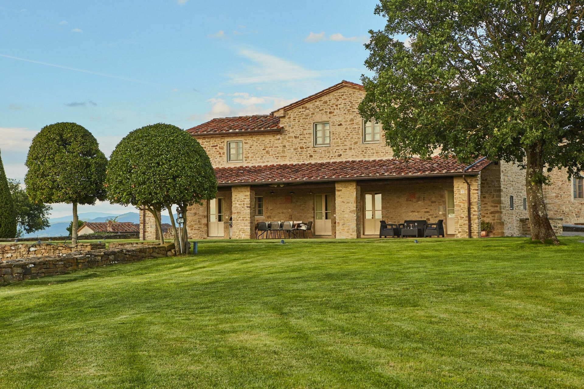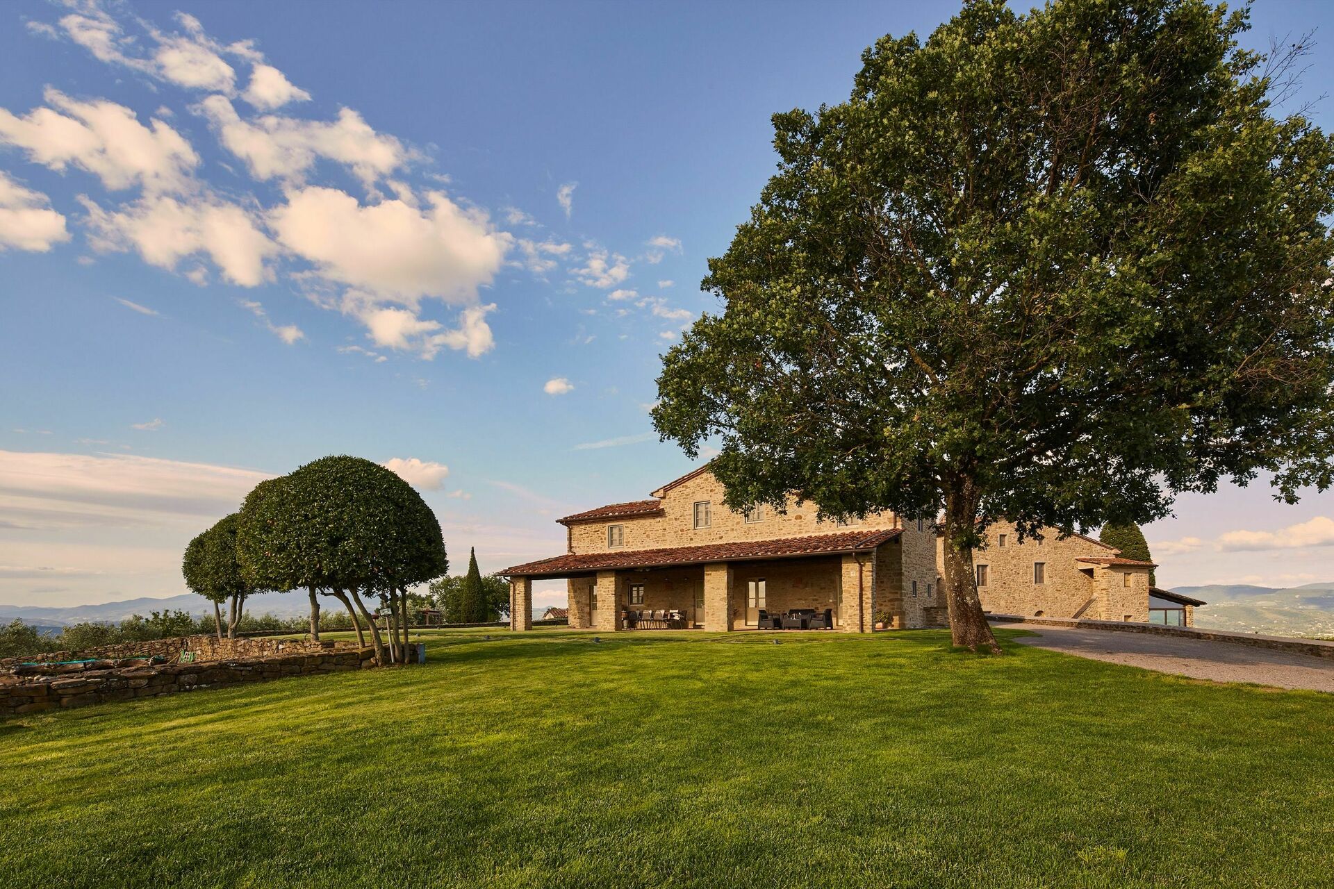 Vacker nyligen renoverad villa belägen på en kulle med utsikt över staden Arezzo och Chiana dalen i Toscana. Fastigheten är helt inhägnad och omfattar ägarnas hus och en charmig liten kyrka med anor från 600-talet. Utanför kan gästerna njuta användning av en stor, välpreparerade trädgård med privat pool som ligger i panoramaläge. Villan delades in i 4 lägenheter som är anslutna internt och uthyrningsbar bara tillsammans som ett privat boende. Interiören är välkomnande och smakfullt inredda. På bottenvåningen finns en stor möblerad veranda perfekt för al-fresco dining.