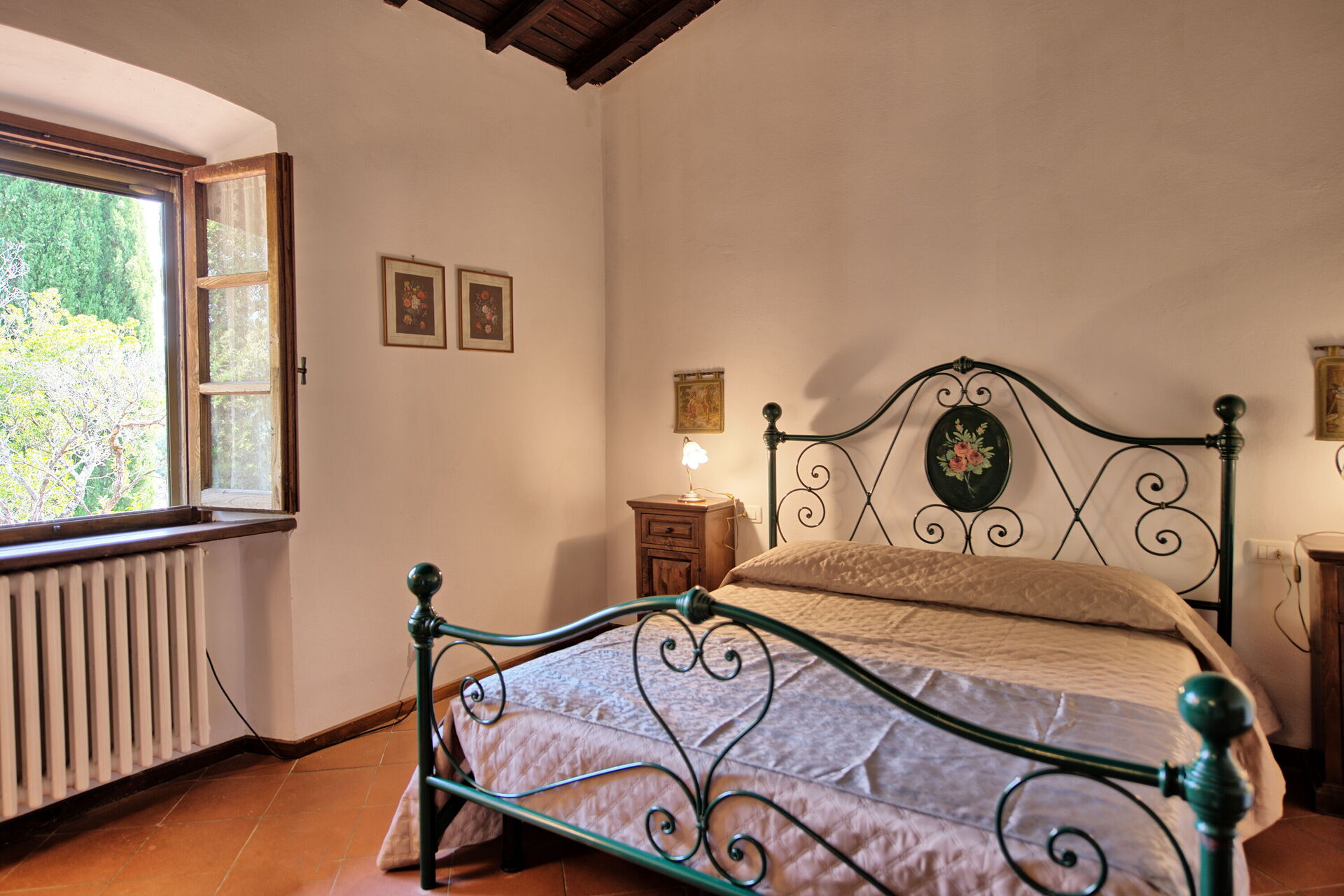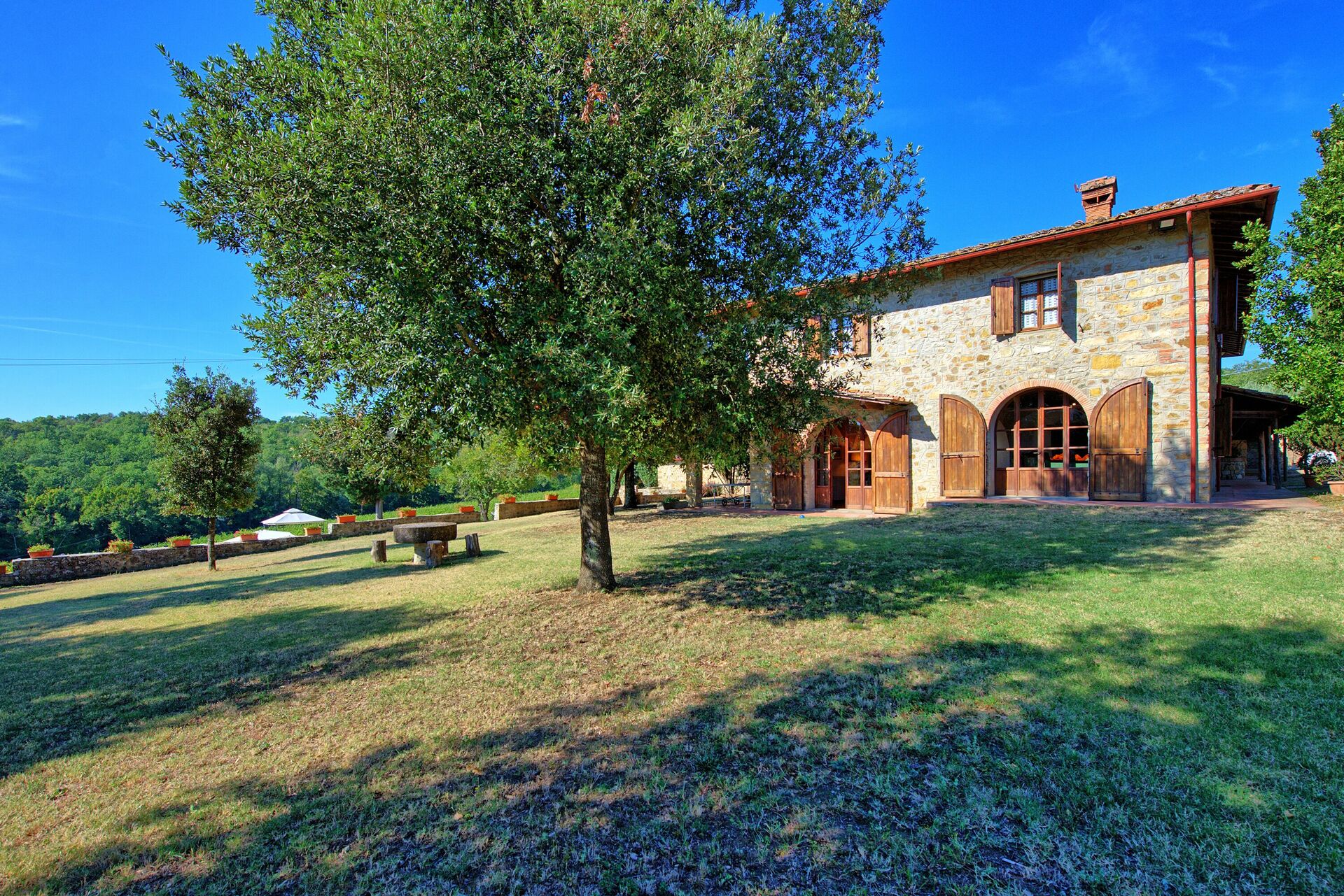 Fritidshuset ligger lummigt i Toscana och har en vacker grön trädgård. Damen som sköter huset bor på platsen bredvid i ett annex, totalt diskret.