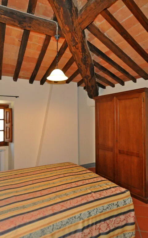 1st floor (small, nice access door – access via a personal furnished outdoor area): living-room with fireplace, dining area (satellite TV) and kitchen corner (2 electric plates), bathroom with bathtub (hairdryer), bedroom with a single bed.
