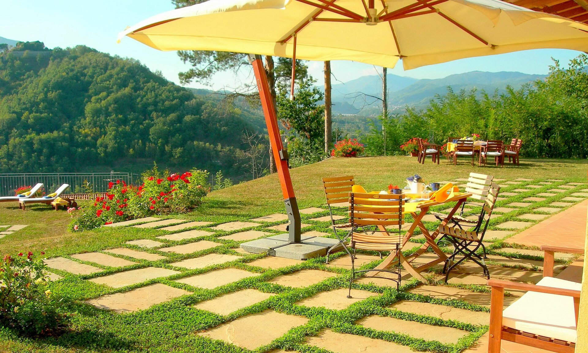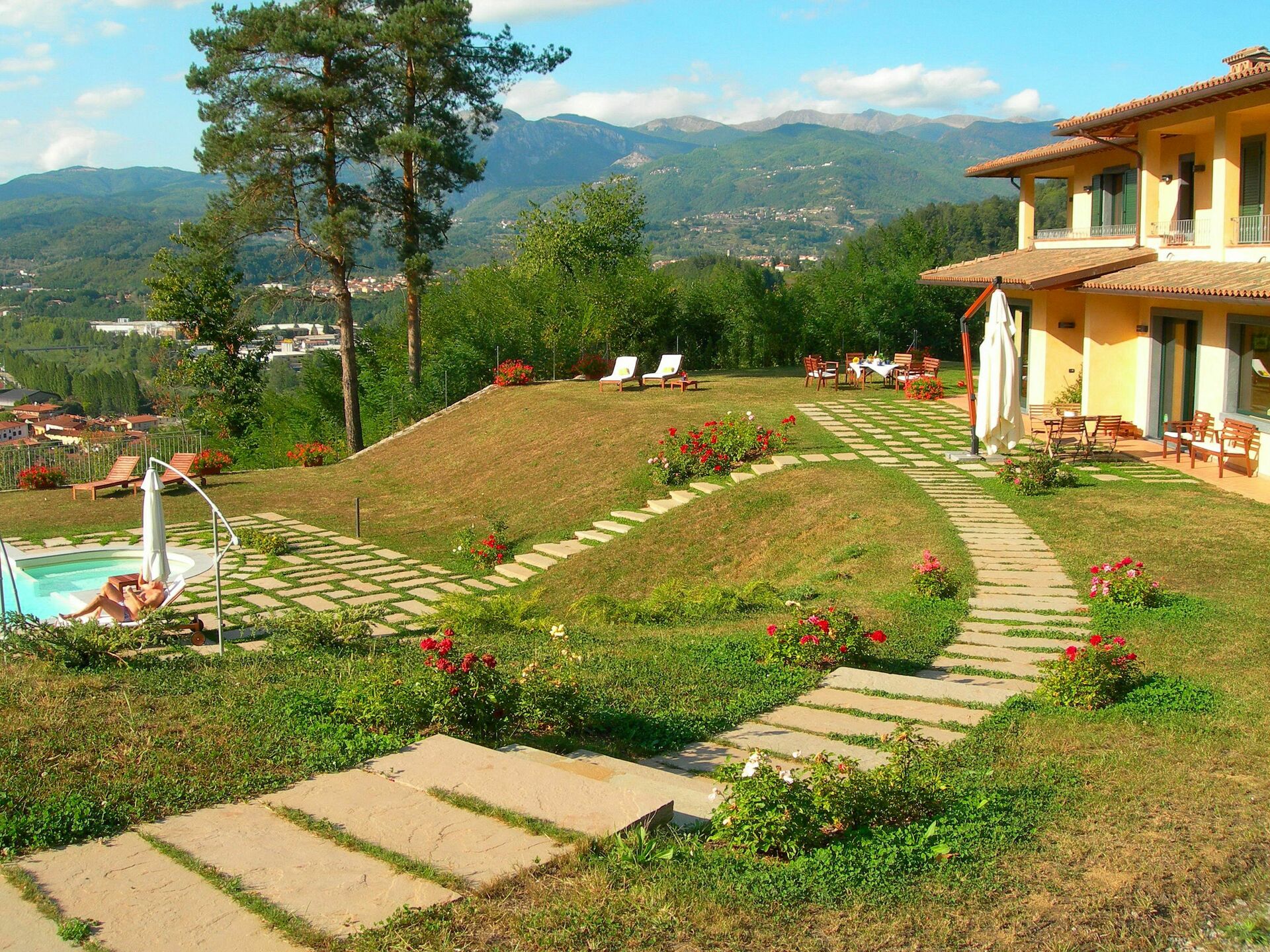 Semesterhusets läge är unikt: här kan du njuta av utsikten över Alpi Apuane (marmorbergen), Rocca Ariostesca i centrum av Castelnuovo är tillgänglig till fots via en skuggig väg, Monte Alfonso och fästningen (som är en del av naturparken Alpi Apuane) och till slut Appennino är också i närheten. Vid floden som rinner genom Serchio-dalen kan du se Villetta-bron, en av Italiens högsta järnvägsbroar. Till vänster kan vi beundra Pania della Croce, medan till höger den vackra "Pania di Corfino", och slutligen Radici-passet inne i Appennino-parken.