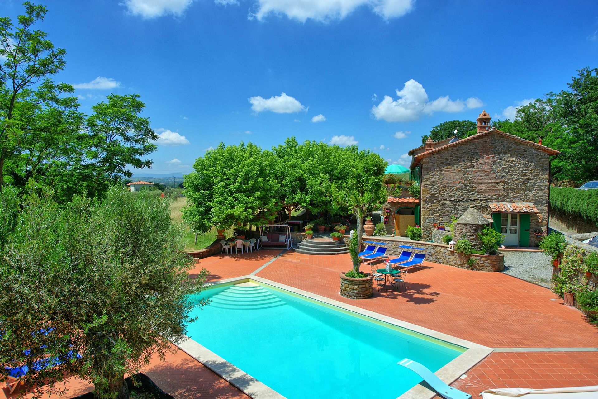 Villan är i ett lantlig och lugn läge med panoramautsikt, nära den vackra staden Cortona. Städerna Montepulciano, Siena, Florens, Assisi, Perugia och Montalcino är bara några av de platser du kan ta utflykter till från detta huset. Många av de mest kända platser och sevärdheter i Toscana och Umbrien kan nås från semesterhuset. Den idylliska Trasimeno-sjön ligger bara 30 minuters bilresa bort.