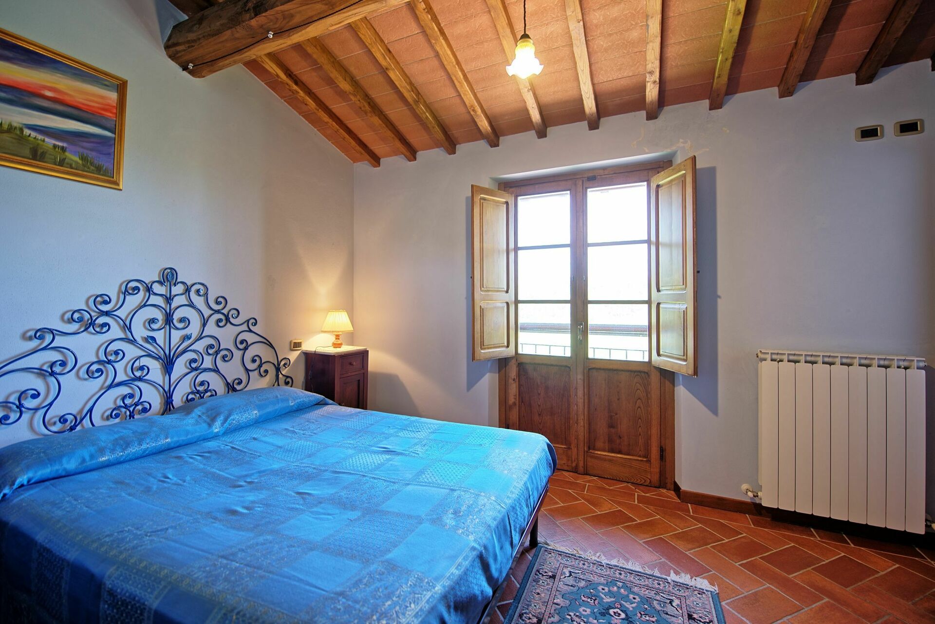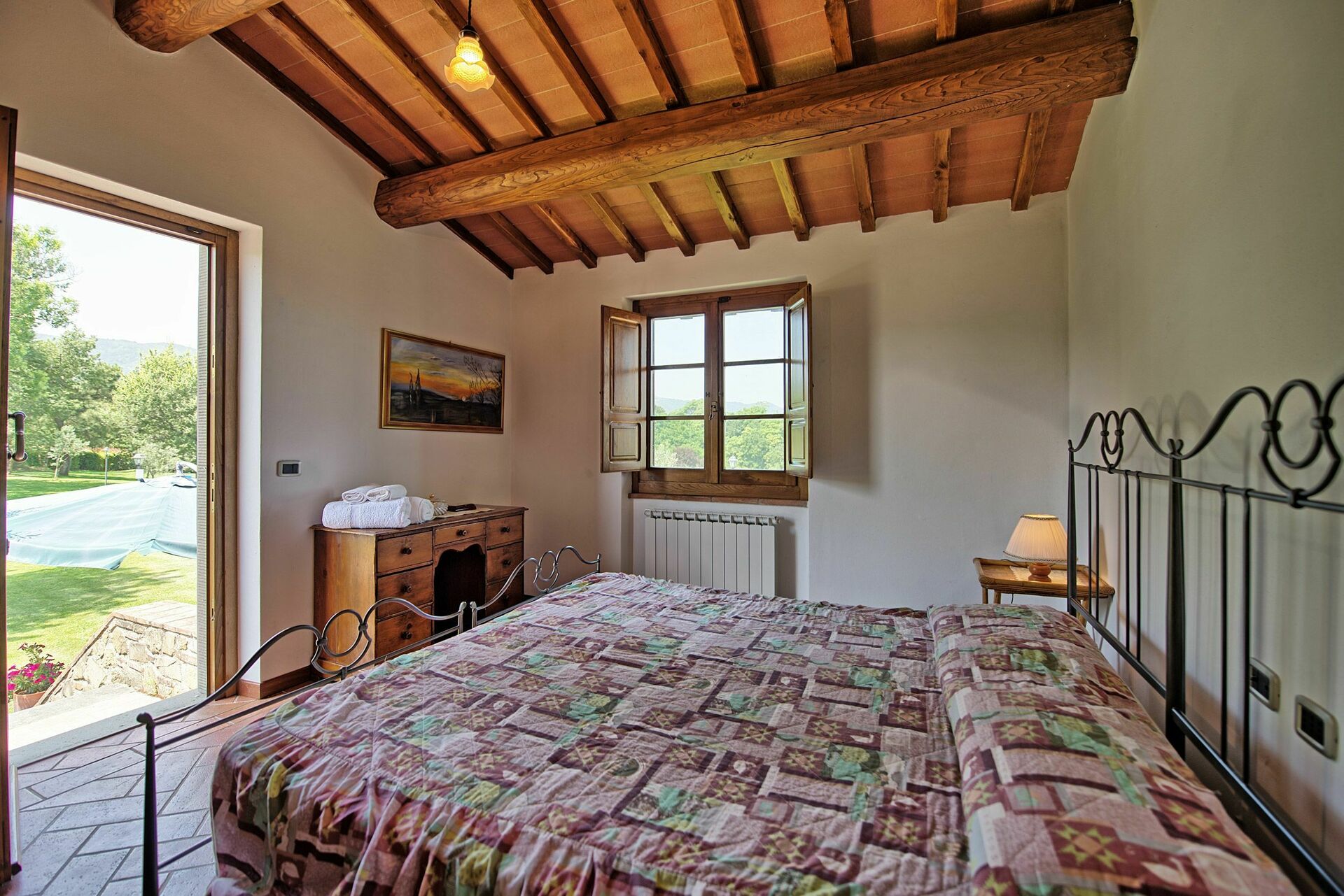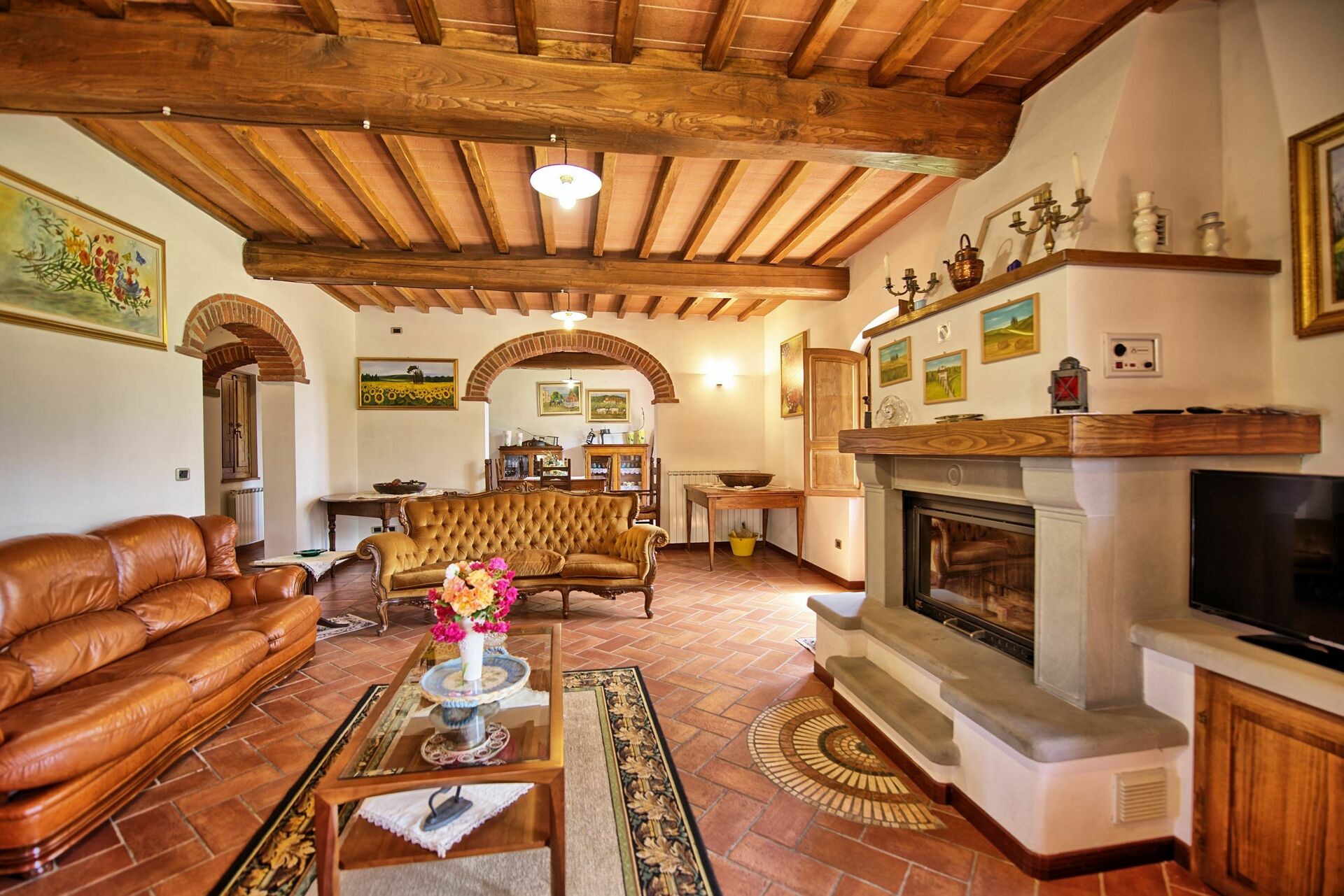 Fastigheten har 4 sovrum och 4 badrum med totalt 12 sängar. Villan ligger på toppen av en kulle där stora delar av Valdarno kan ses. Fastigheten erbjuder korta och längre vistelser under alla årstider.