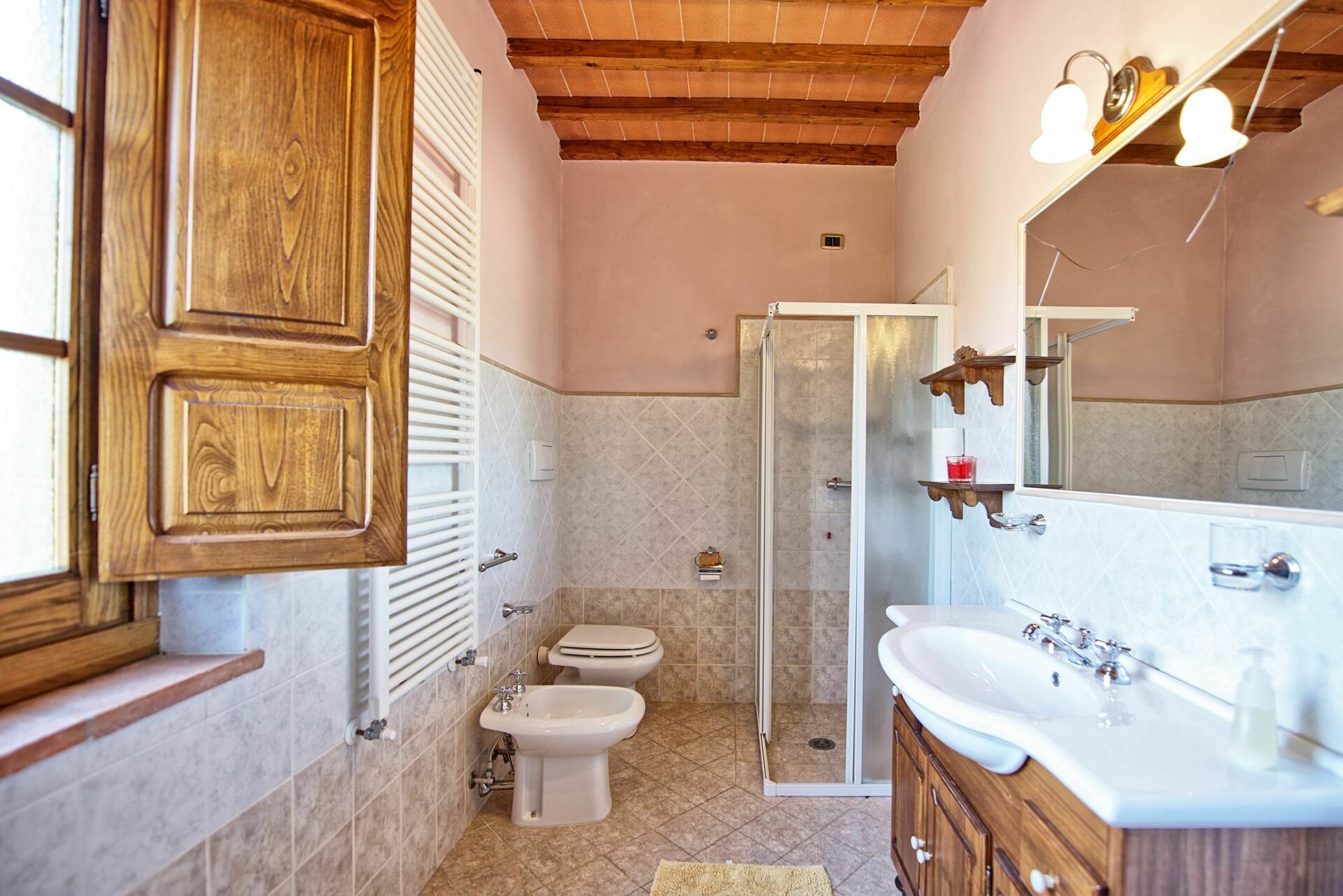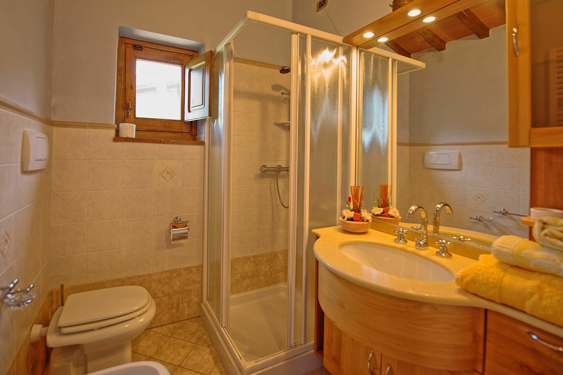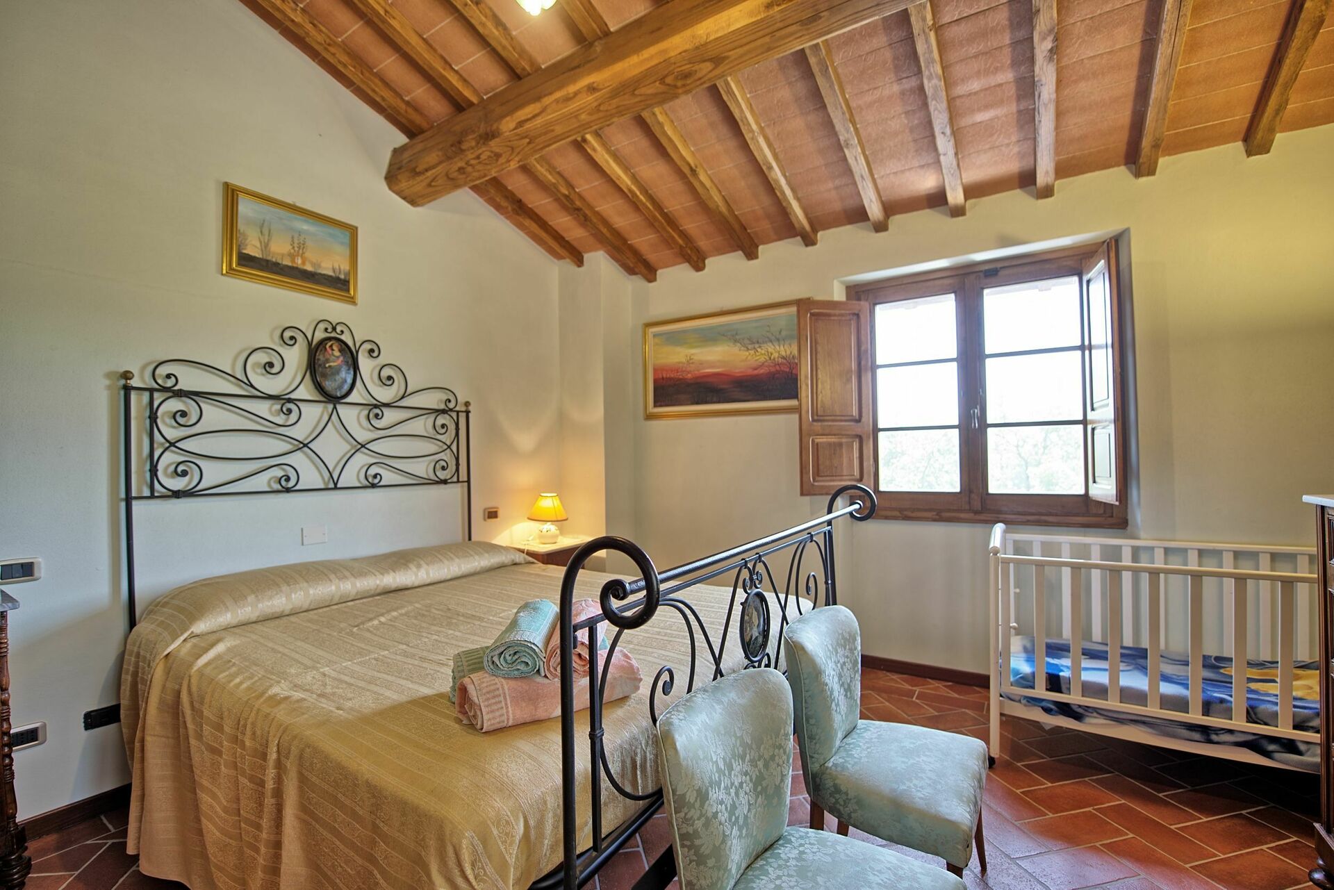 Fastigheten har 4 sovrum och 4 badrum med totalt 12 sängar. Villan ligger på toppen av en kulle där stora delar av Valdarno kan ses. Fastigheten erbjuder korta och längre vistelser under alla årstider.