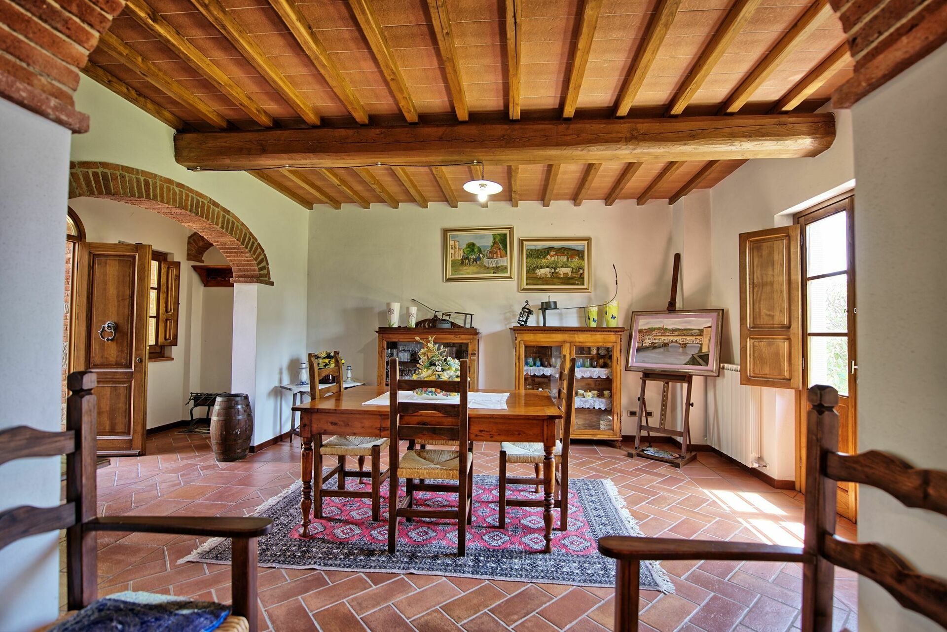 Från fastigheten kan du njuta av den vackra utsikten över Arno-dalen och Pratomagno, medan du förbereder utsökt mat på grillen, låter barnen leka utomhus, plocka frukt, sallad, grönsaker och aromatiska örter från trädgården och fruktträdgården. Här har du allt du behöver för att ha en avkopplande semester.